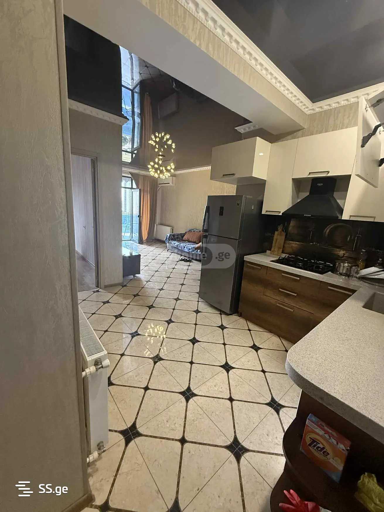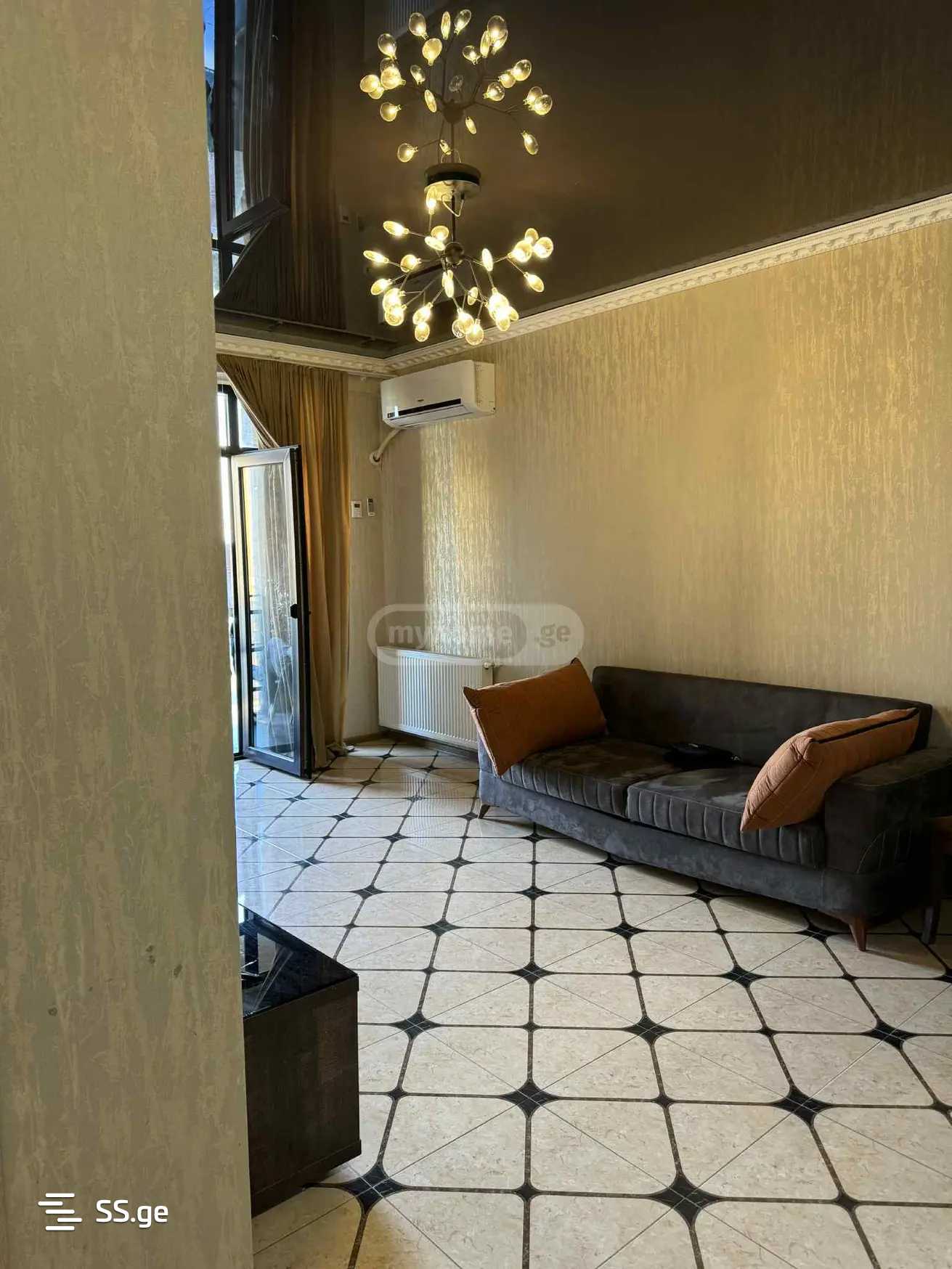 For rent is a 60 square meter newly renovated clean apartment with a parking space, all necessary equipment, isolated and secured yard, very close to Gudvili, on the 8th floor, with a prepayment of two months.