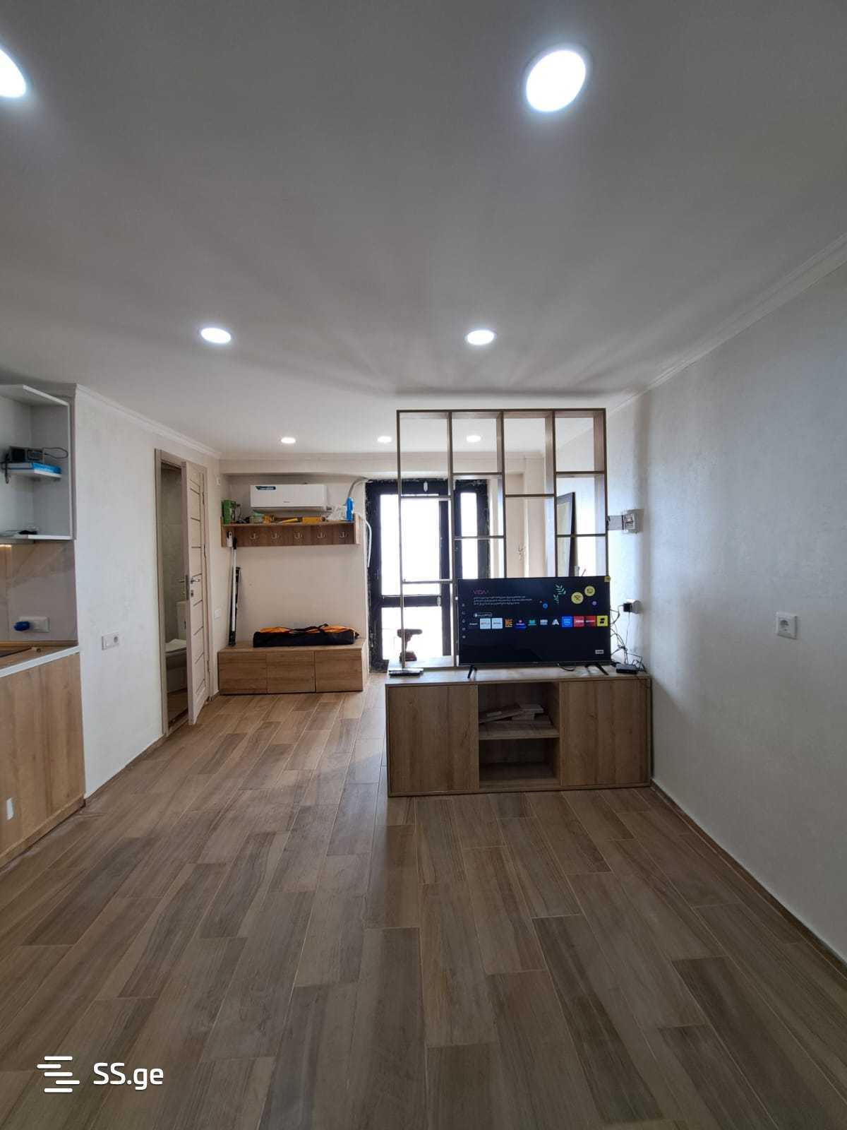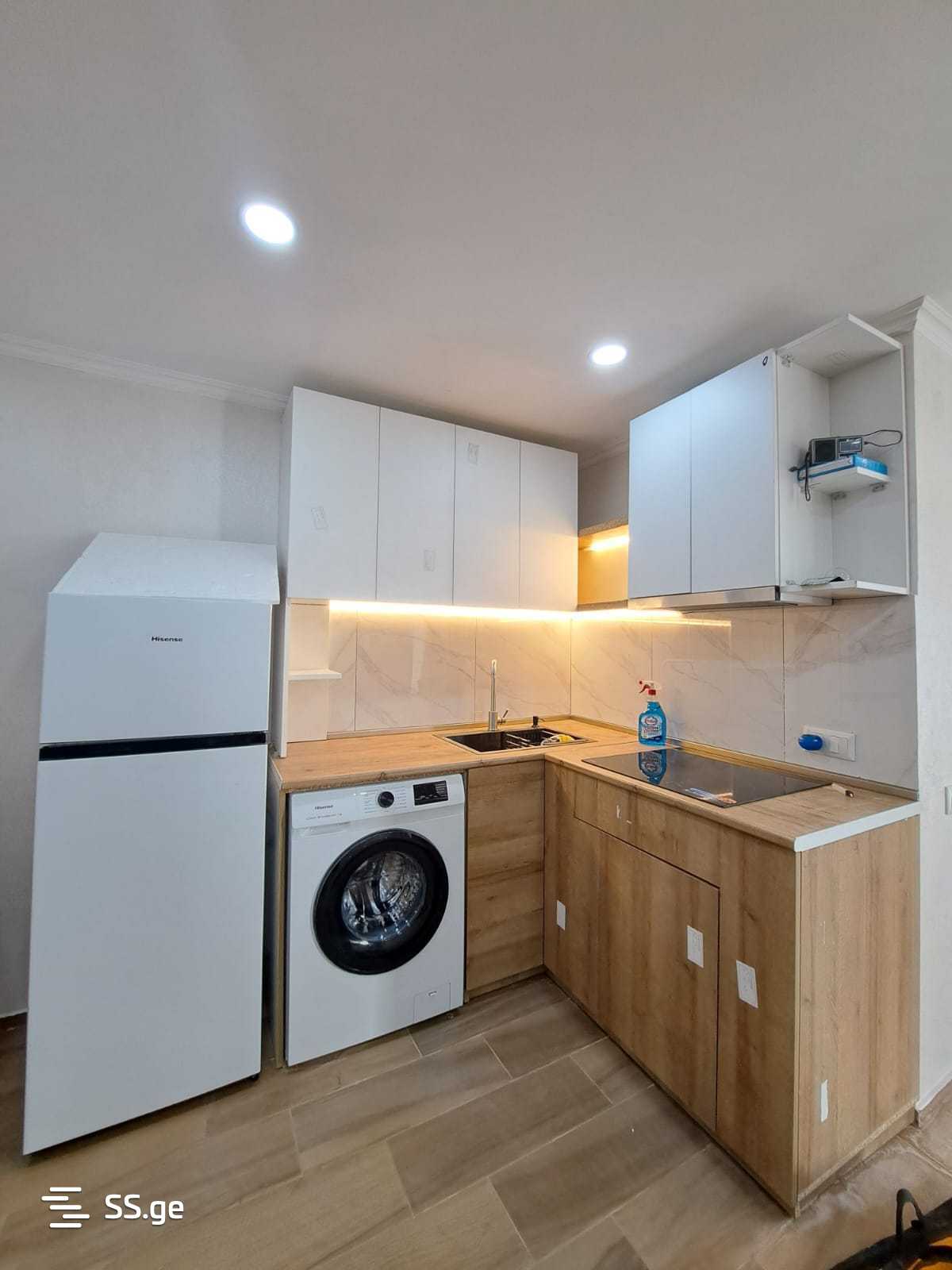 Very close to the metro Isani, a 2-minute walk, a residential space is for rent. Fully furnished and equipped with all necessary furniture and appliances. The space is on the ground floor of a 7-story building. It will be ready for living by the end of the week; it is currently in the final stage of renovation.