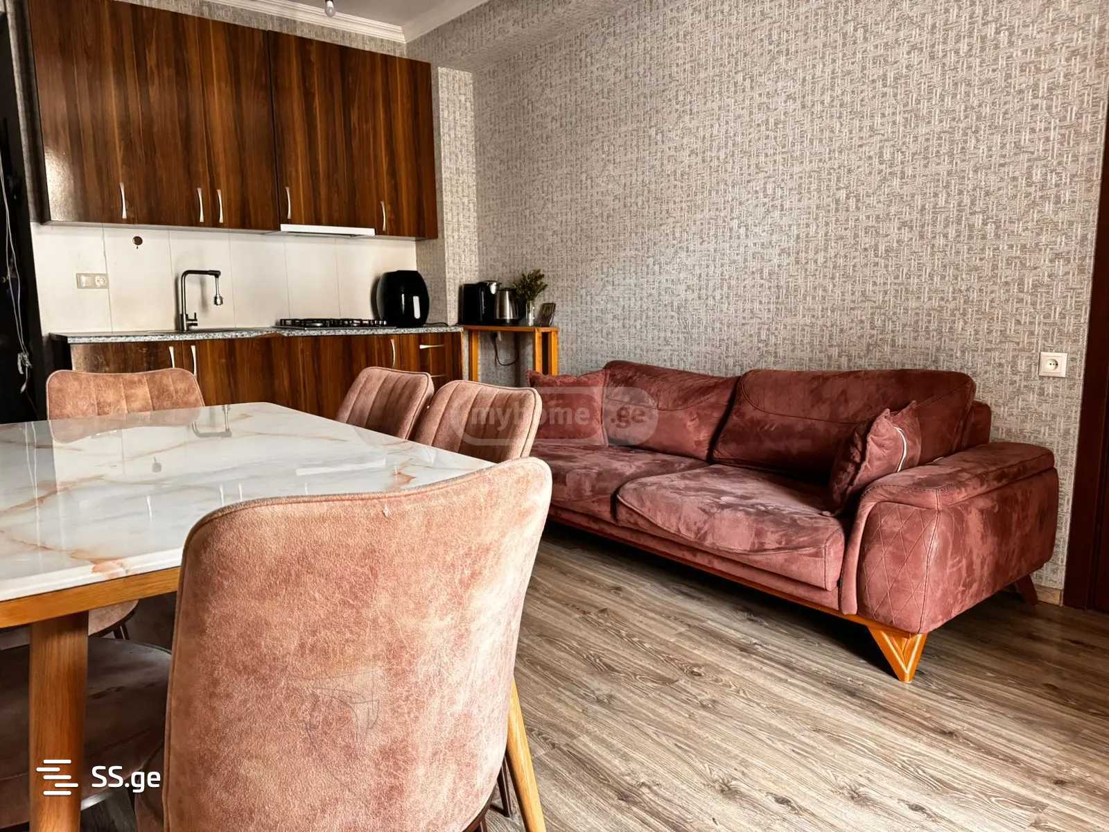 For rent, a well-furnished apartment with furniture, appliances, central heating, air conditioning, 7-10 minutes walk from the metro. The door is coded and chip. There is a guard in the yard.