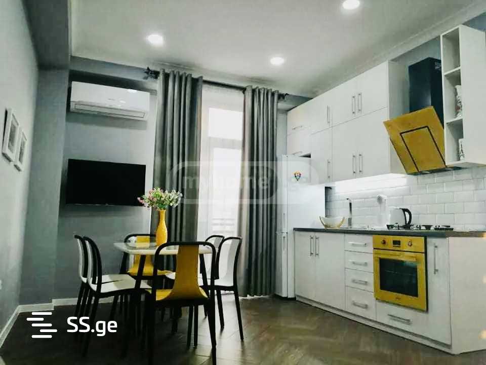 For rent: a 3-room apartment in a newly built building near metro 300 Aragveldebi, fully furnished with all necessary furniture and appliances. The apartment has beautiful views of Mtatsminda and Old Tbilisi, with payment for two months in advance.