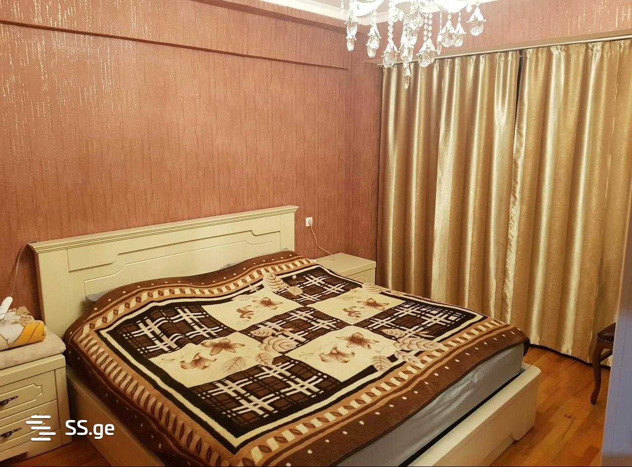 For rent: 90 m² apartment at Zaza Fanaskertel-Tsitsishvili #14, on the 5th floor, in a cozy and quiet area. With 2 bedrooms, central heating. The apartment has a washing machine, refrigerator, and air conditioner. Pets are not allowed.