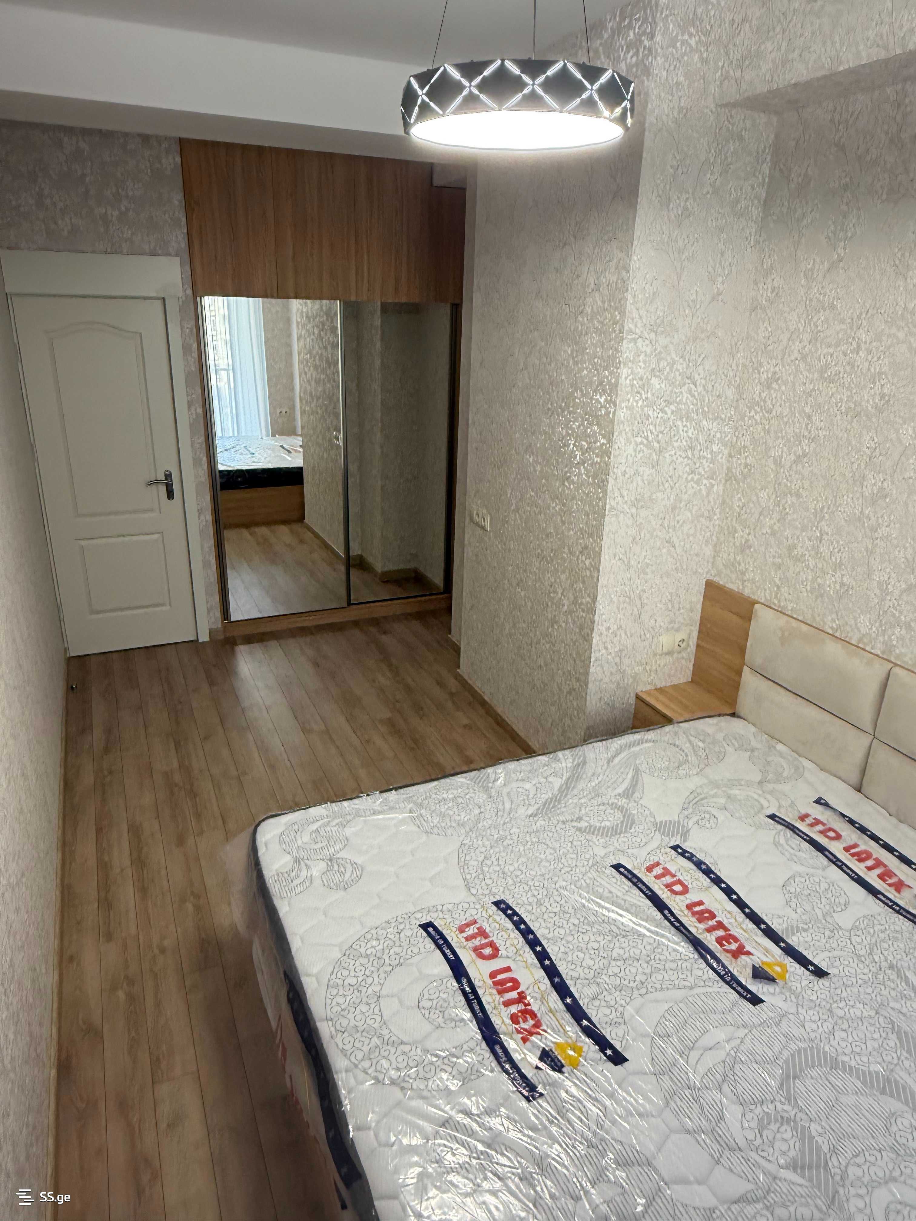 A never-lived-in newly built apartment is for rent with parking on the territory of the yard in Axis Palace 1 at 12 Sulkhan Tsintsadze Street, where there is a concierge, security, and video cameras available 24/7. The apartment comes furnished with all necessary furniture and appliances.