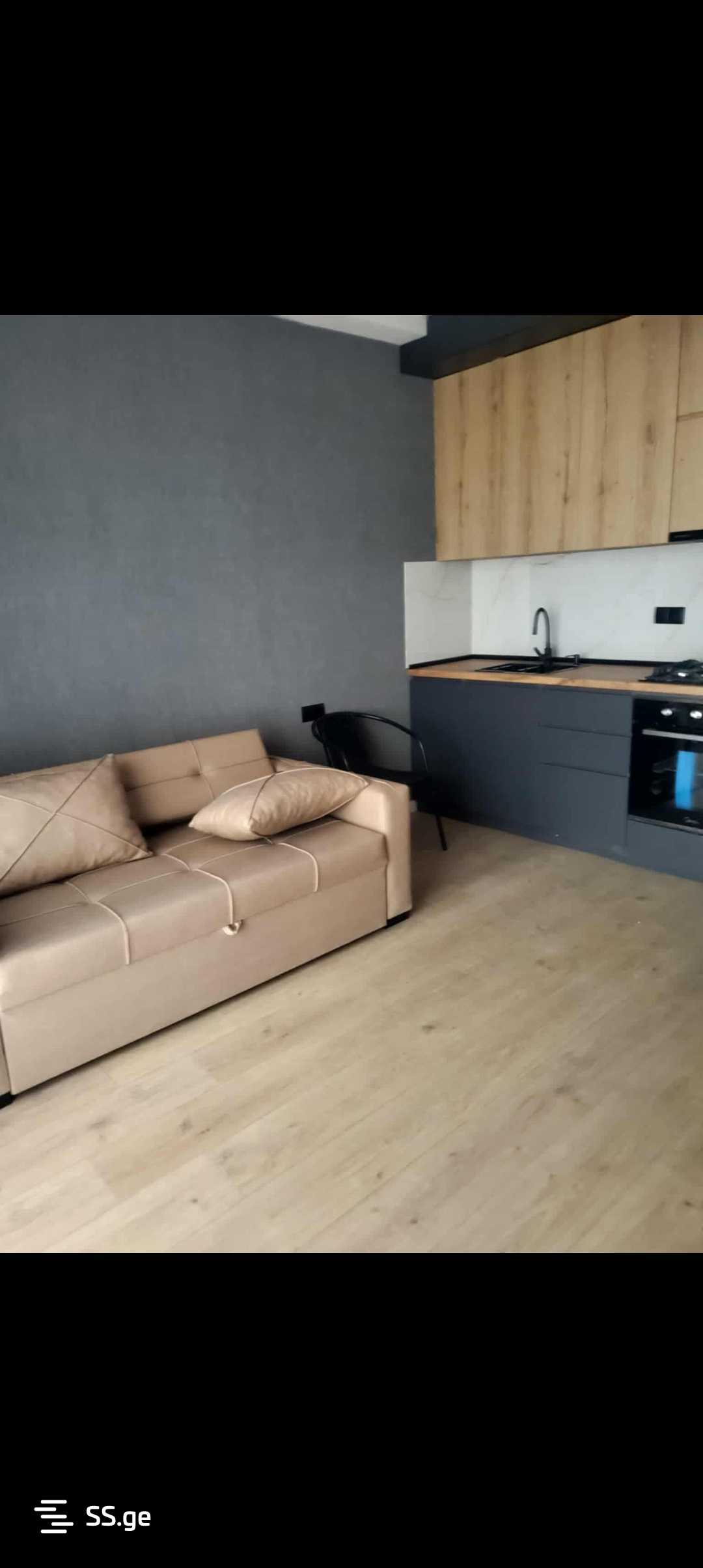 For rent! In Didube, next to the "Navnes", a newly built building has a 35 sq.m. uninhabited studio apartment for 1000 GEL, one space, a pull-out sofa, furniture, appliances, central heating, a balcony, prestigious, high-class building.