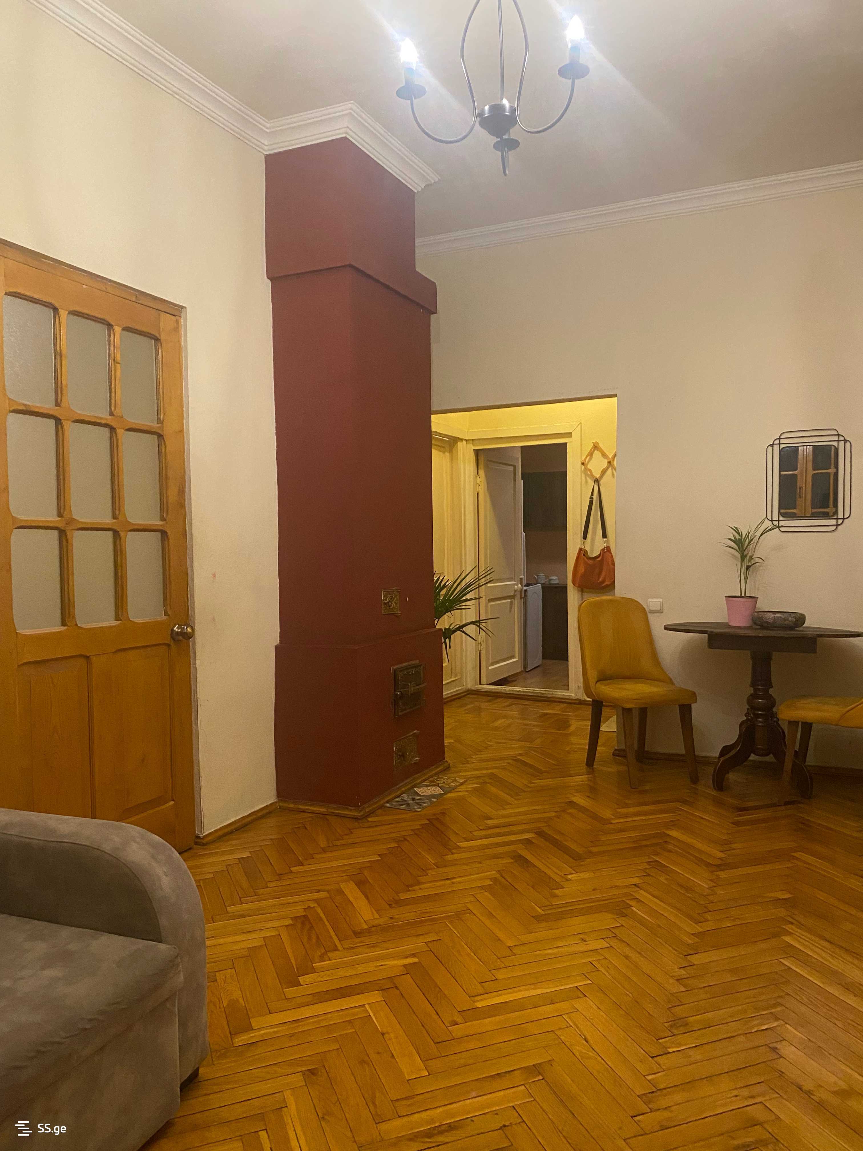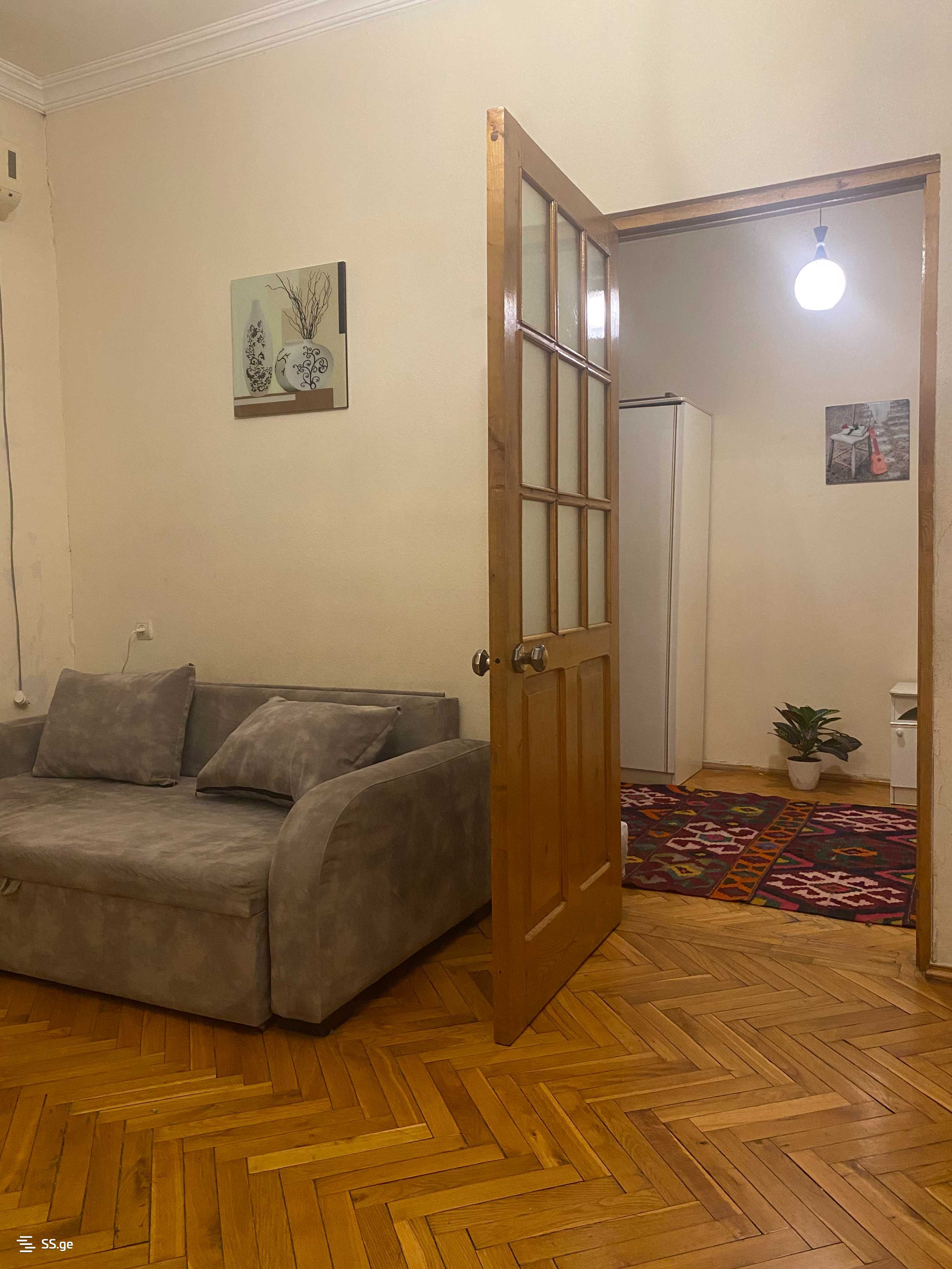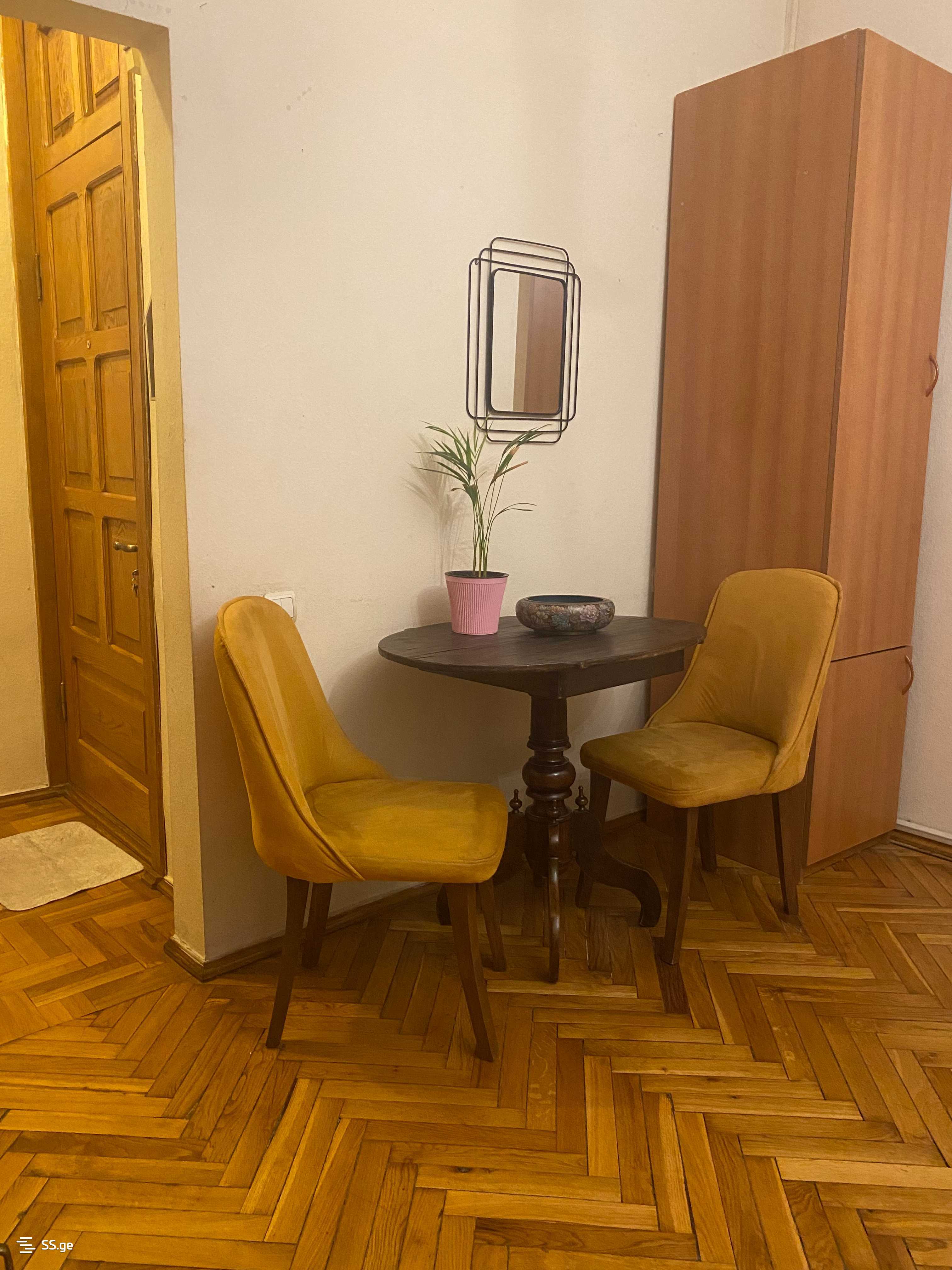 Urgently for rent a bright apartment on the third floor at 23 G. Tabidze in the center of Old Tbilisi. The balcony overlooks Asatiani Street and the Botanical Garden.