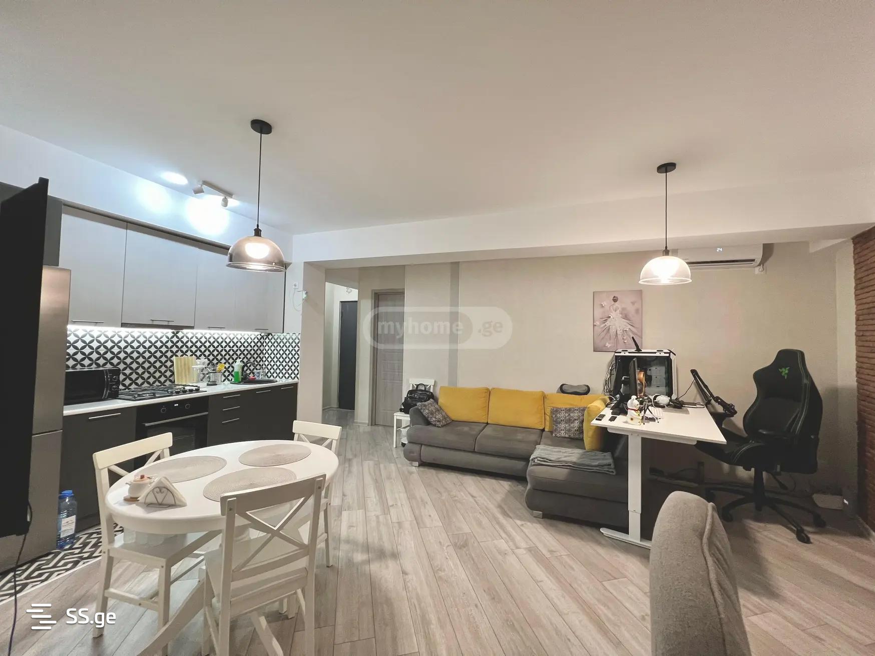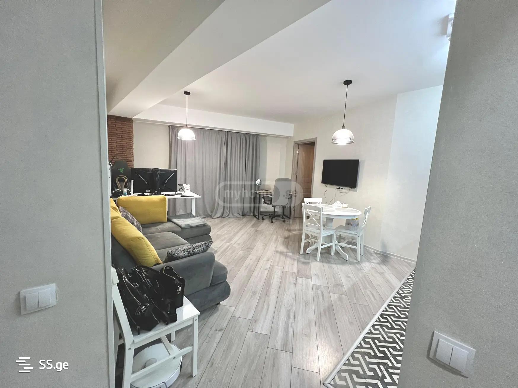 A 65 m² furnished apartment is for rent in Sololaki, on Shindisi St. N 11, a 15-minute walk from Freedom Metro. The apartment is on the high first floor, above parking. It is equipped with all necessary appliances and furniture. The building is newly constructed. It is available for rent for no less than 6 months. Pets are not allowed.
