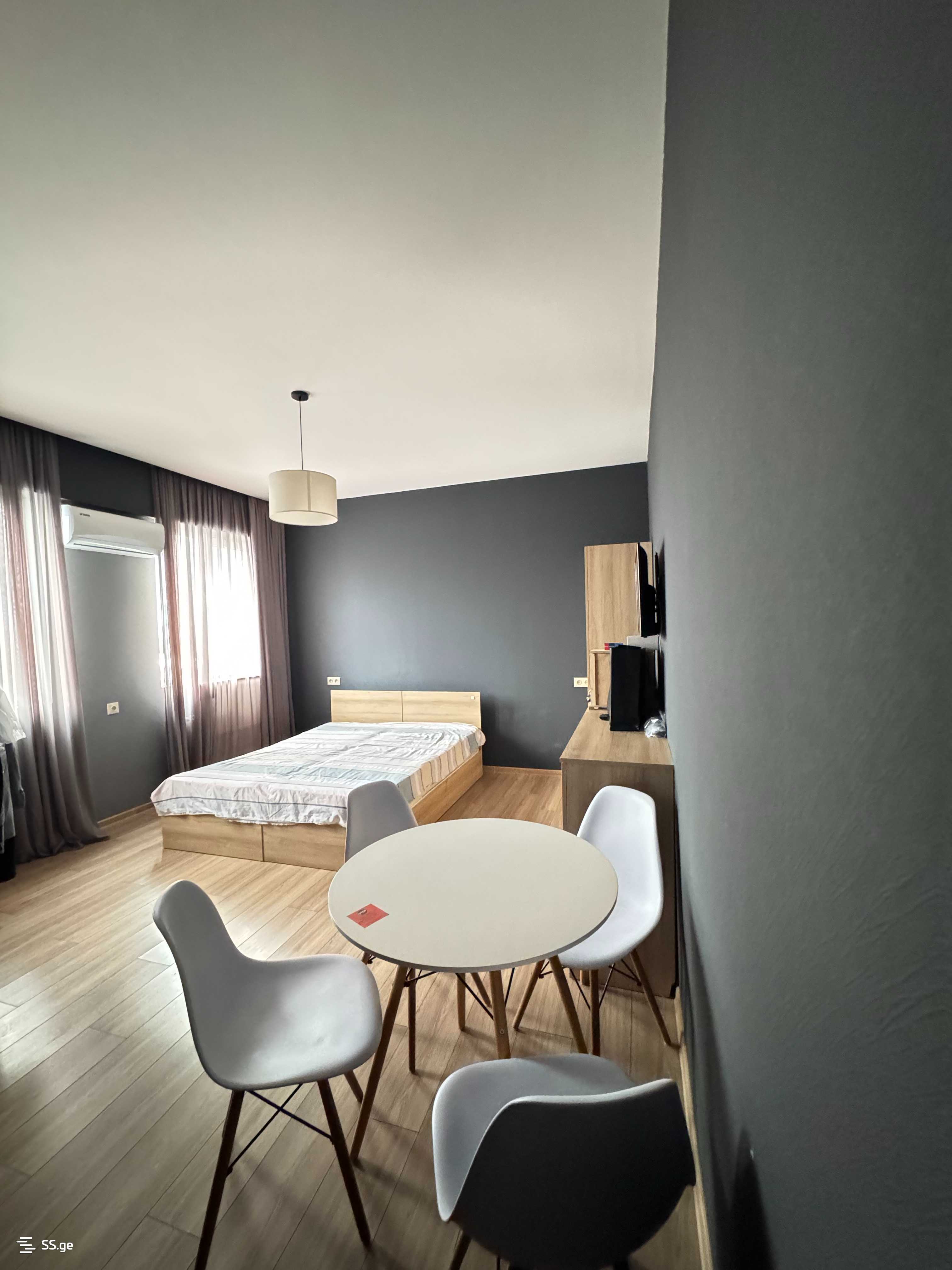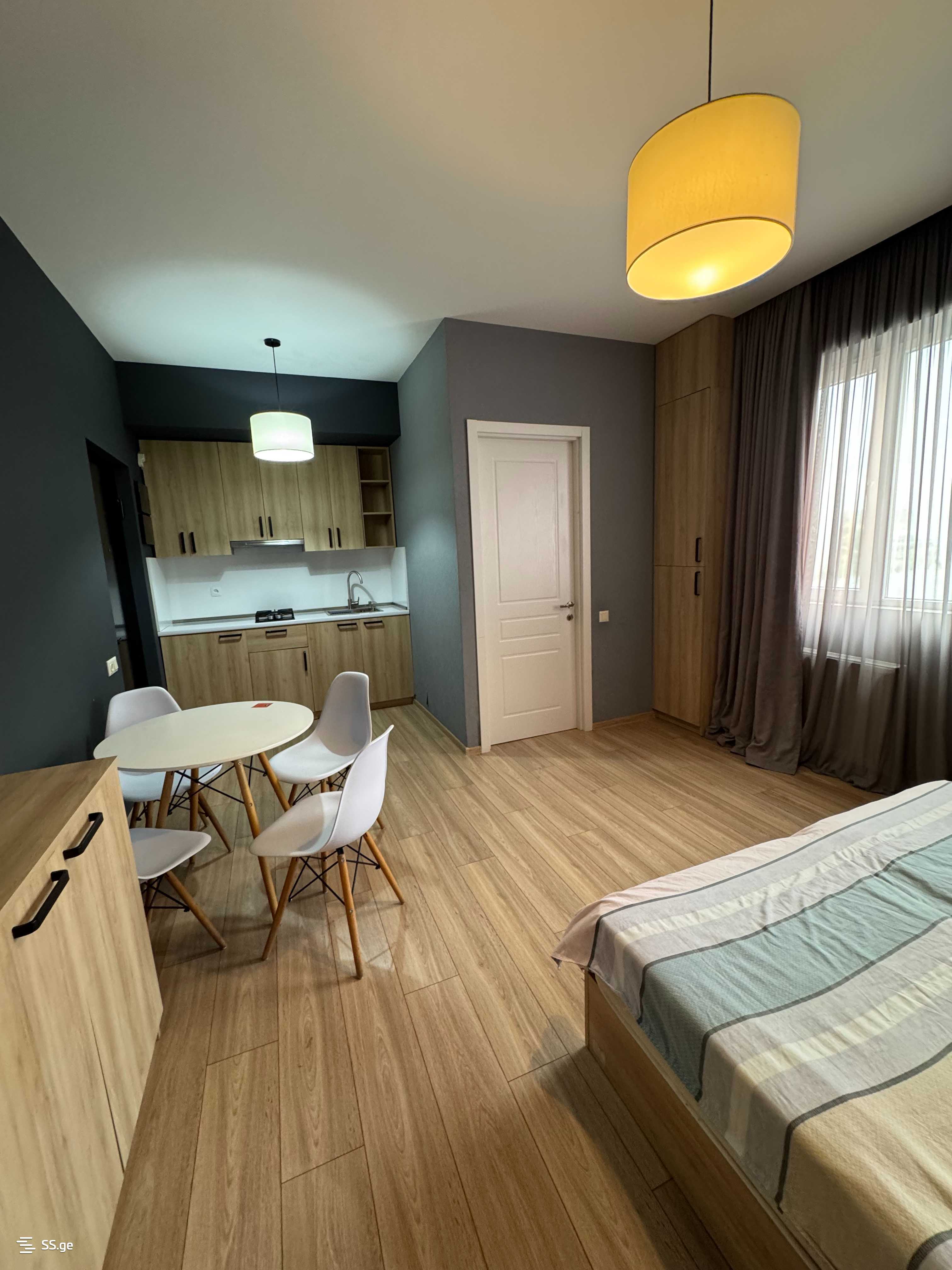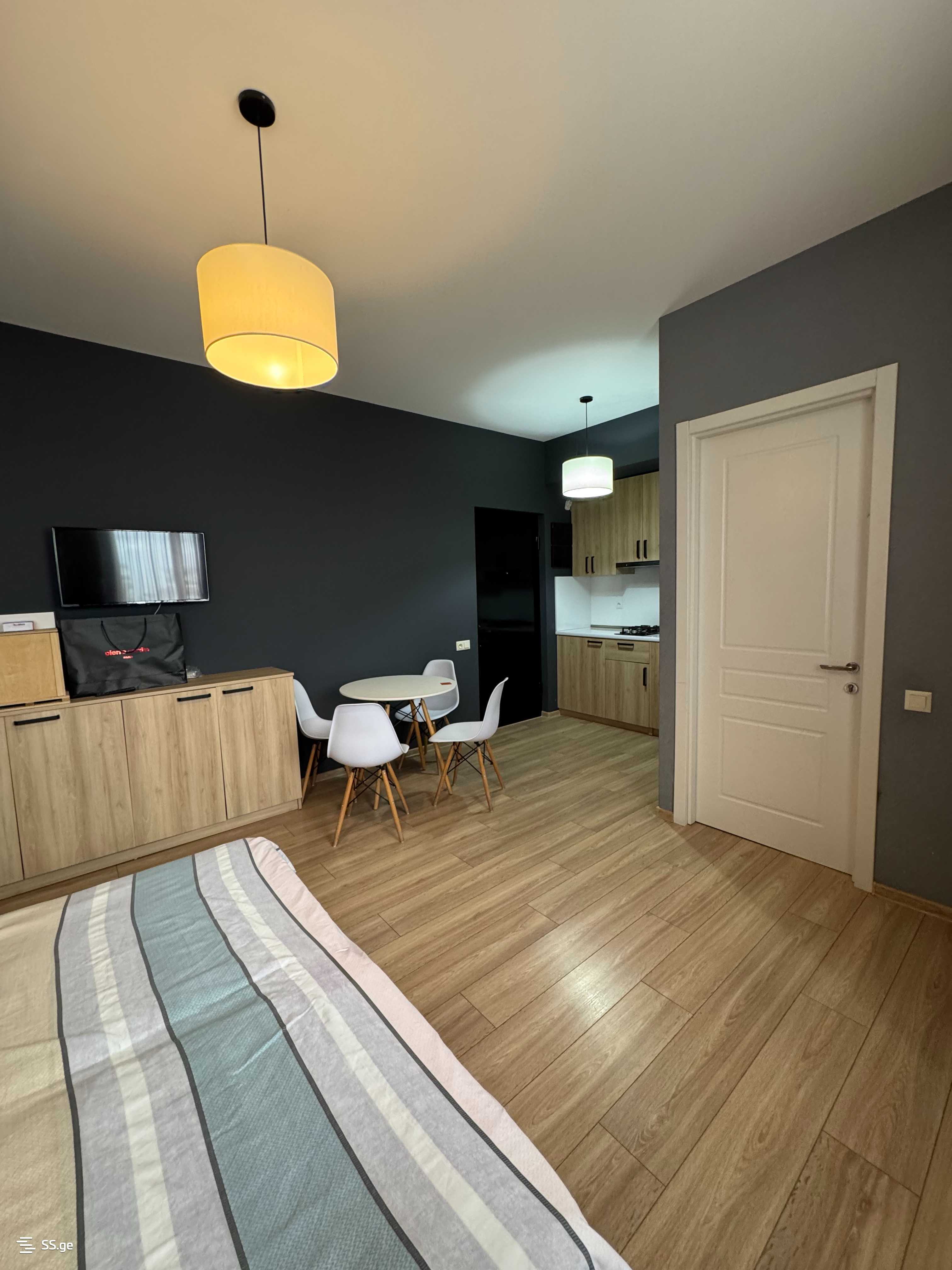 Apartment for rent in Orkhevi, Tengiz Chantladze 11g, area: 25m² with an isolated bedroom, living room and kitchen. The building has a large yard with parking spots. On the first floor, there is already a grocery store, and soon a pharmacy, bookshop, and comfortable café-restaurant will be added. Within a 500-meter radius is 'McDonald's'. The entrance door opens only with a password, ensuring security. Rent: $300.