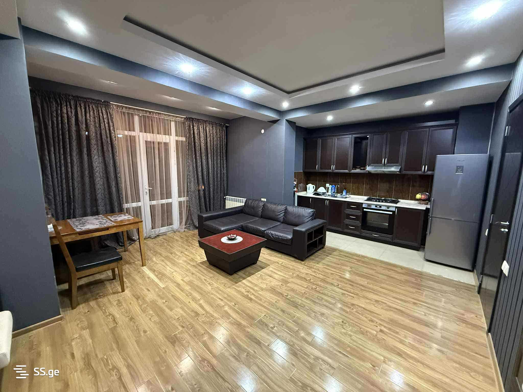 An apartment is available for rent on Gagarin Street. A large and bright apartment. A spacious living room and bedroom. Everything is nearby. It has a view of Gagarin. Newly built and renovated. Agencies, do not call.