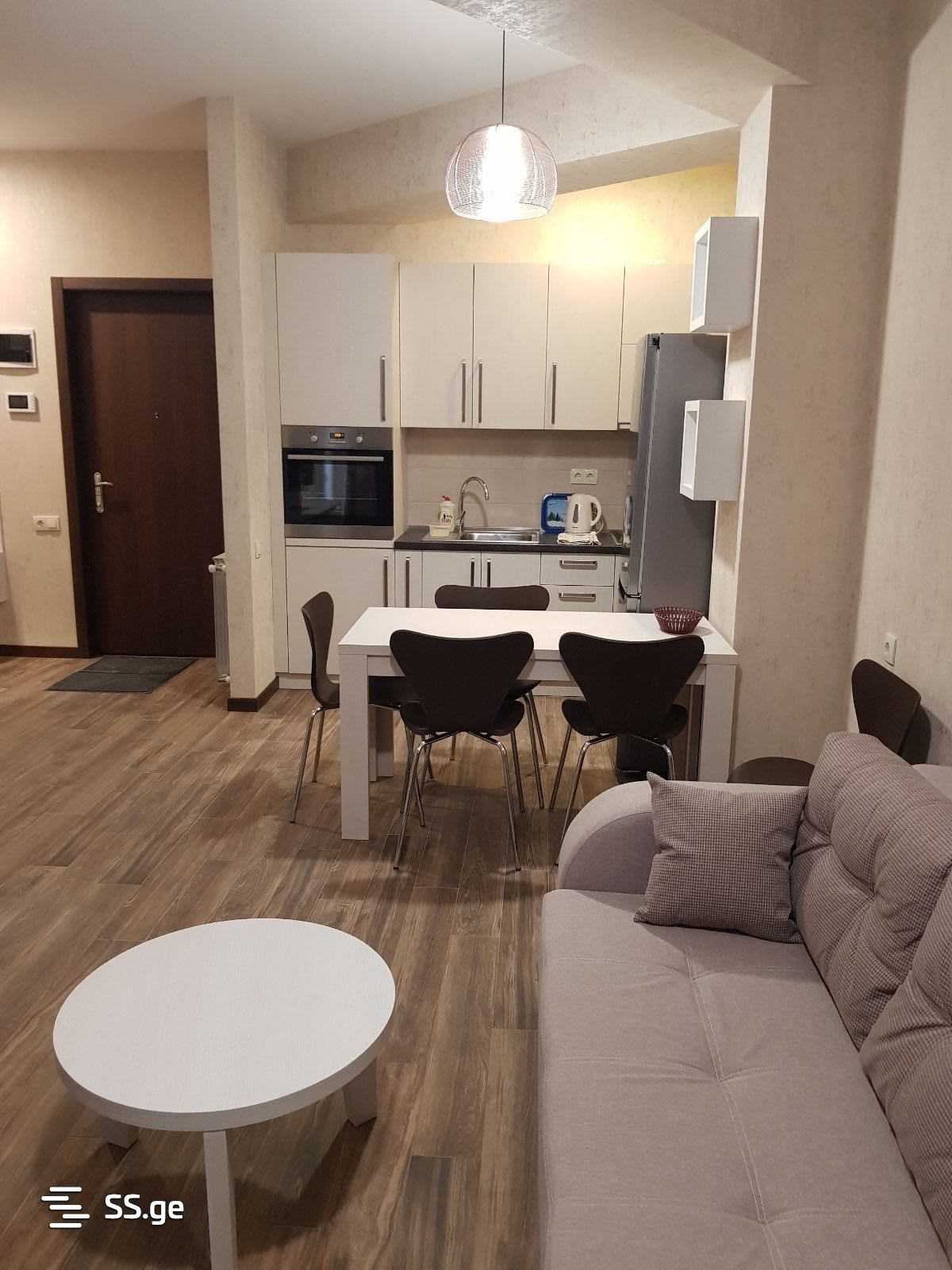 The apartment is bright and cozy in a newly built building, furnished and equipped, with a city view from the balcony.