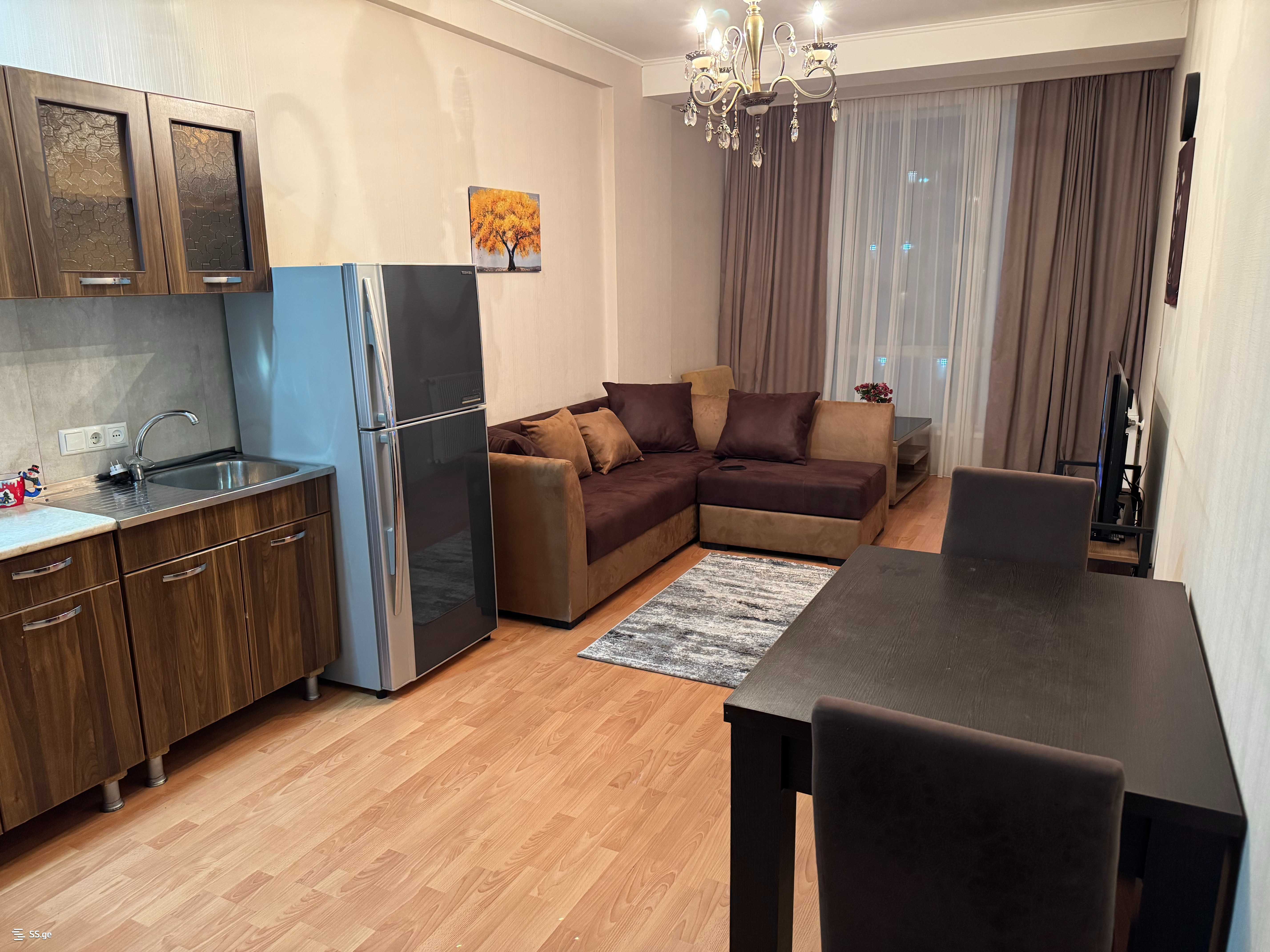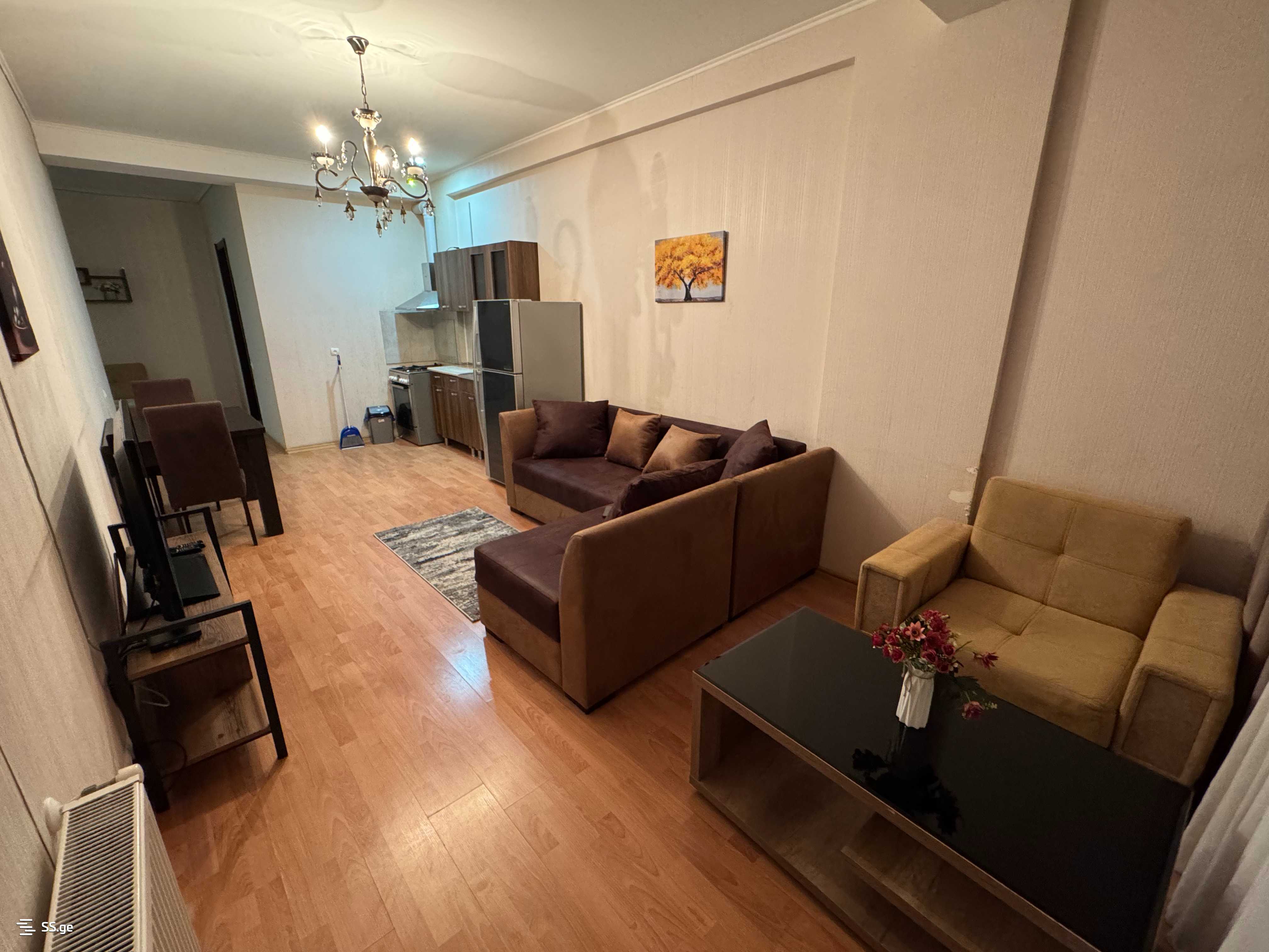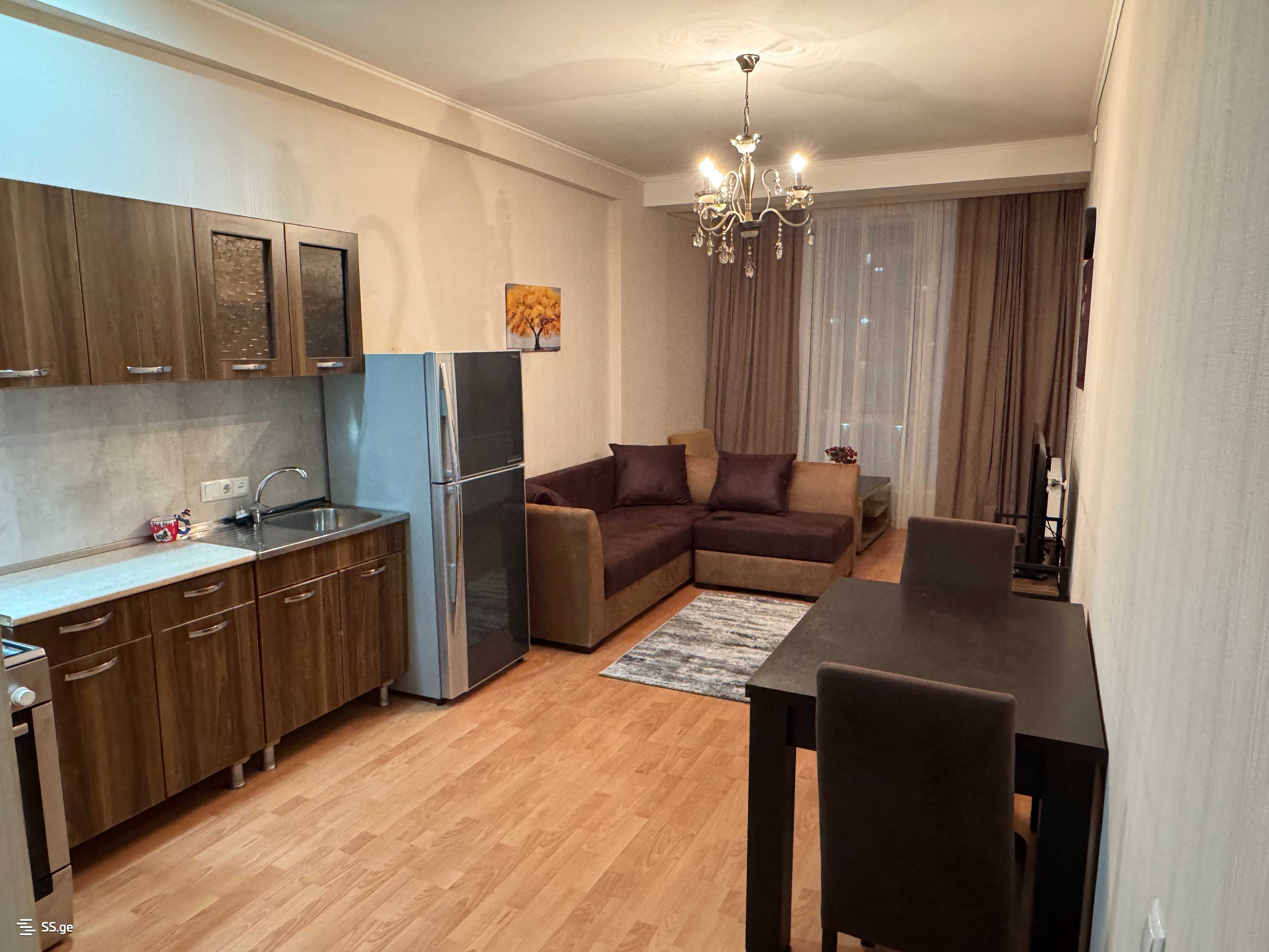 For rent 2-bedroom bright, clean, cozy apartment equipped with all necessary furniture and appliances Address: Didgori, Mirian Mefe Street, floor 5, view of the street and view of the yard, parking space