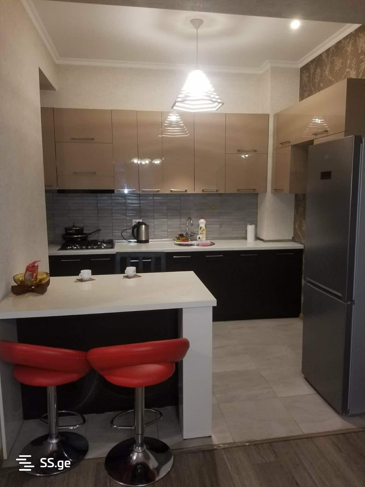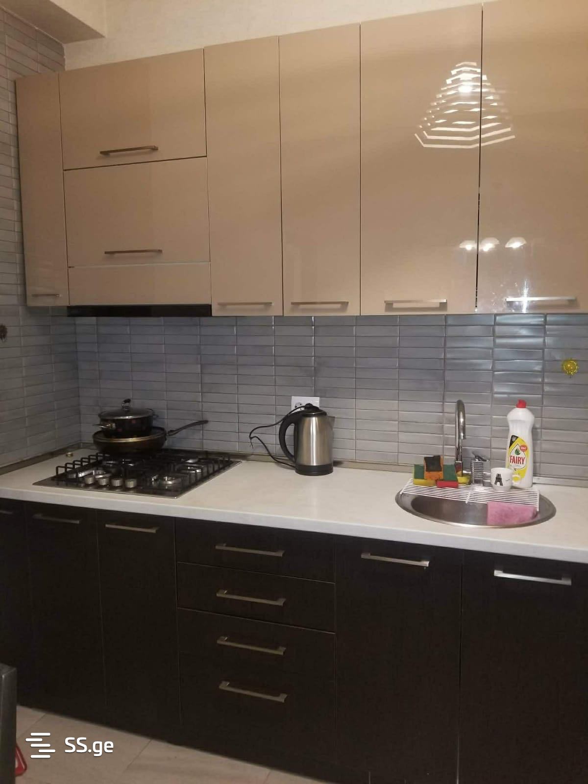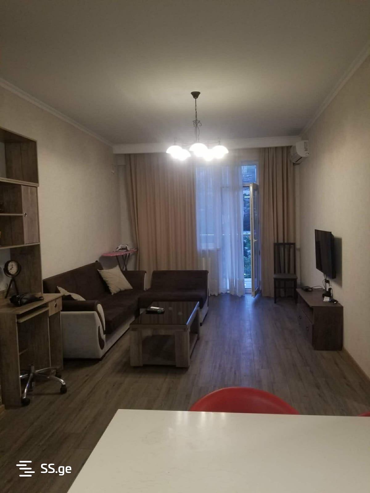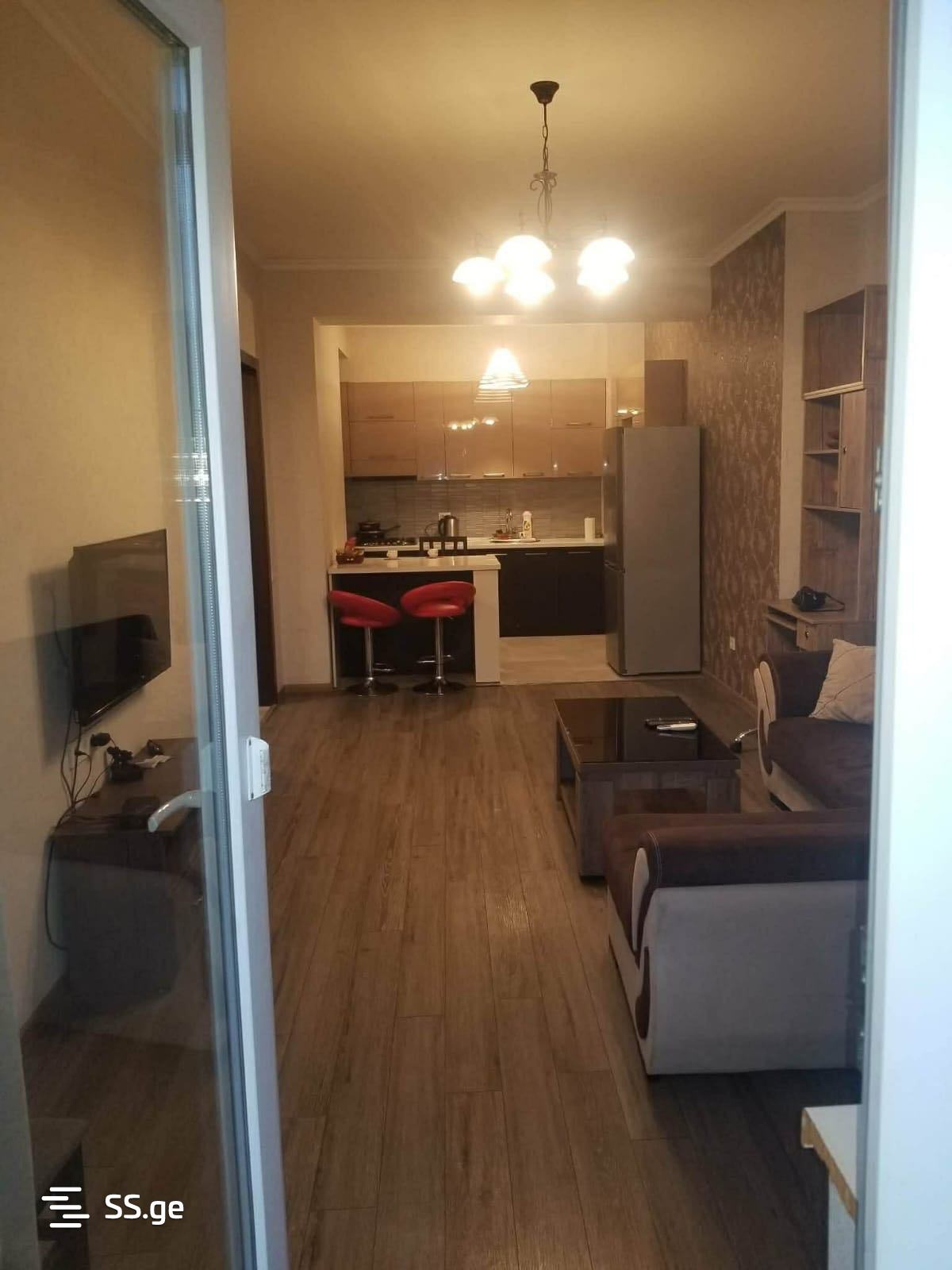 For rent is a 2-room apartment in Saburtalo, in front of City Mall. The apartment has 1 bedroom, a studio-type living room, a balcony, and is fully furnished with all furniture and appliances. It is newly built, secured, and has a well-maintained entrance.