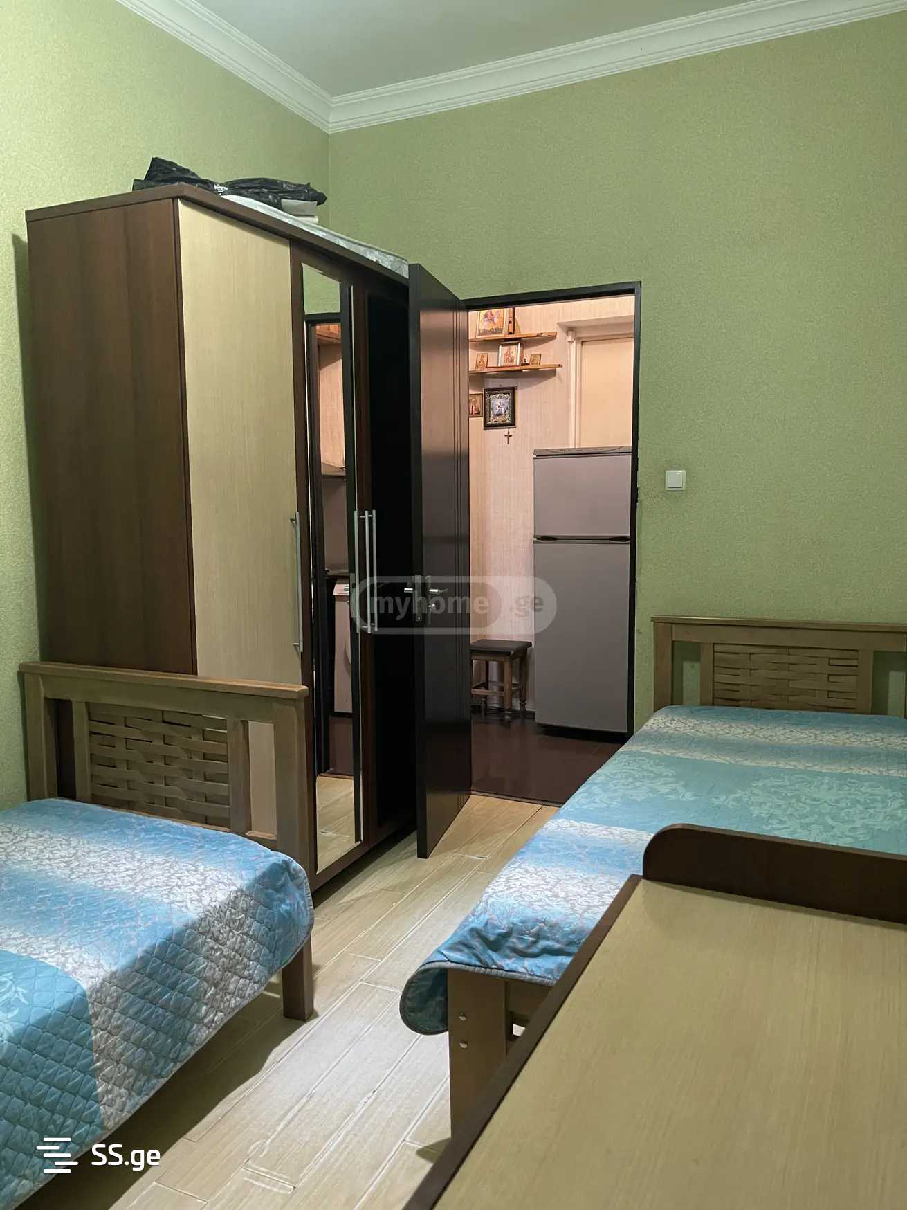 The apartment is clean, comfortable, with a separate kitchen, a bedroom, and furniture. Close to the metro station of Tsereteli, near Coca-Cola.