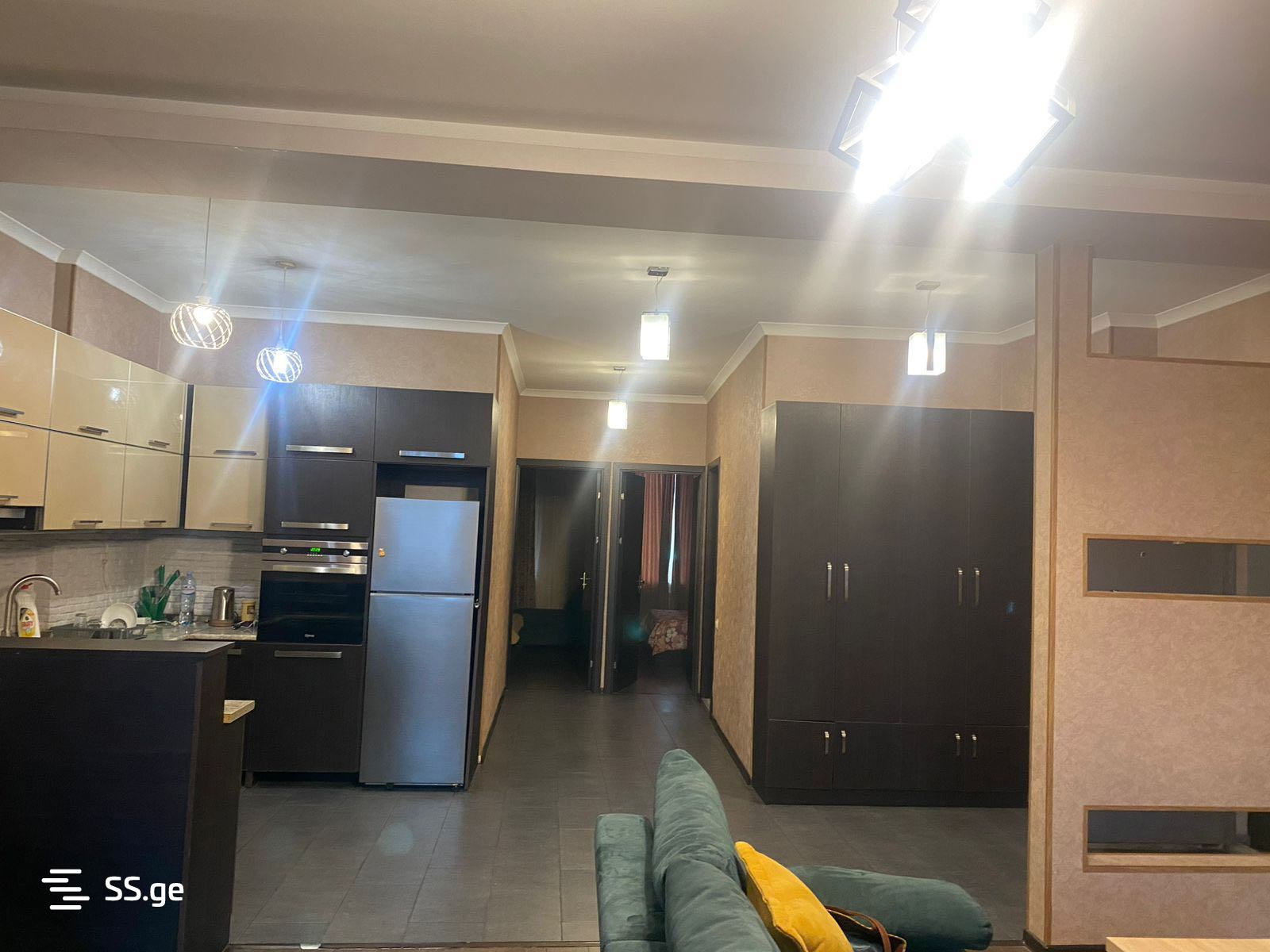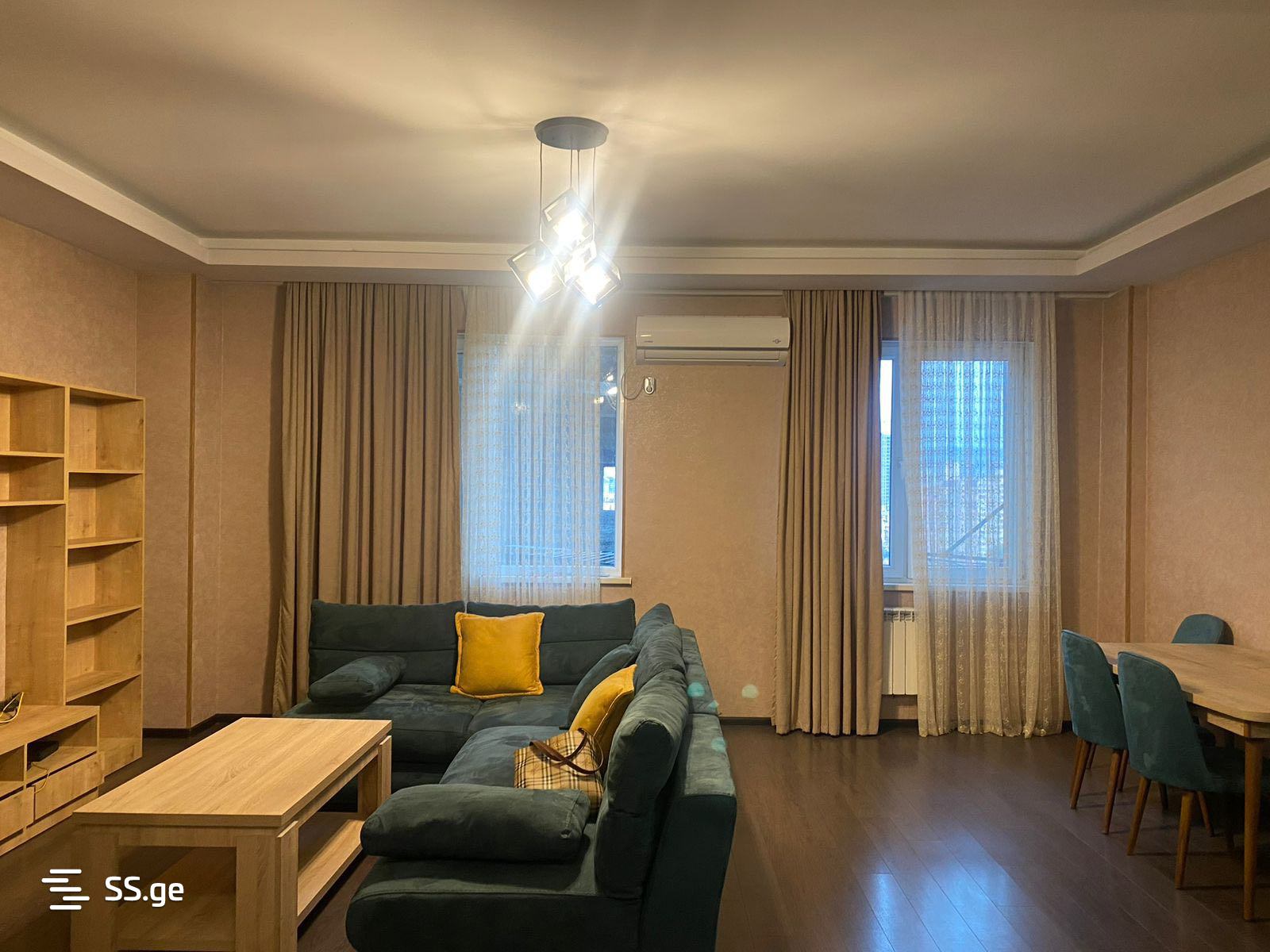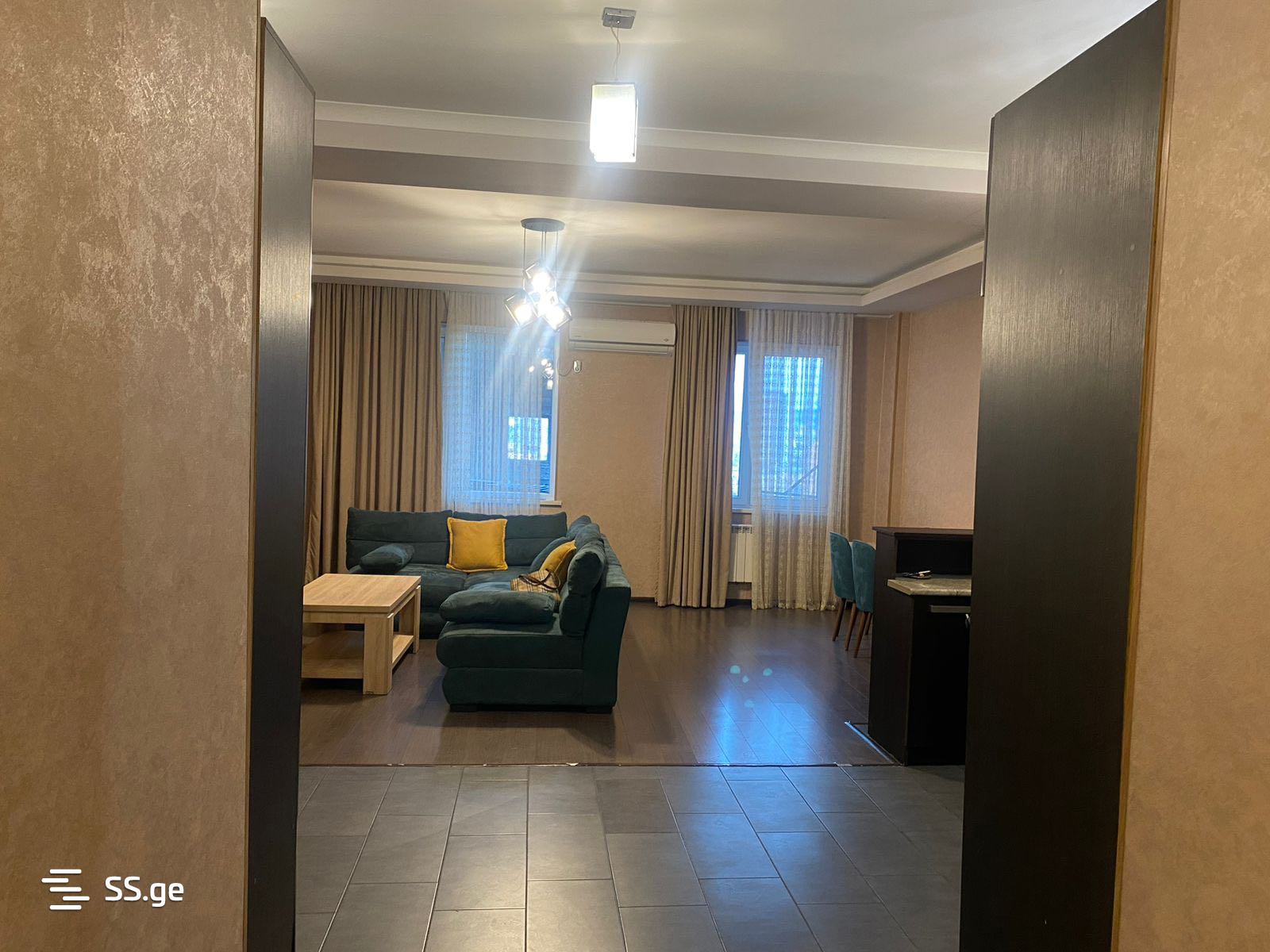3-room apartment for rent with furniture and appliances, near the Sports Palace on Bochorishvili Street in a newly built building.