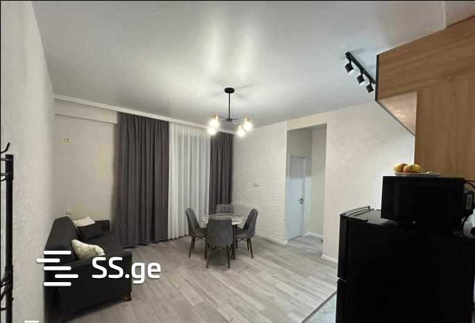 For rent: a 2-room apartment in Didgori, 48 sq.m. in a newly built block on Archil Mepe Street with euro renovation, central heating, furnished and equipped with appliances. Price: 1000 GEL.