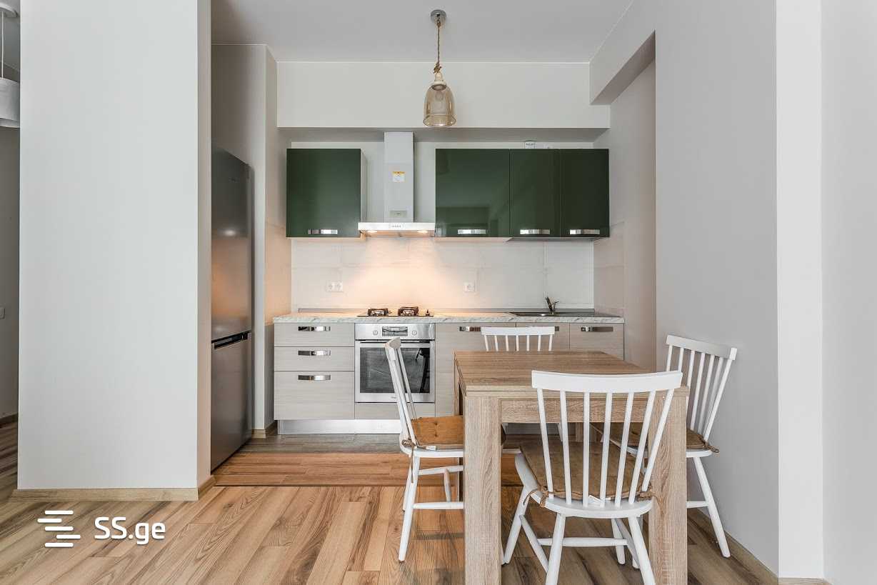 For rent a 2-room apartment in Saburtalo, on Givi Kartozia Street, in a newly built building of M-2, with parking and an isolated bedroom.