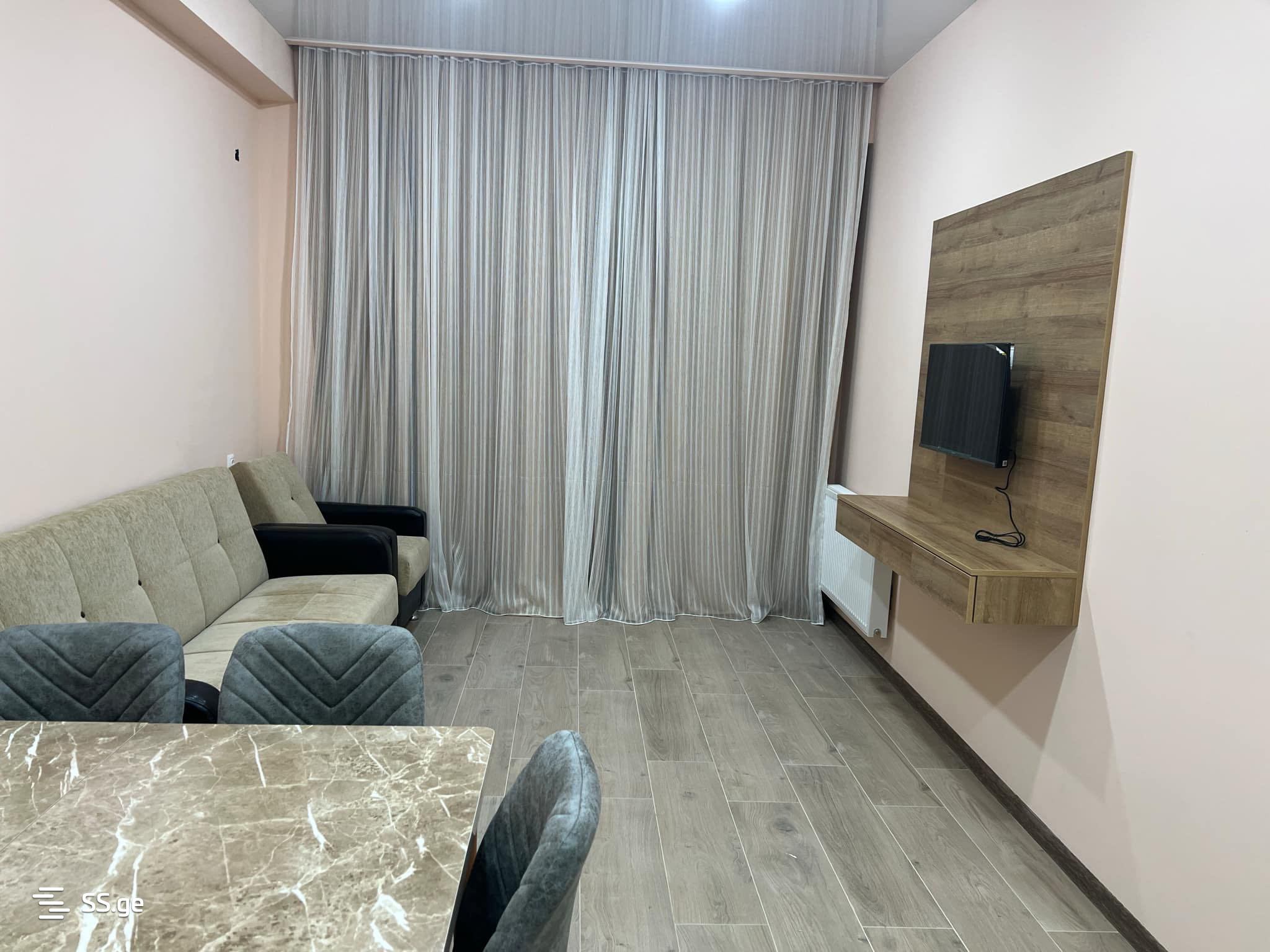 An apartment is for rent in a newly built building, located on the fourth floor of a 12-story building. The total area of the apartment is 57 sq.m and includes two rooms, including one bedroom. The apartment has one balcony that provides extra space for relaxation. Do not call me from the agency! The price is 1200 Lari!