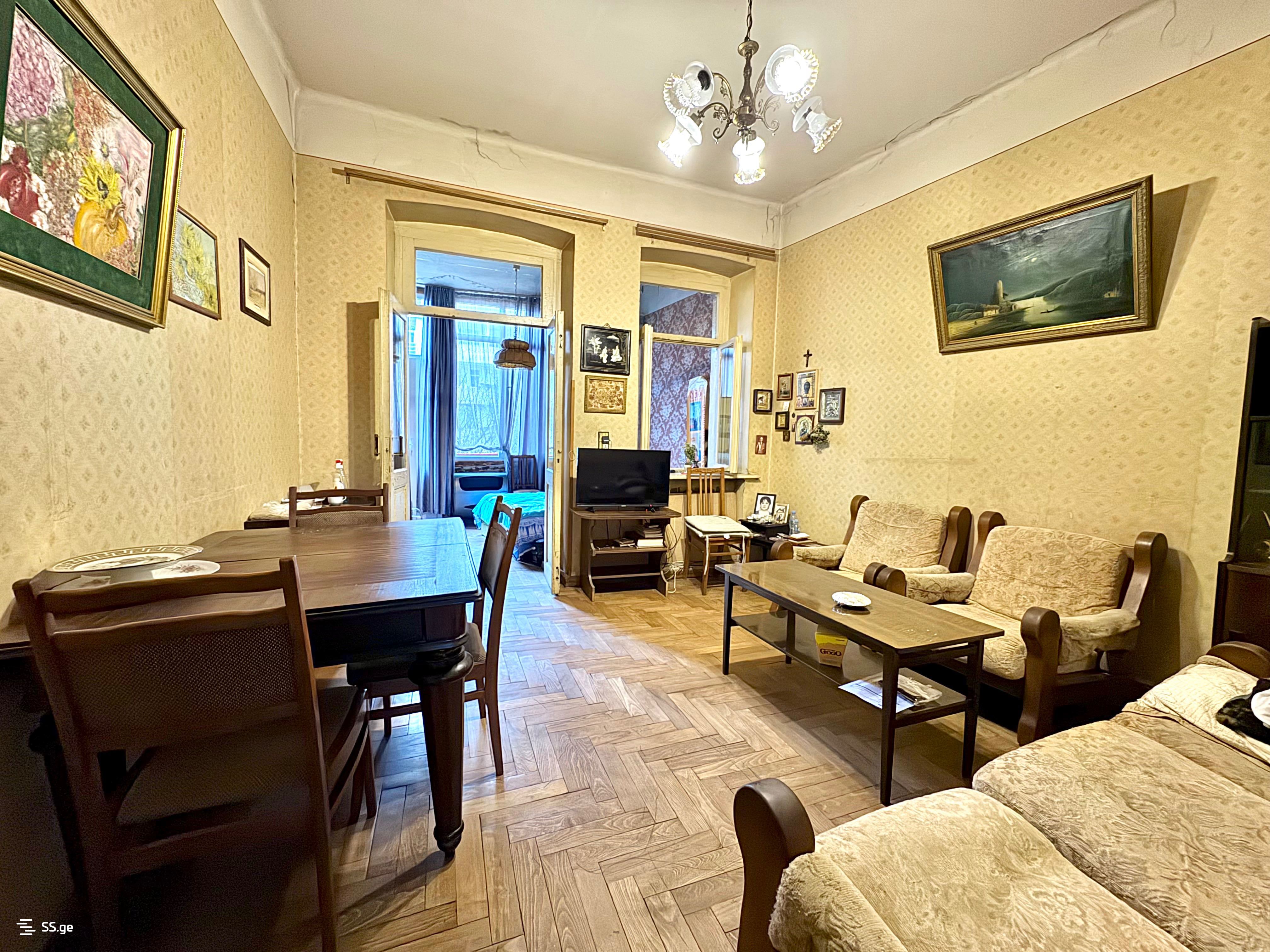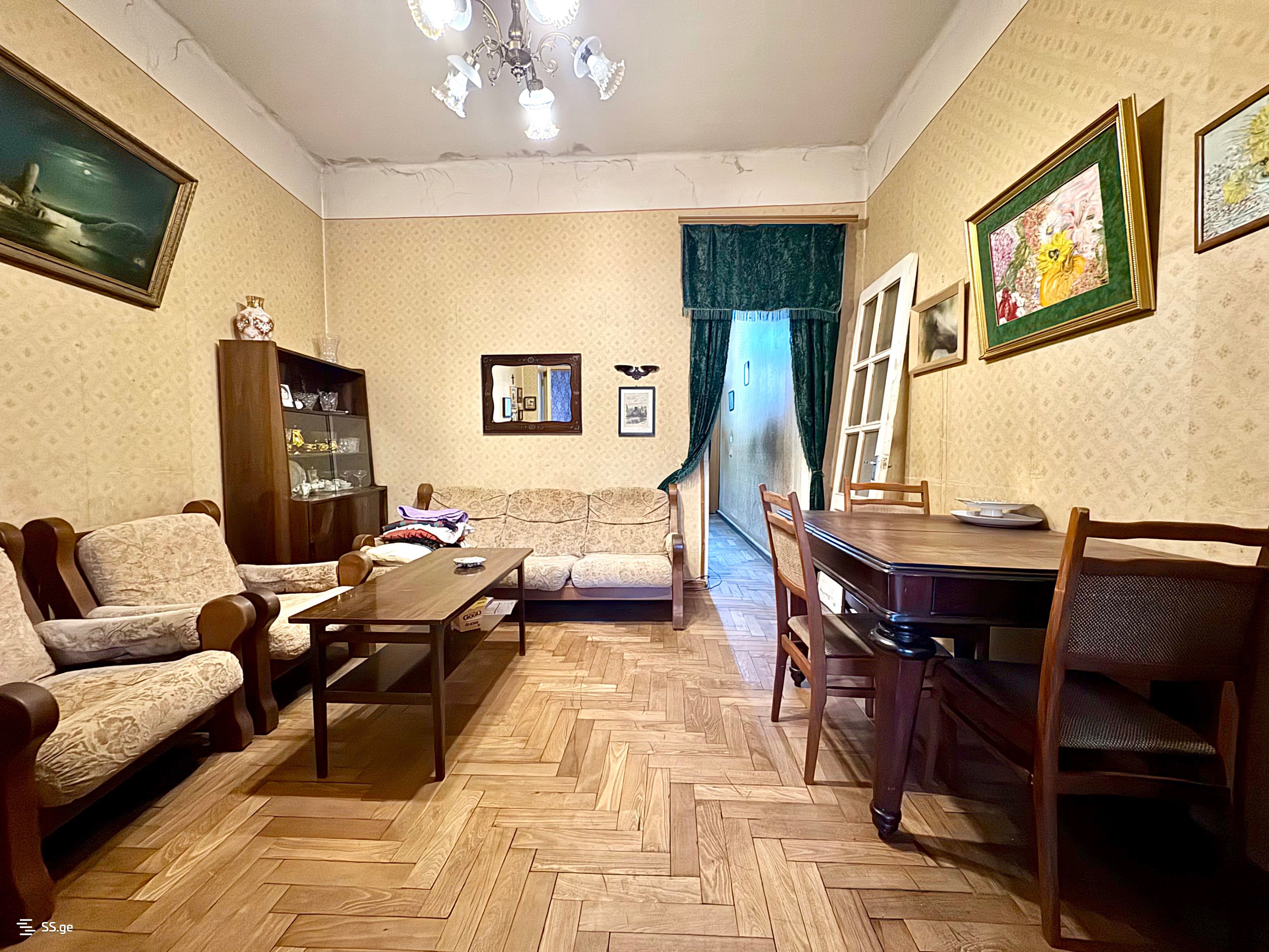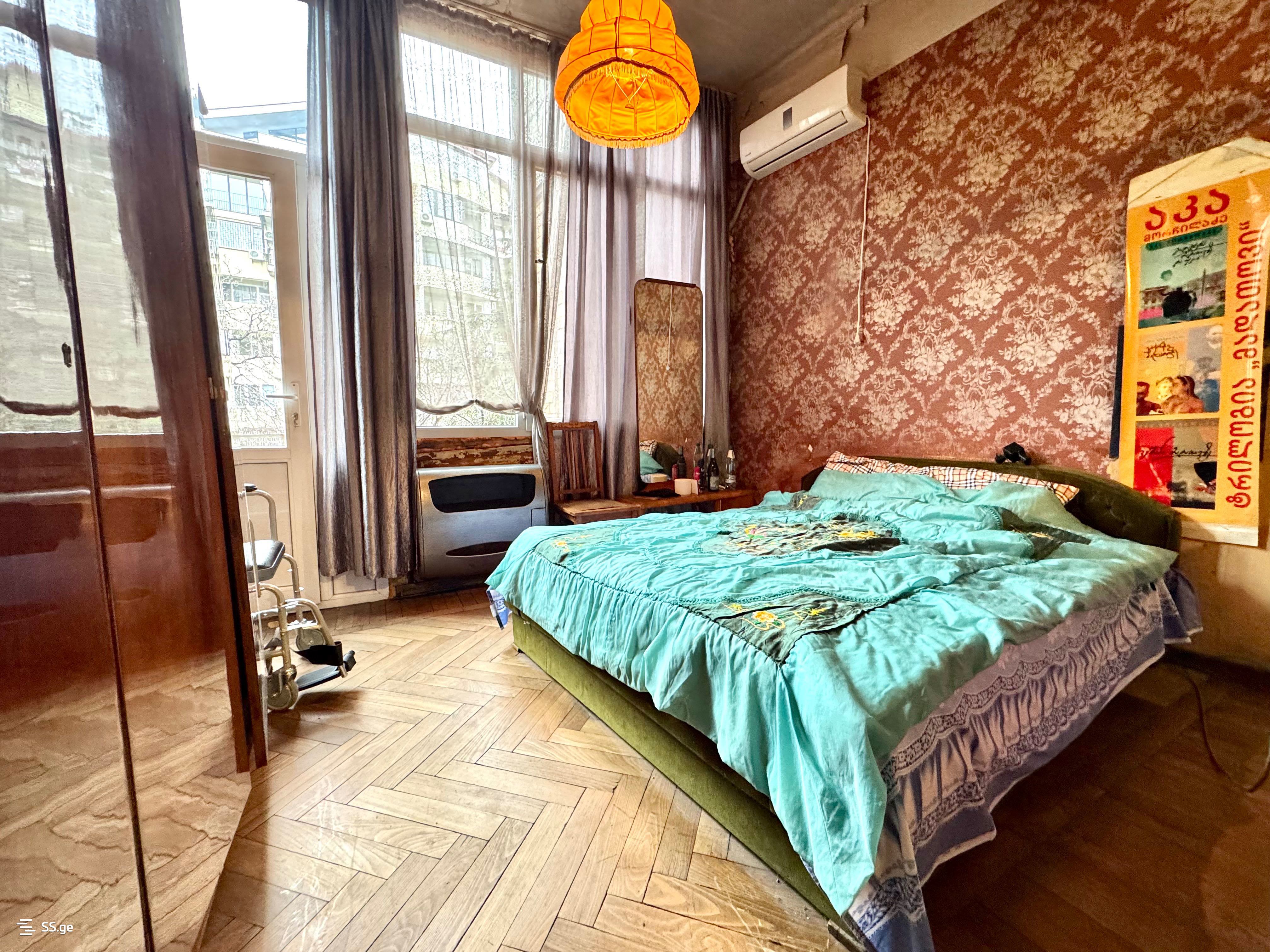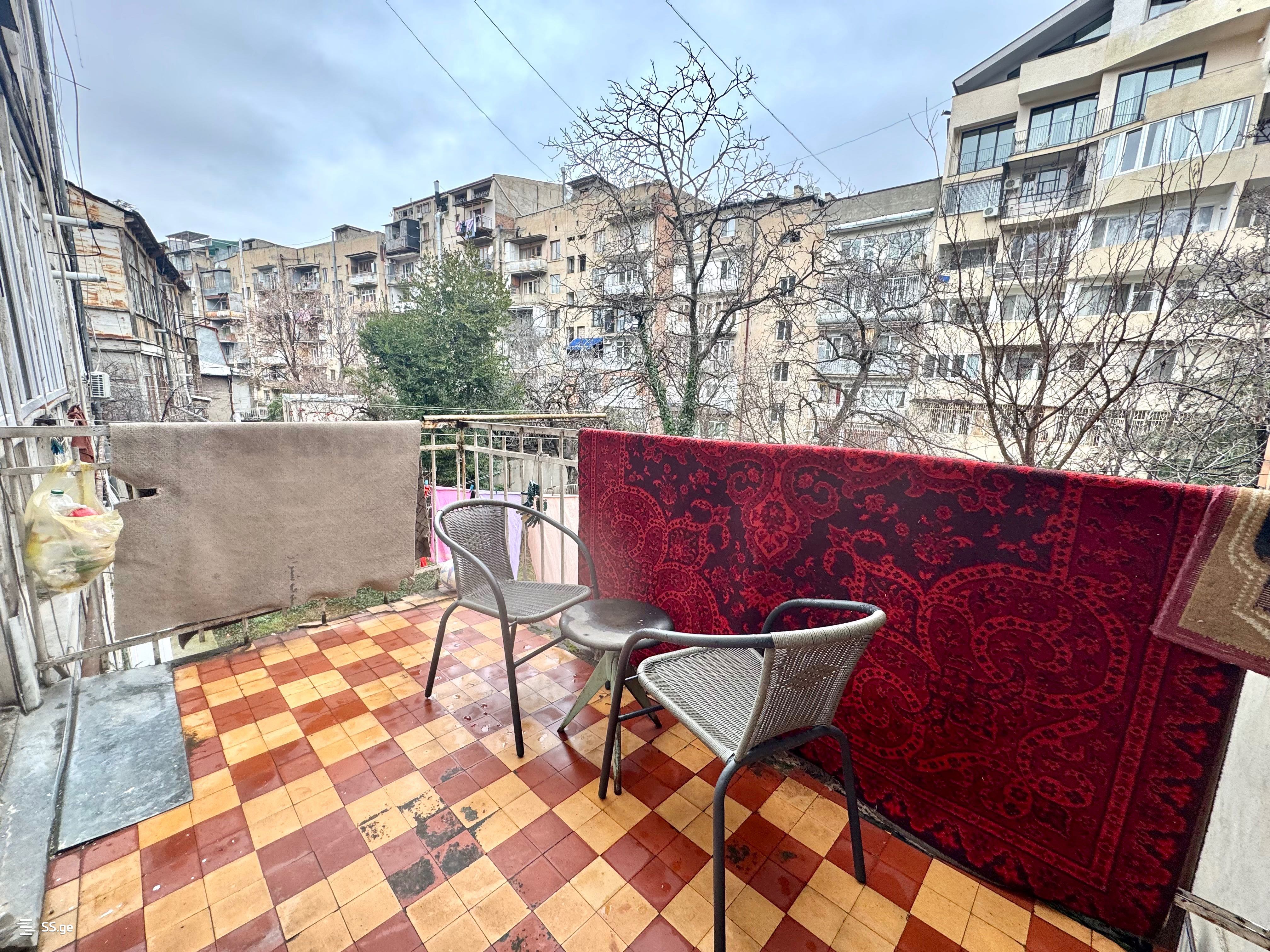 For rent in Vake near the Round Garden on Kobuleti Street a 3-room old renovated apartment with 2 bedrooms, a balcony, an isolated kitchen, no central heating (there is a gas heater), also water heating is gas, no air conditioning.