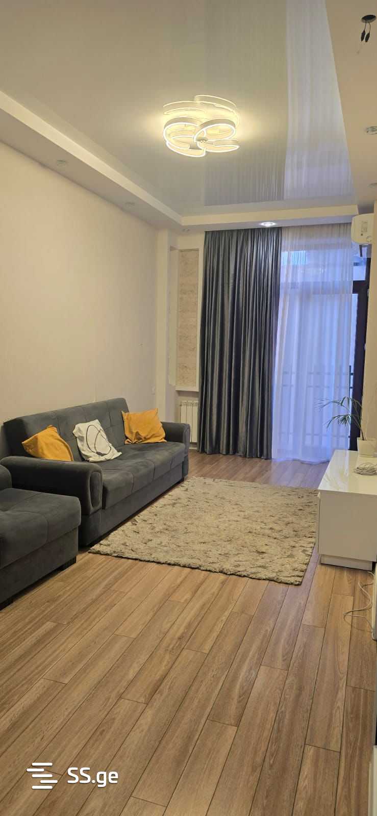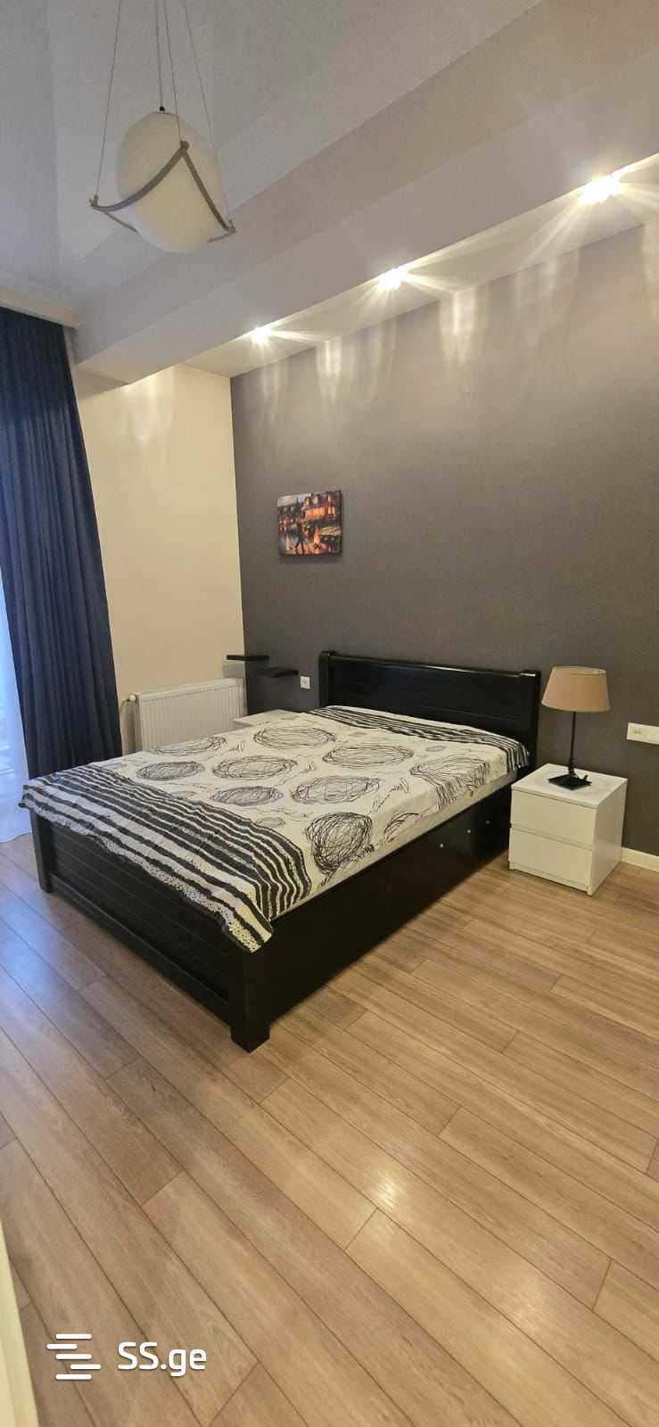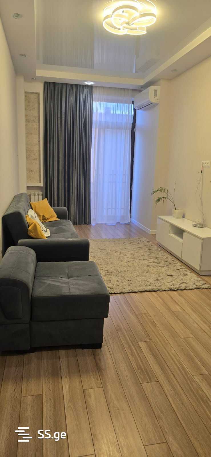 For rent in a newly built building in Didube, on Parnavaz Mepe Avenue, a 3-room newly renovated apartment with furniture and appliances, 2 bedrooms, a studio-type living room, 1 bathroom, and a balcony.