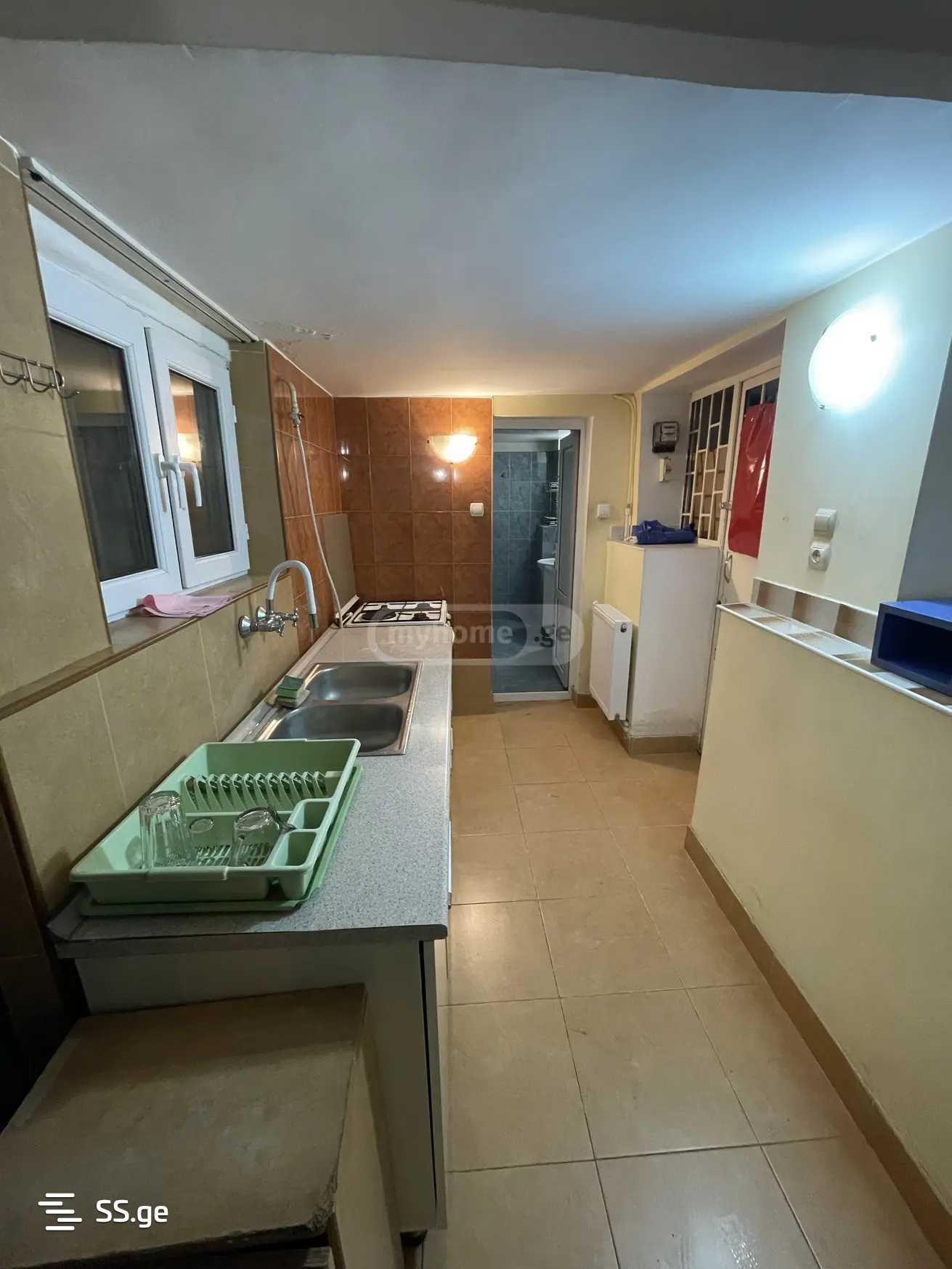 In Vake, on Mtsketa Street near the round garden, a well-furnished two-room apartment is for rent with central heating (first floor of a private house).