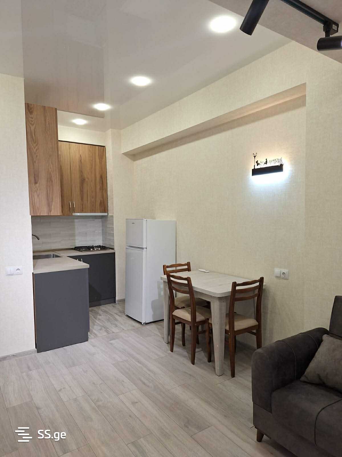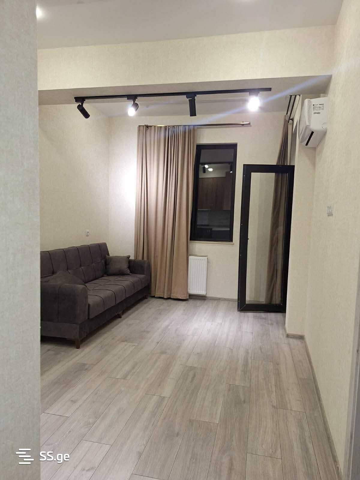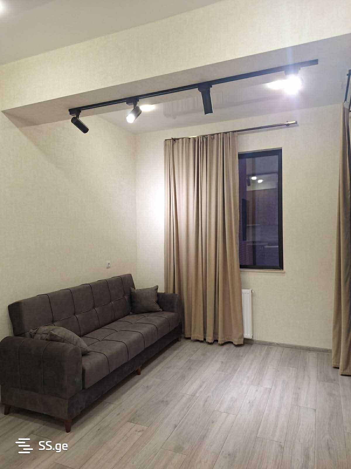 For rent: a newly renovated 2-room apartment in a newly constructed building. Furnished with all necessary furniture and appliances. Close to Caucasus University.