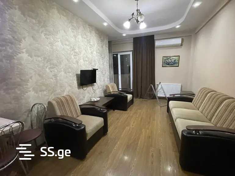 A newly renovated apartment is for rent on Shaurma Street near Akhmeteli Metro, fully furnished and equipped with all necessary appliances.