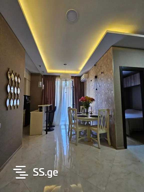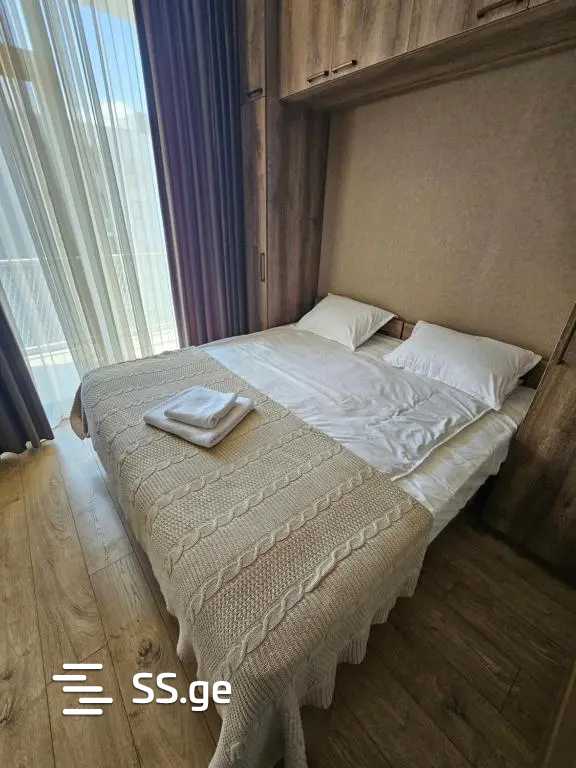 For rent a 45 square meter studio-type apartment, 11th floor, with a separate bedroom, equipped with all kinds of appliances. With a 2-month advance payment.