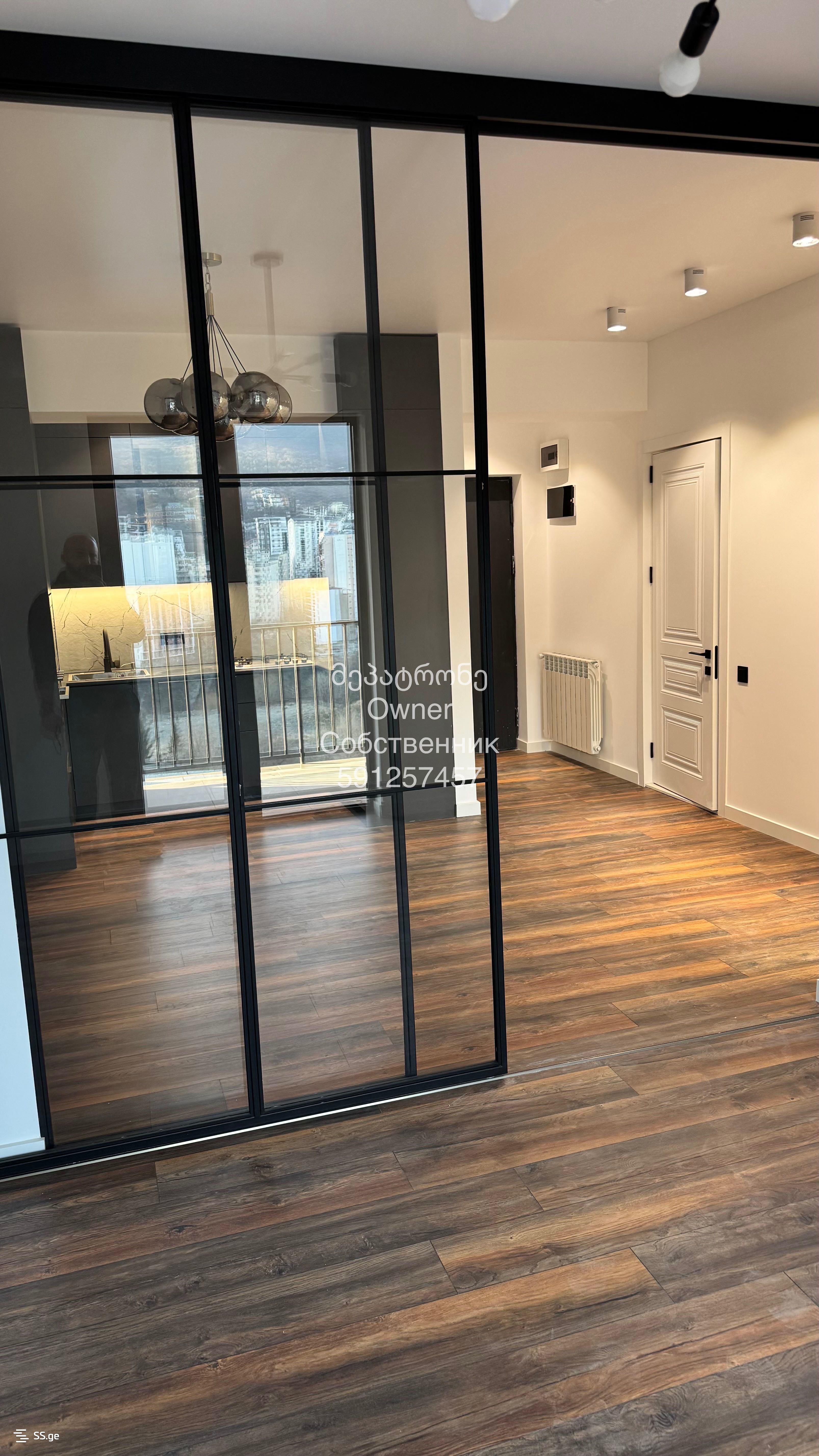 - Living room studio type divided with glass clay into 2 zones (can be used as an office or bedroom)