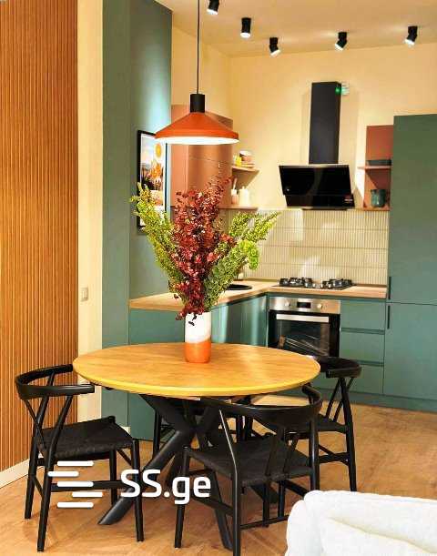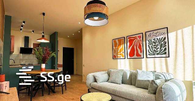 2-roomed 60 sq.m. apartment for rent in Saburtalo, on Aleksidze str, in new building, on the 8th floor, new beautiful designed renovated, with central heating, air-conditioner, furniture, technique, internet, balcony