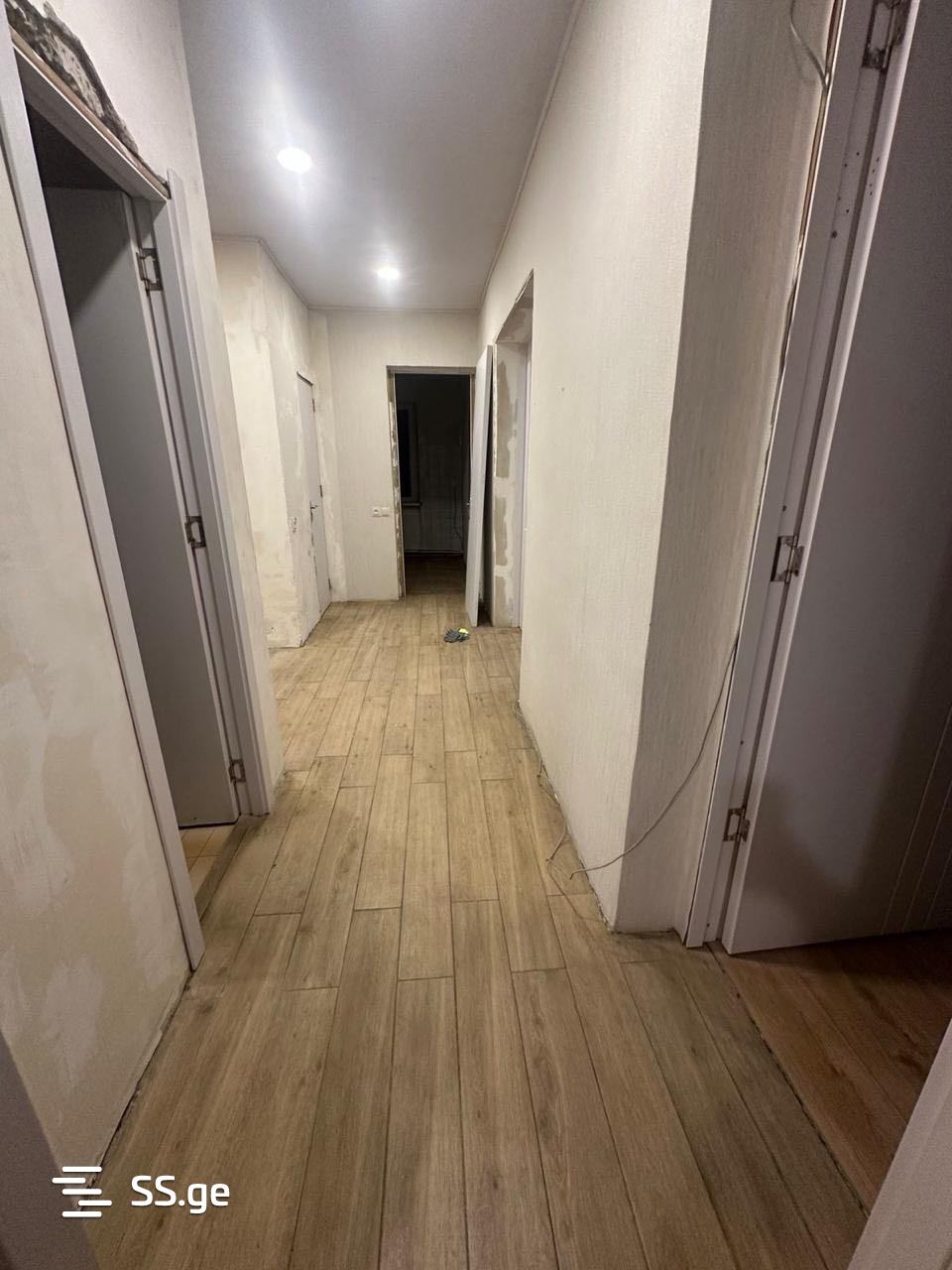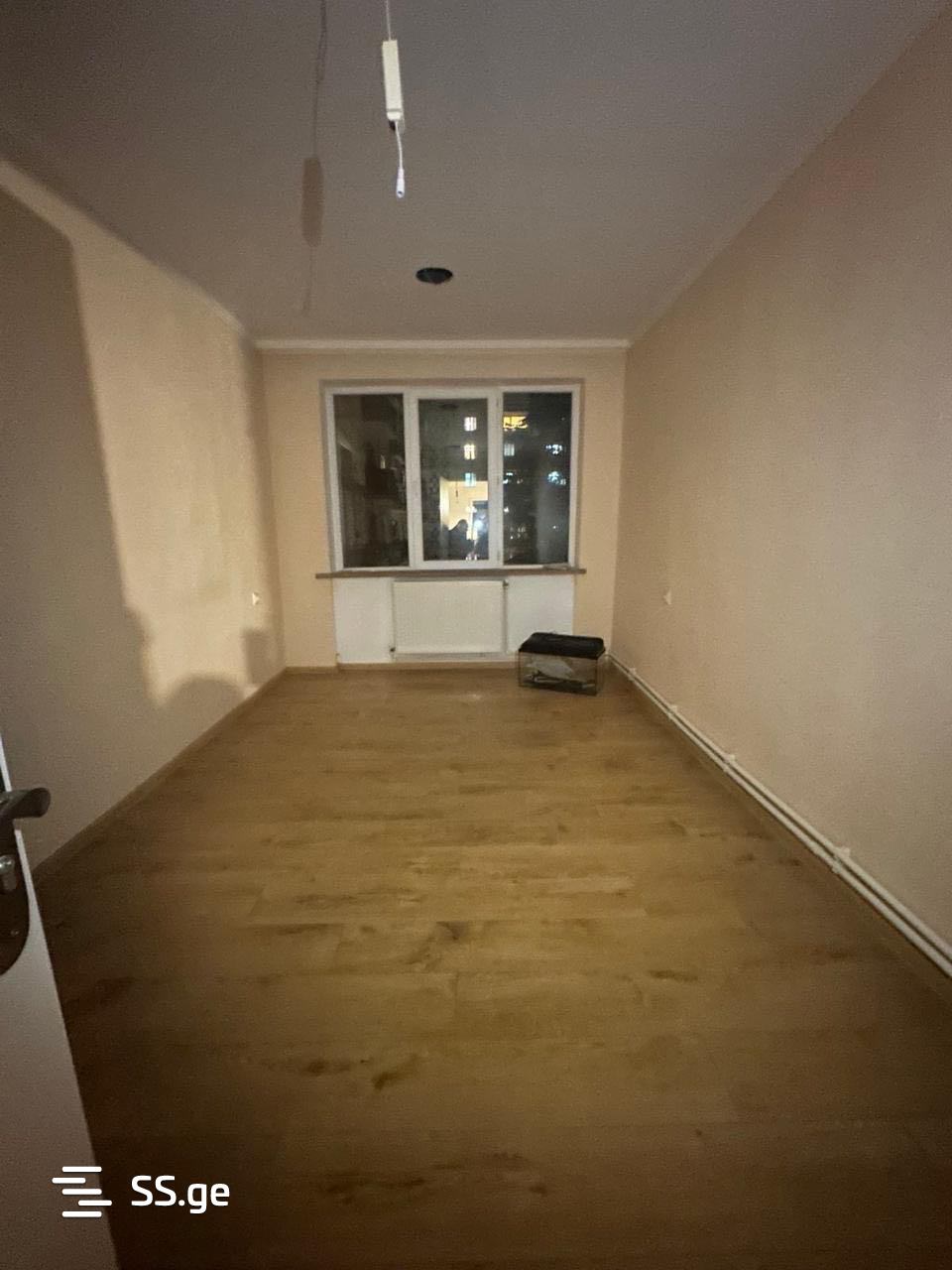 For rent in Saburtalo, on Nutsubidze 5 plateau, a four-room apartment with three bedrooms from a Czech project. With central heating. With a balcony. With an elevator. The apartment is rented without furniture and appliances and is 100 square meters. With two wet rooms. Price is 1200 Lari.