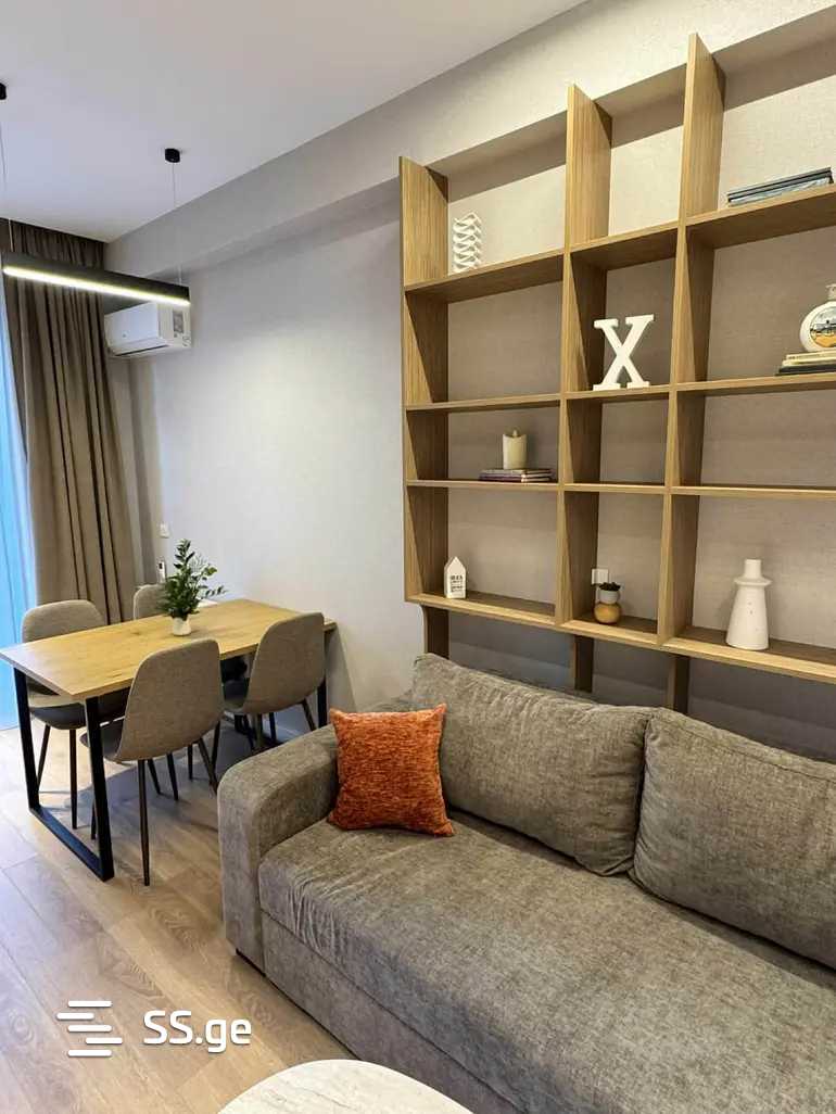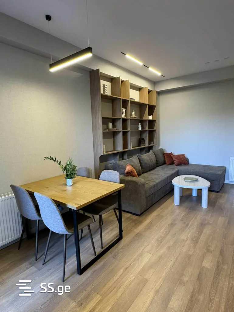 For rent: newly renovated, furnished apartment with all necessary furniture and appliances, central heating, 1 air conditioner, 1 bedroom, 2 months advance payment. I speak Georgian, Russian, and English.