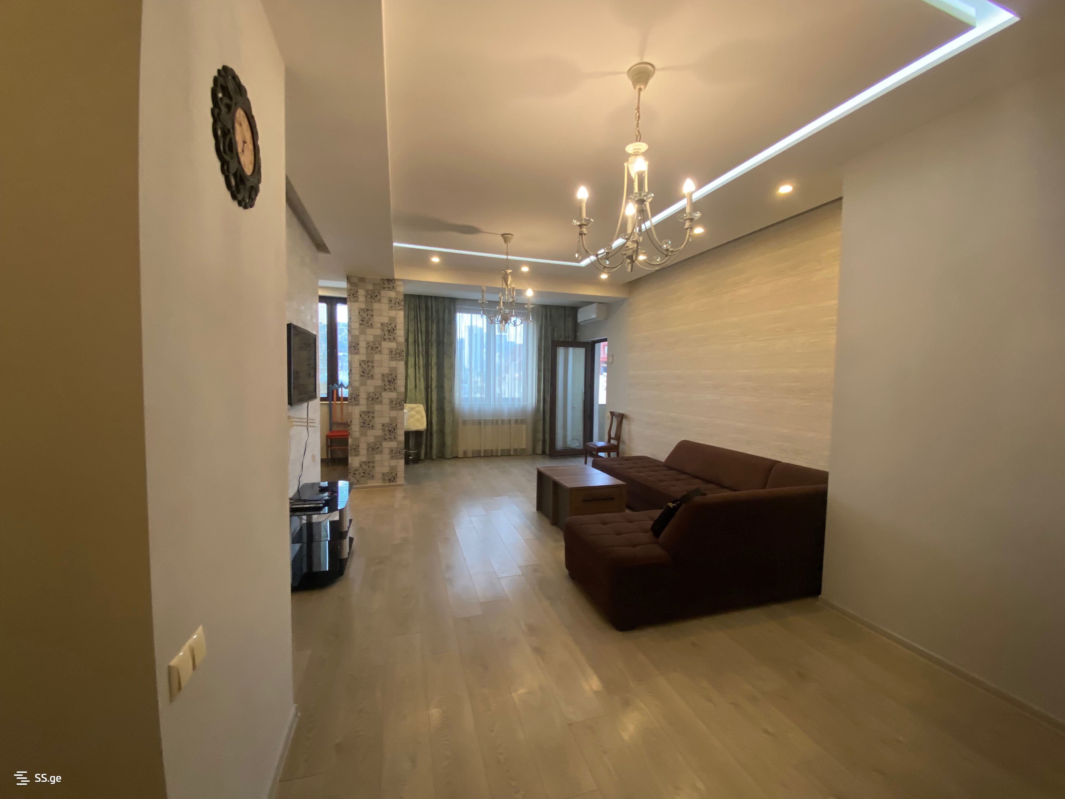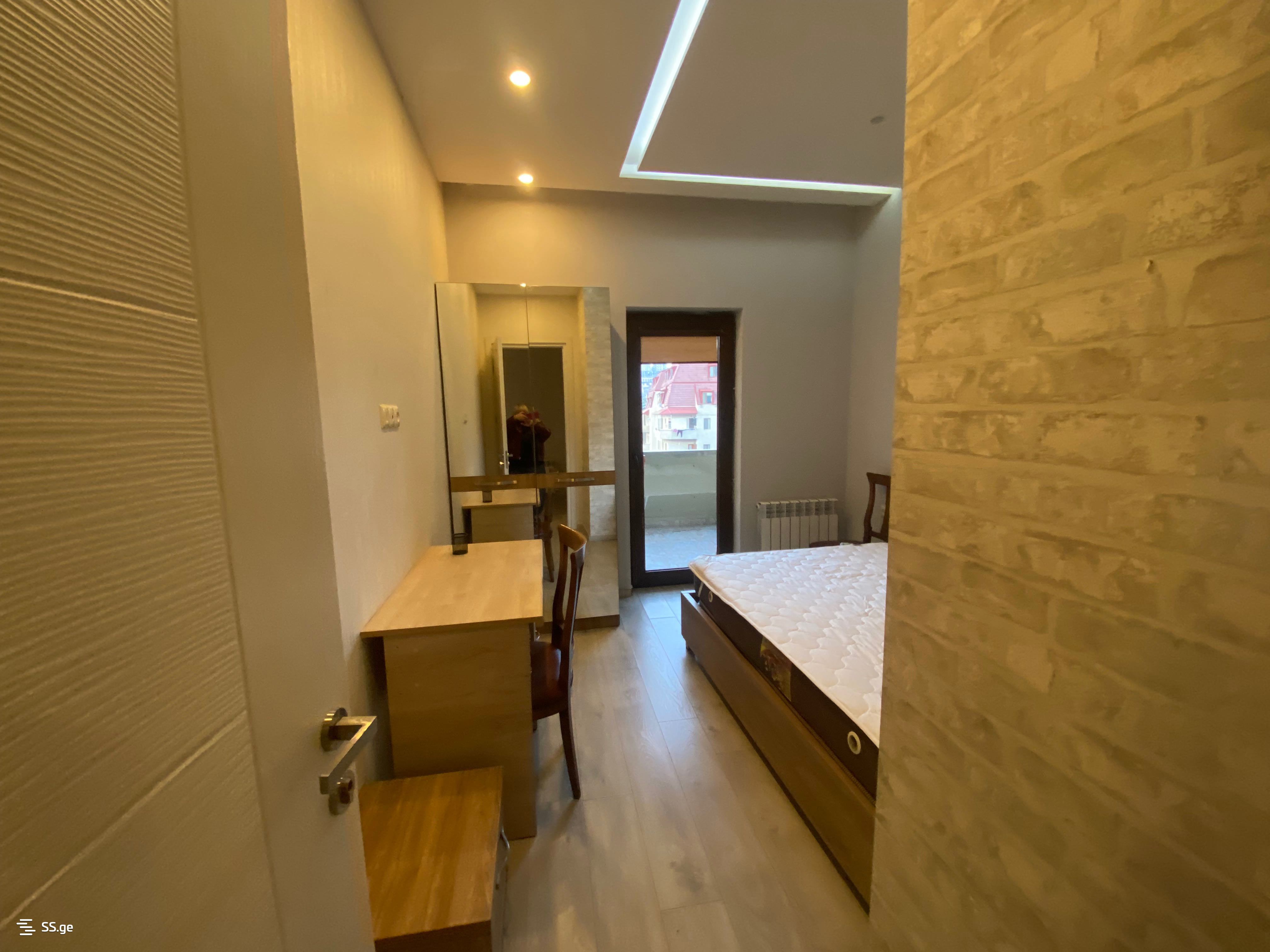 For rent in Saburtalo, in the Shanghai neighborhood on Lortqifanishvili Street, a 100 sq. m apartment for $600 with 2 bedrooms. It is close to a European school on Lortqifanishvili. A three-room apartment with two bedrooms, furnished and equipped with appliances. Central heating. Price is $600.