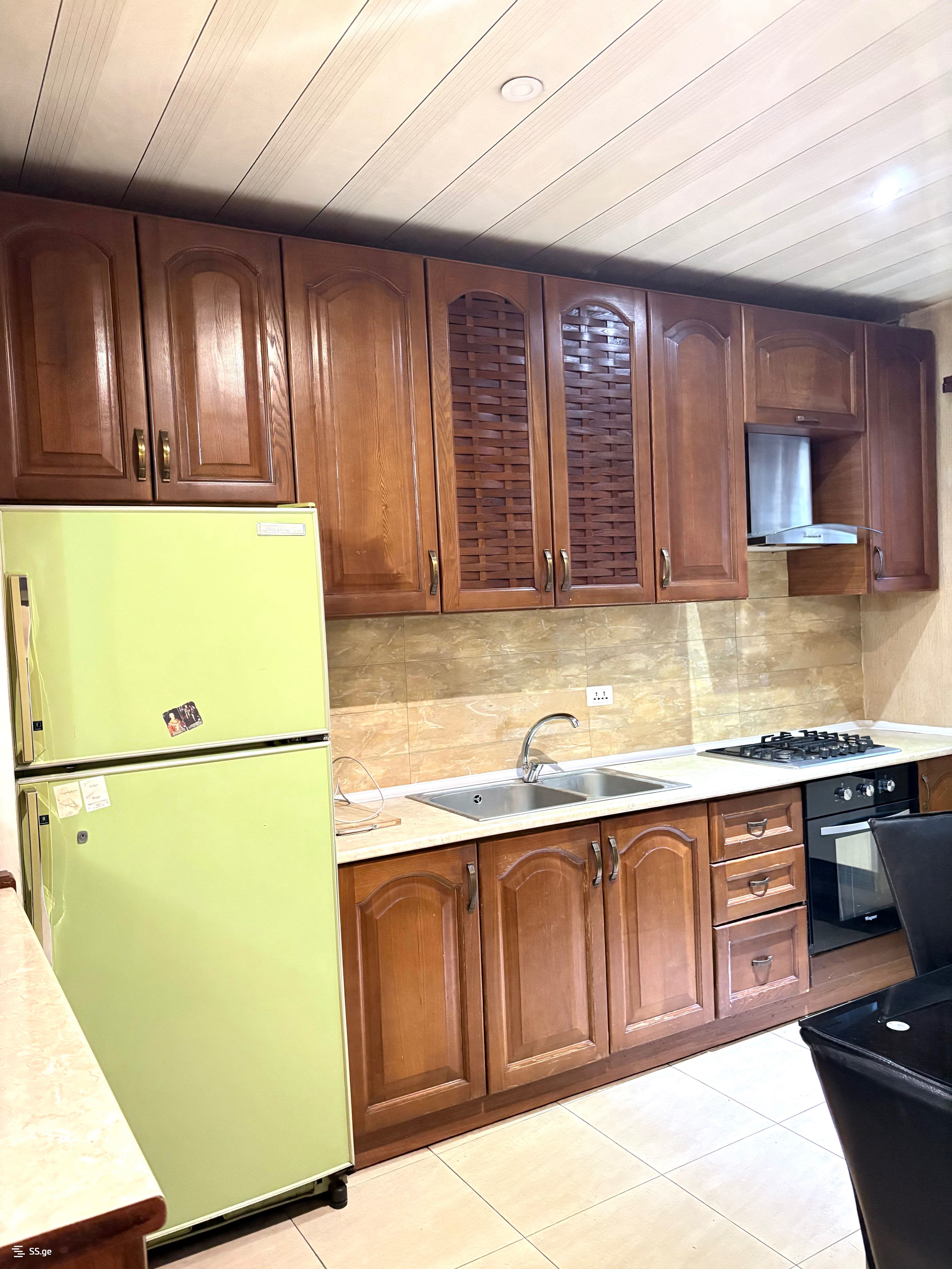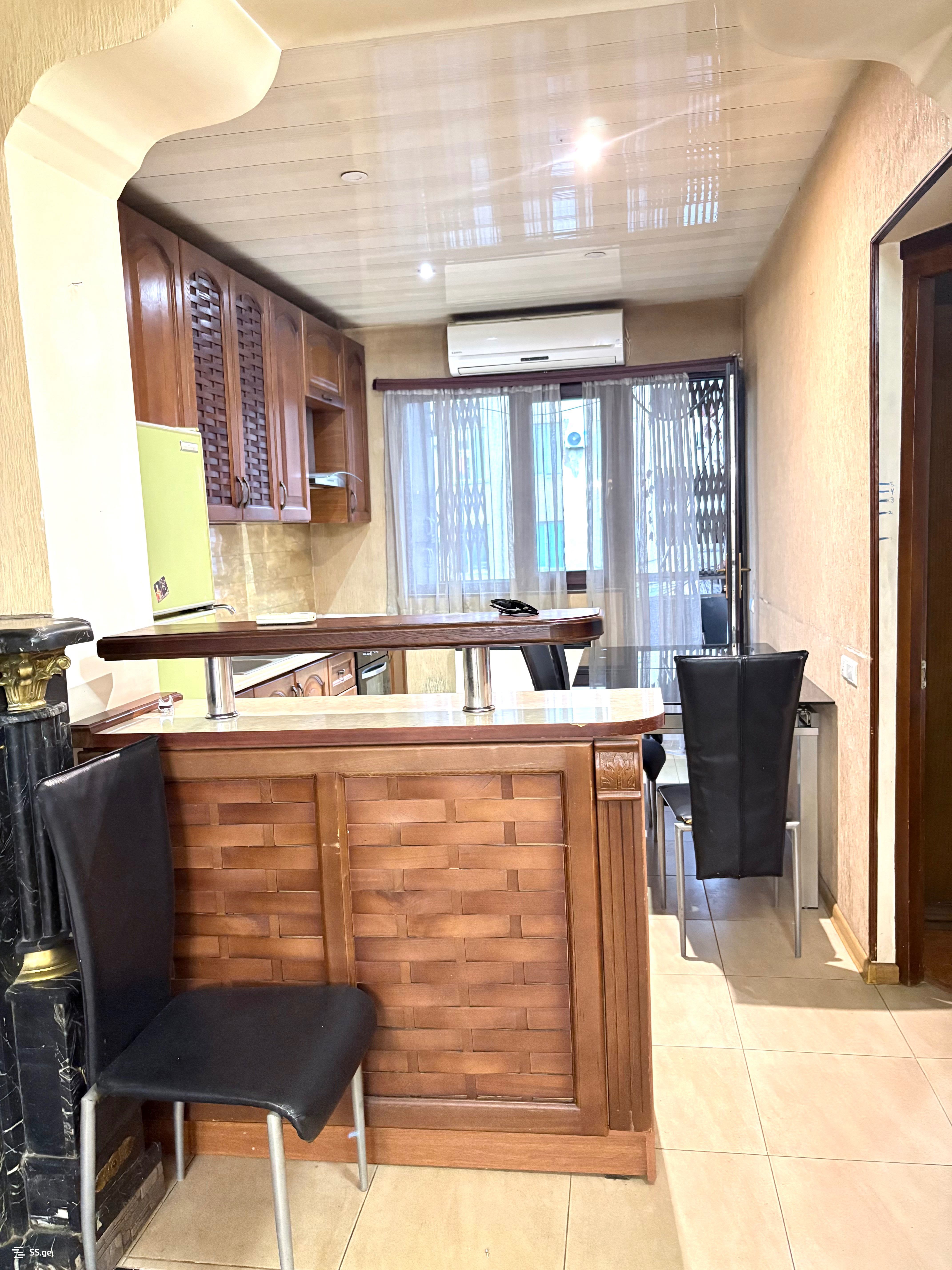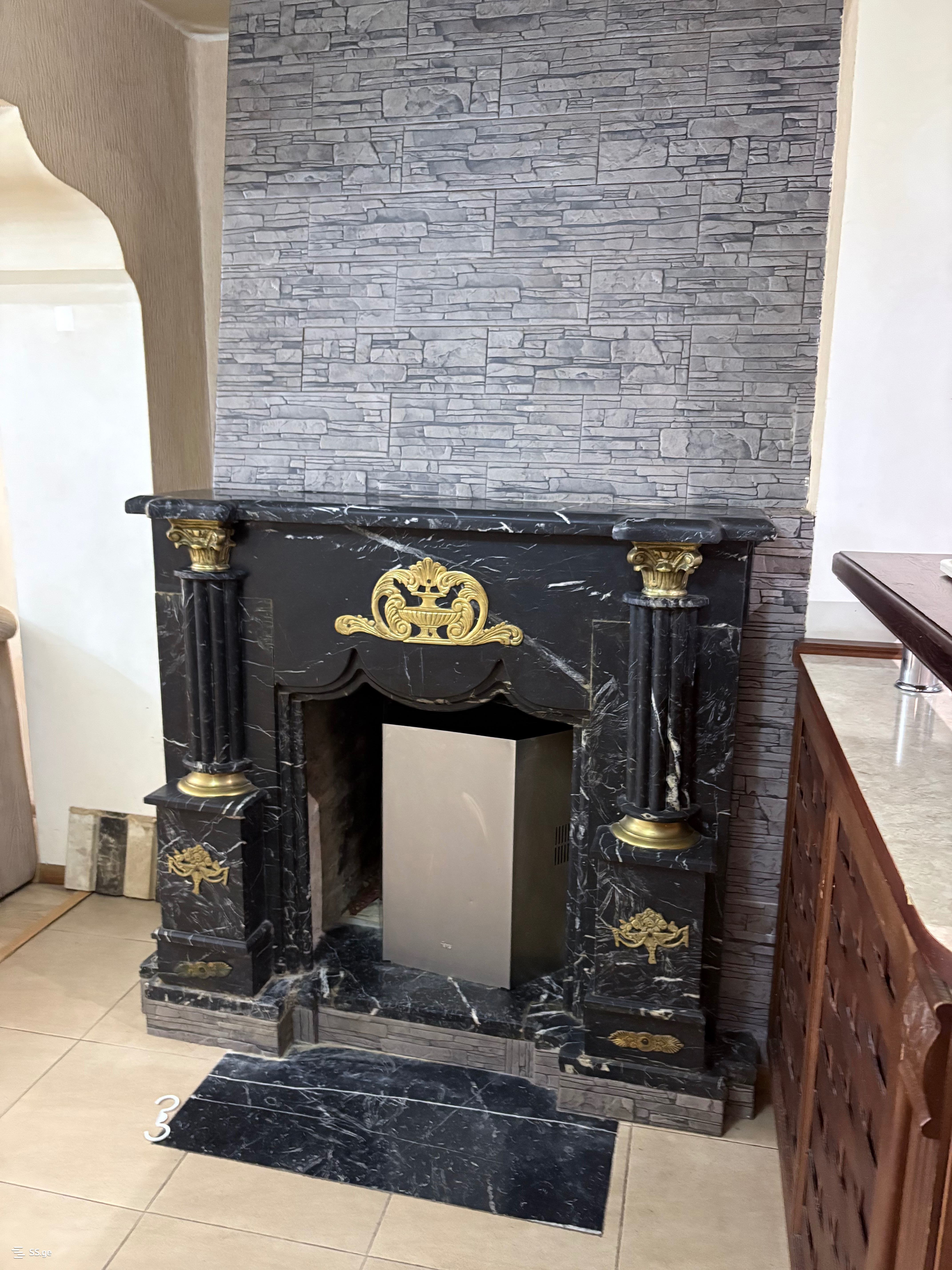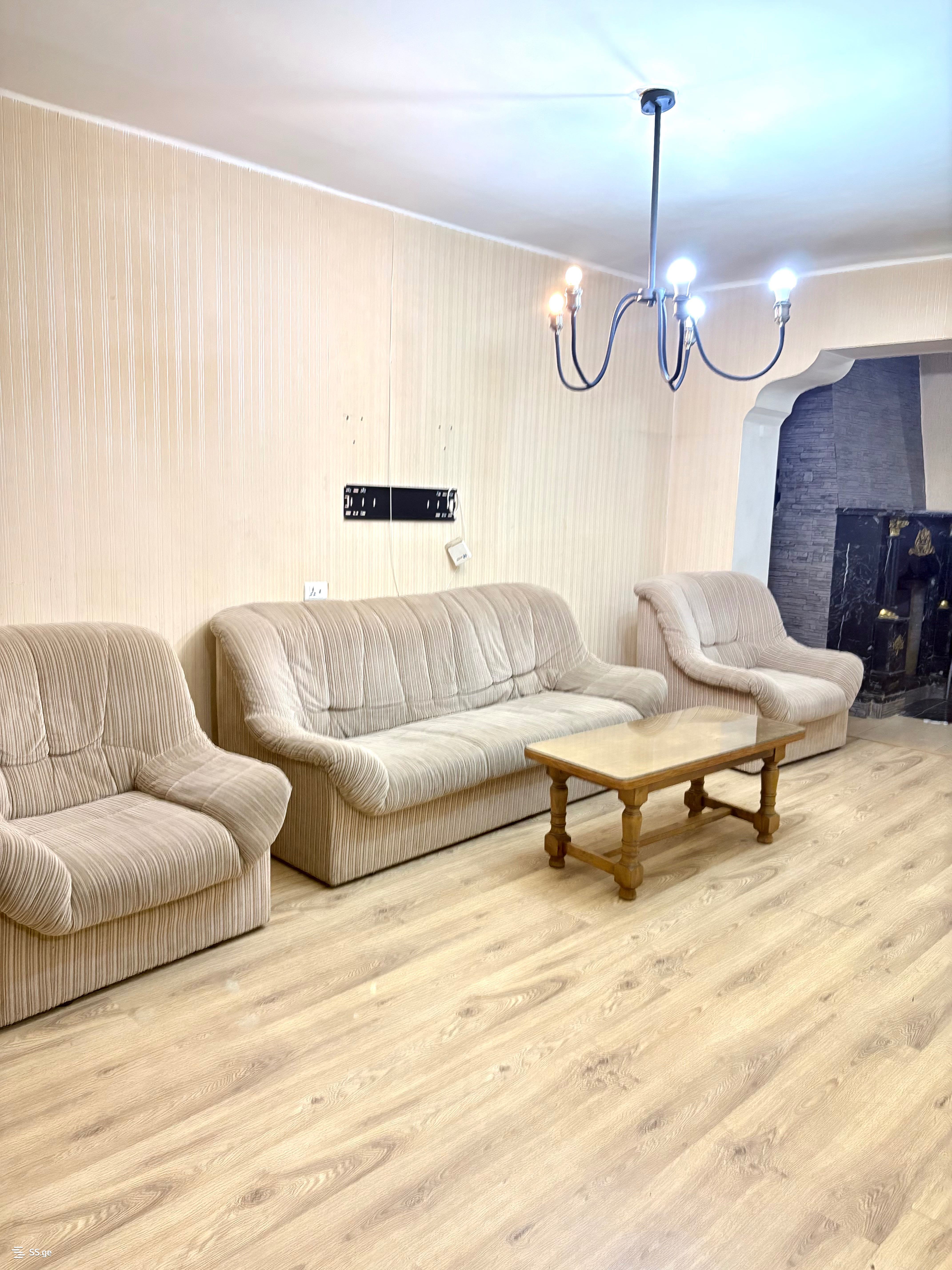 A studio-type apartment with furniture is for rent, with three bedrooms, a balcony, and a functioning fireplace.