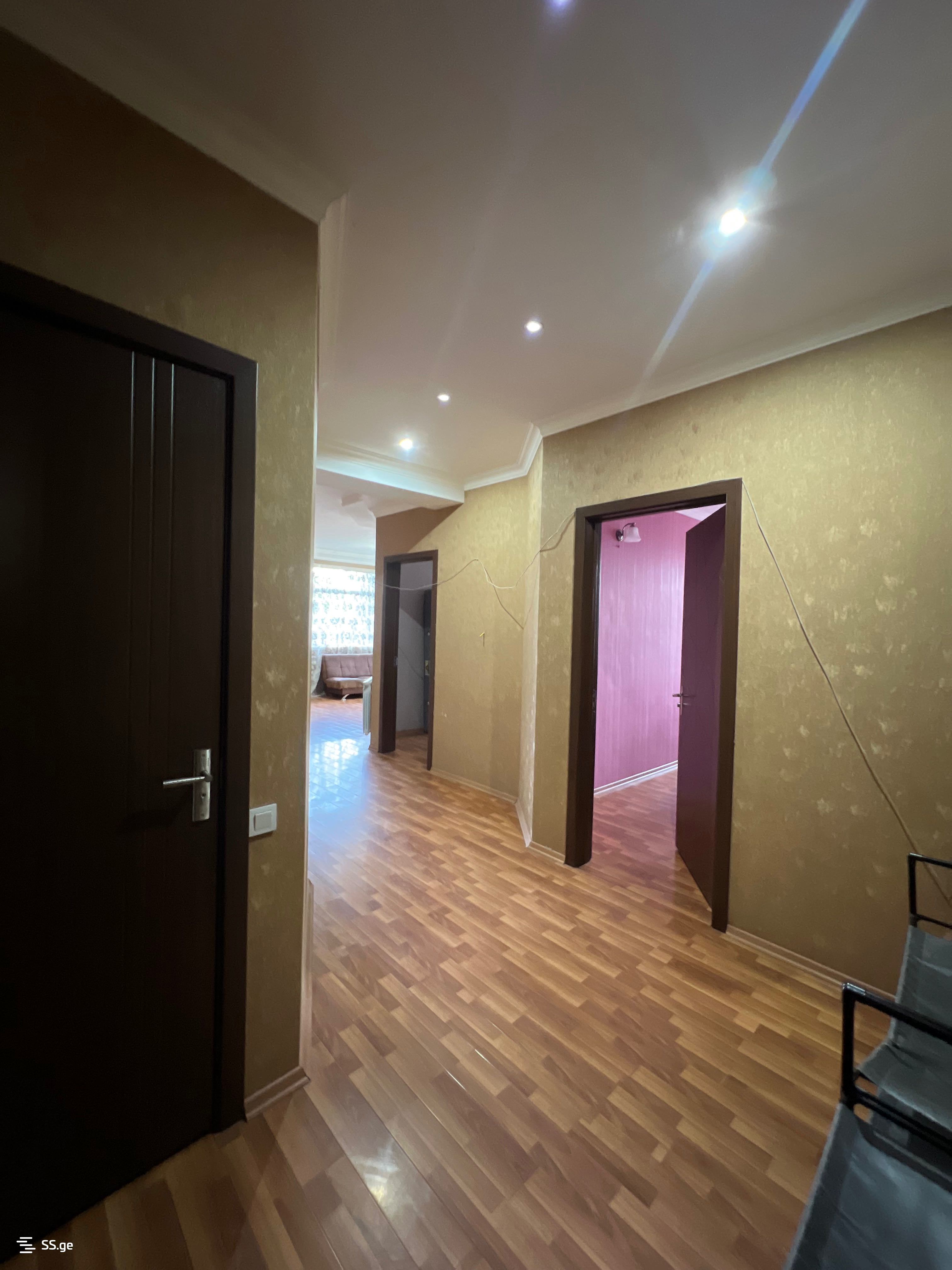 An apartment is for rent in the Digomi massif with 4 rooms. On Terevenko Street. Right off Lubliana Street. There are clinics, a university, schools, and a garden nearby. Cozy and green yard. Has a parking space. 3 bright bedrooms, a large living room, and a separate kitchen. It has a balcony around. 2 bathrooms.