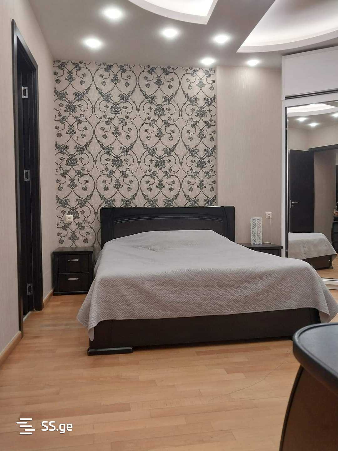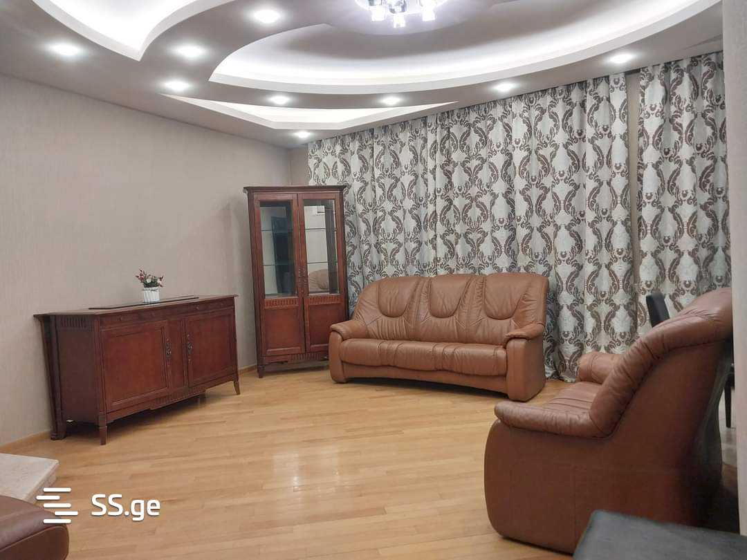 5-room, 3-bedroom apartment for rent in the center of Saburtalo, 5 minutes from Delisi metro station (on foot), closed yard, shared parking (with hose), closed coded entrance (intercom), elevator, heating (floor, walls and radiators), air conditioning, hot water, 3 Bedroom, living room, dining room, dressing room, 2 bathrooms and 2 balconies. Bathrooms are equipped with metal tiles, floors are natural wooden parquet and marble, fireplace is equipped with granite, kitchen walls, surface and table are marble, internal doors are MDF, external doors and windows are metal-plastic with double glass package, balconies are covered with ceramic granite, furniture, appliances and curtained rooms,