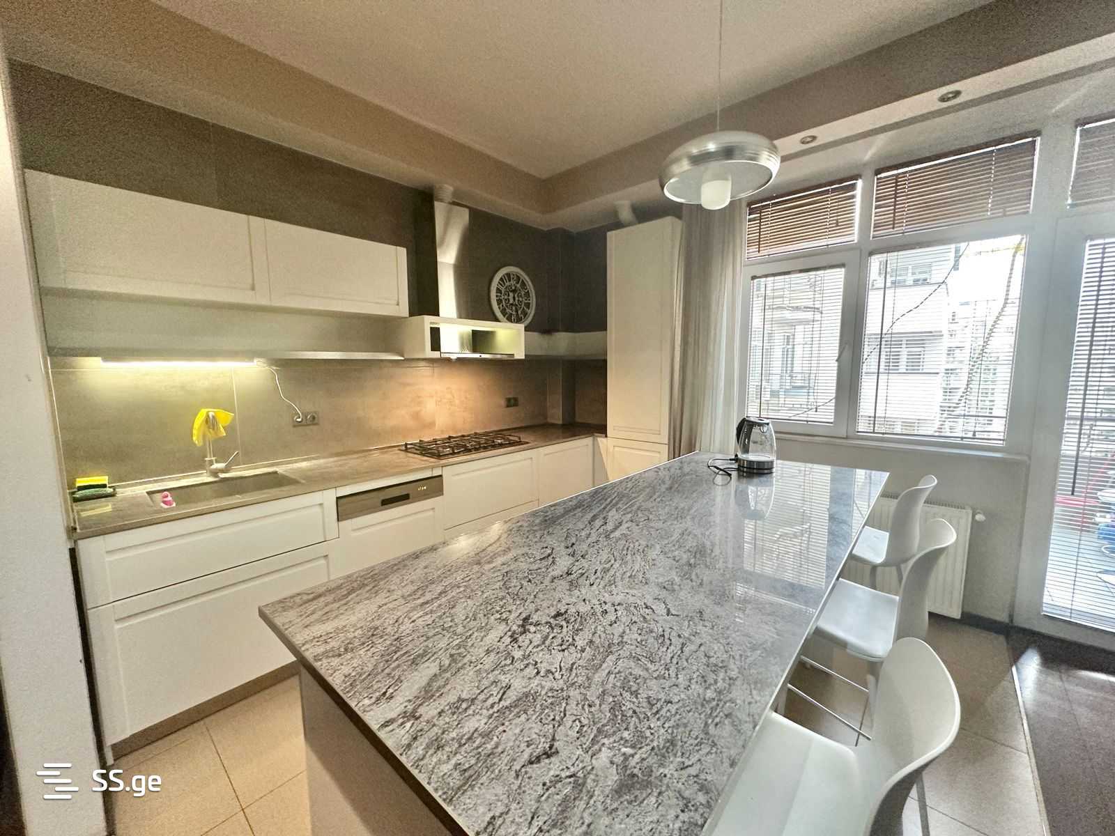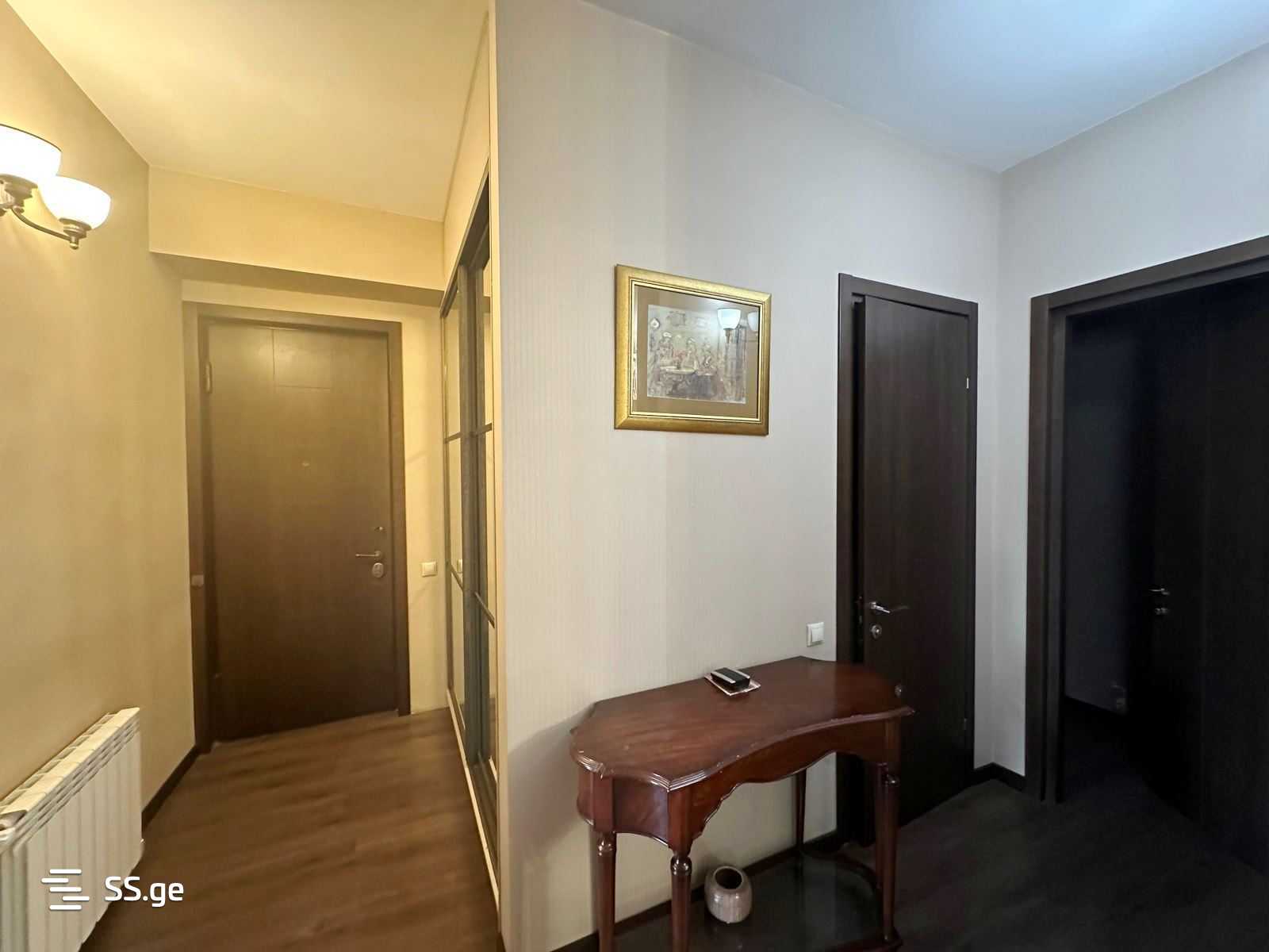 4-room apartment for rent in Vake, on Abuladze street, in a newly built building, 135 sq.m., 9(14) floors, 3 bedrooms and 3 bathrooms, master bedroom, 2 bathrooms, balconies, furniture and appliances, security, air conditioner, dishwasher ID 96618