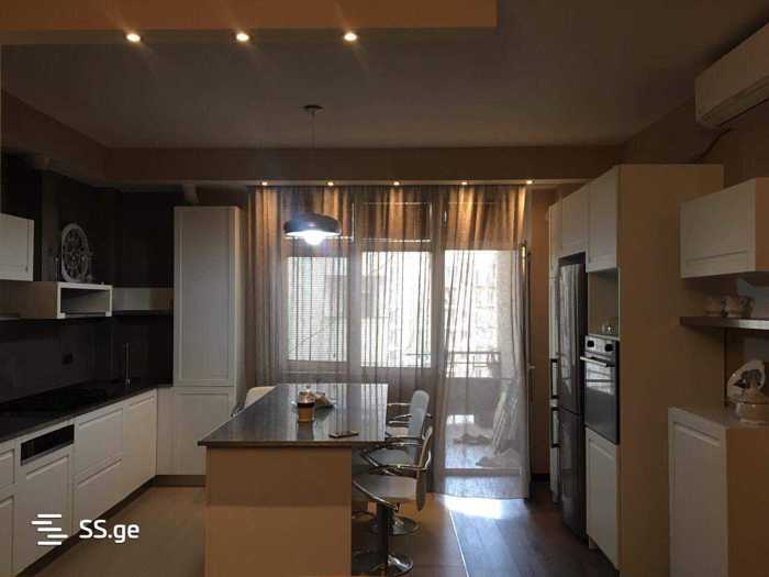 For rent: a 4-room renovated apartment in a newly built building on Levan Mikheladze Street (parallel street to Chavchavadze) with 3 bedrooms and 3 bathrooms. The apartment is furnished with all necessary furniture and appliances, located behind Vake Carrefour, near Vake Park. Includes a parking space.