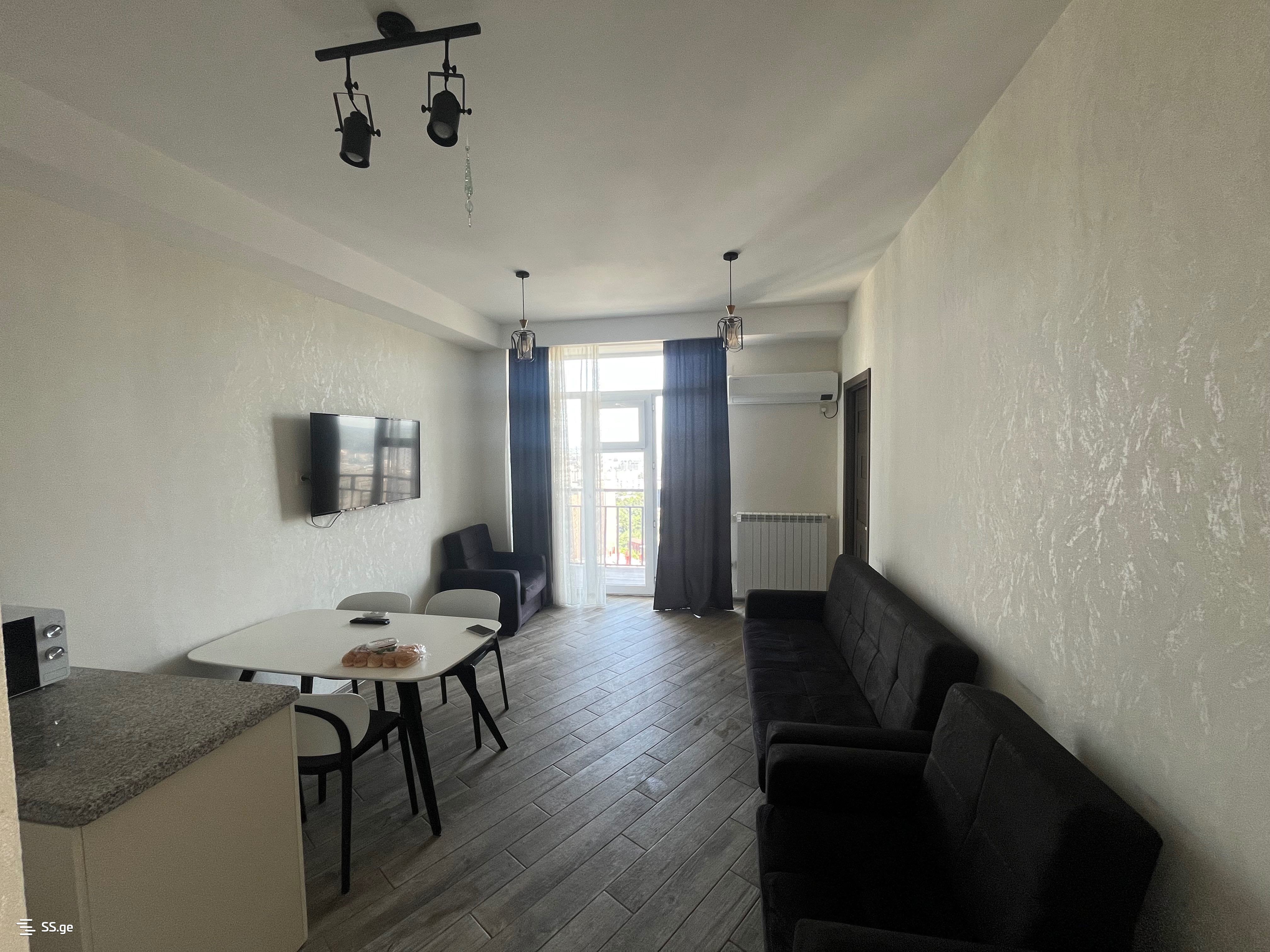 For rent urgently, a newly renovated three-bedroom apartment near Lukoil in Vazisubani, with three balconies and all necessary furniture, two steps away from Nikora, two steps from pharmacies, and banks.