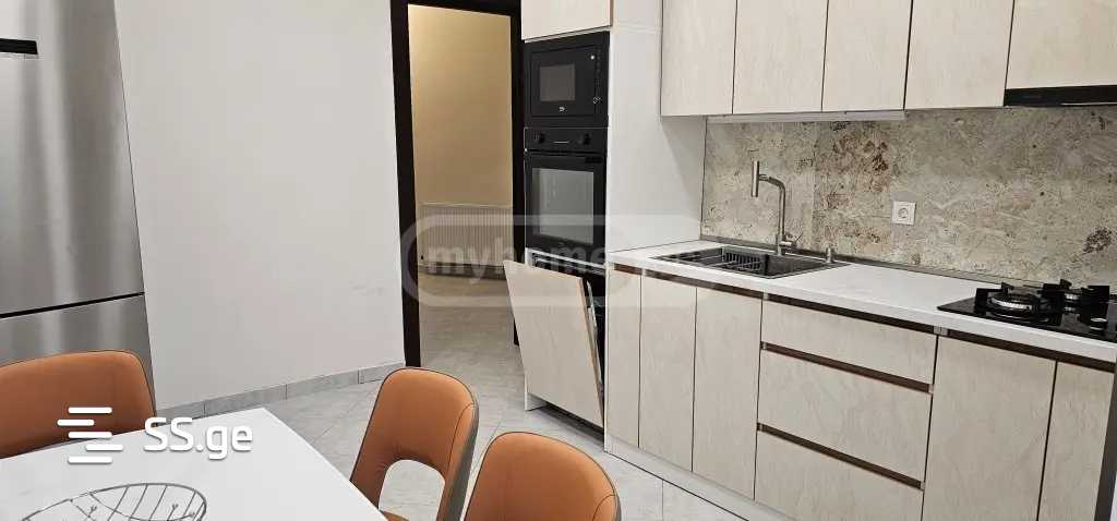 For rent in Vera, on Gudauri street, a 4-room bright apartment behind Hotel Georgia, next to the Chinese embassy. In a newly built building, on the fourth floor 4(8), 100m2, newly renovated, with an isolated kitchen, private underground parking, with all necessary appliances and furniture, air conditioners, washing machine, dishwasher, 2 bedrooms with new mattresses, 2 wet rooms, central heating. 593 54 54 56