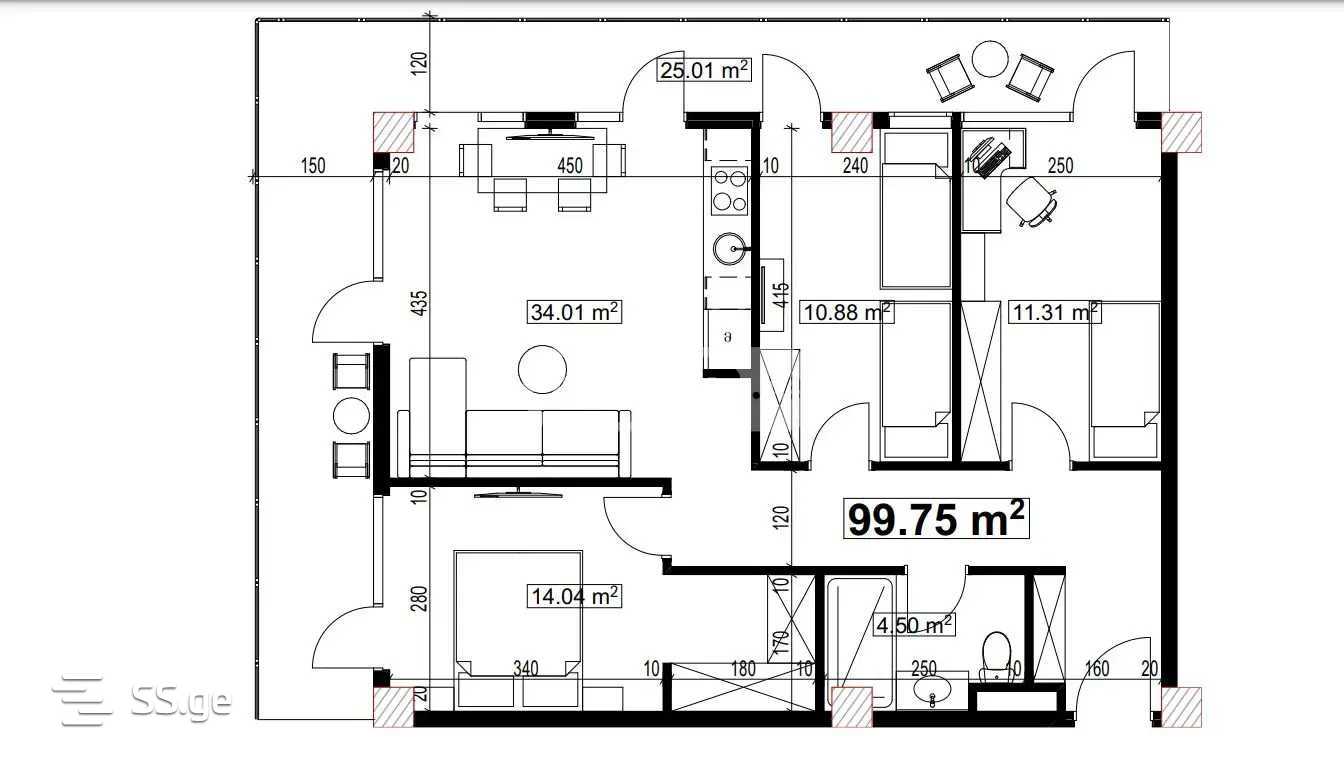For sale in Batumi on Rurua Street, an apartment in a new complex in white frame condition with a large veranda. The project is scheduled to be completed in 2026, and it is possible to have an internal interest-free installment with a down payment.