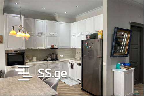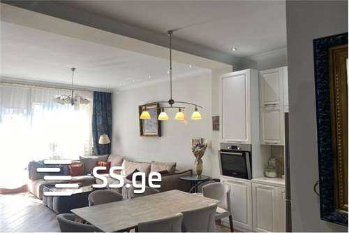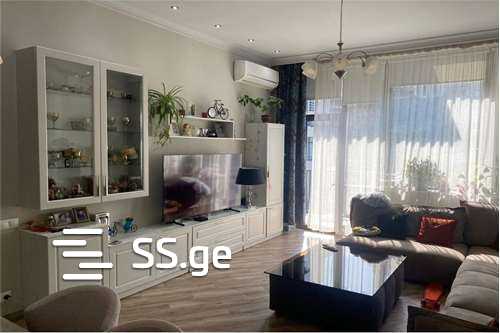 The property located in MetraPark, on Sakandelidze Street in Bagebi, has an area of 130 m². This duplex-style apartment is situated on the 4th and 5th floors of a newly constructed building. The apartment is fully renovated, featuring a ceiling height of 3.5 meters. The layout includes two levels: on the first level, there is a studio-style living room, one bedroom, and one bathroom; on the second level, there are two bedrooms, a walk-in closet, one bathroom, and a terrace with panoramic city views.