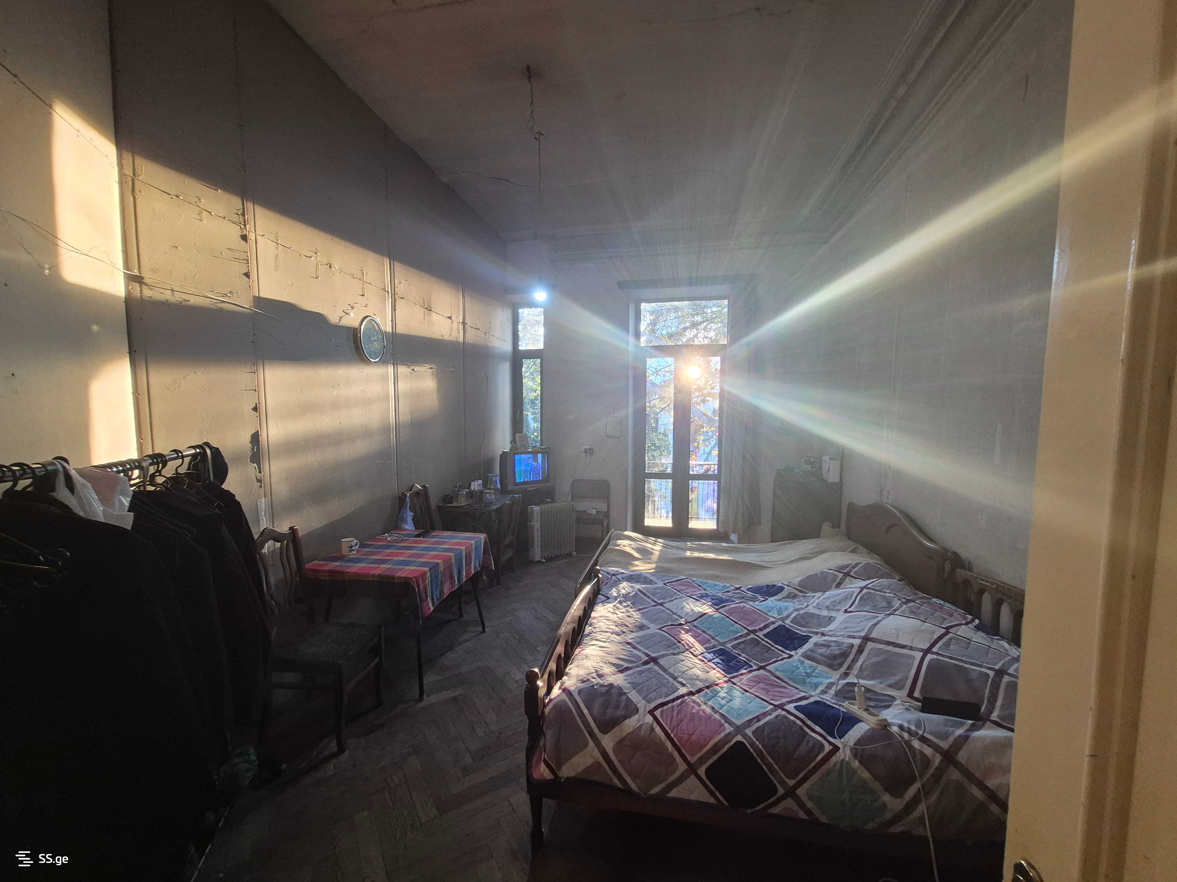 For sale urgently!!! Only real buyers should call!!! In the city's central location, in front of the former German embassy, opposite the Tumanishvili Theater, in a Stalinist project, solid and healthy building, high-ceiling apartment, the ceiling height is 4.5 meters, the apartment has an old renovation, it is a sunny and bright apartment. The balcony overlooks Agmashenebeli Avenue. This apartment is on the 3rd and 4th floors, the 3rd floor is 47 sq.m, while the 4th floor is an attic apartment, in a black frame condition!!! In total 94 sq.m... The price of the apartment is 107,000 dollars!!!