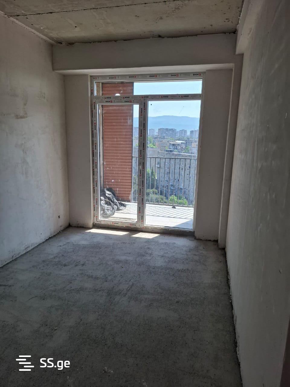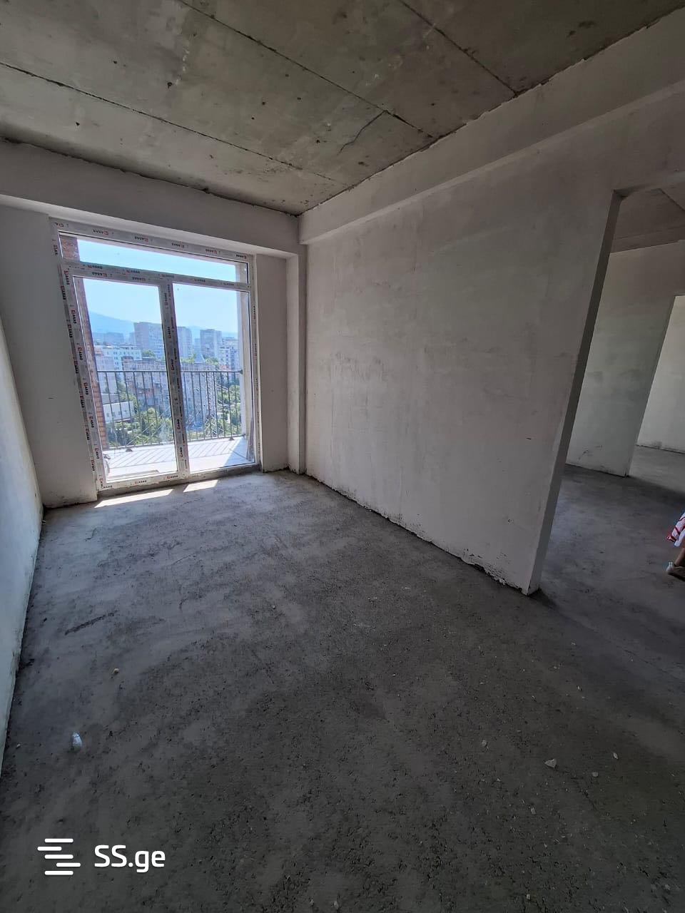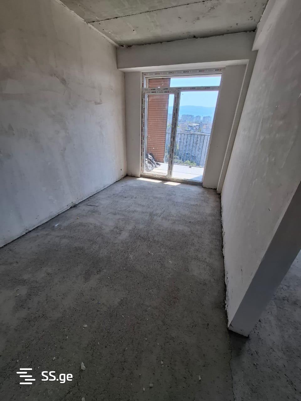 For sale in Gldani on Kertch Street, a white frame in a new building, 78 sq. m. with three bedrooms on the 13th floor. No additional buildings will be constructed in front of the building.