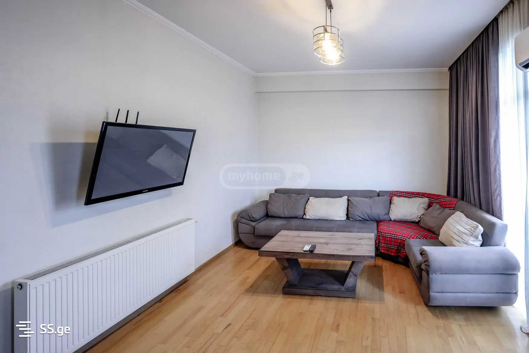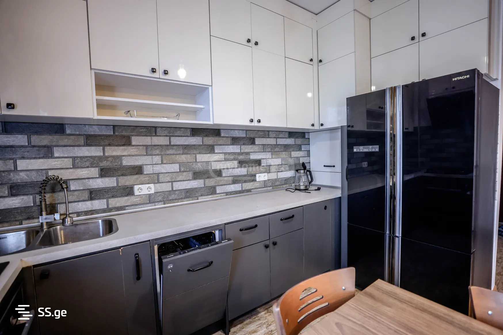 A four-room apartment is for sale near the Isani metro station, in a newly built building, with new repairs and furniture.