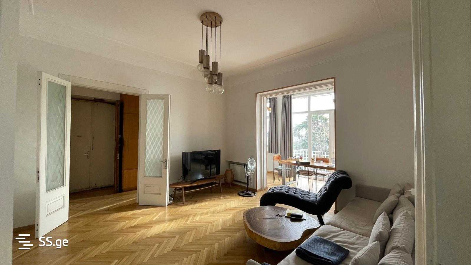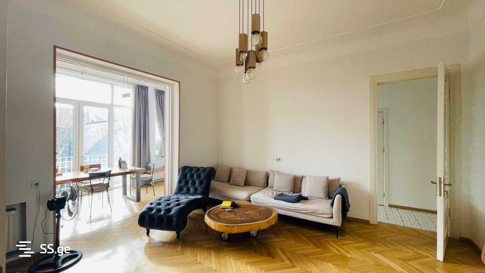 A spacious penthouse apartment is for sale, located next to the Biltmore Hotel on Rustaveli St. The apartment size is 94.7 m2 of renovated apartment + 116 m2 of undeveloped attic space.