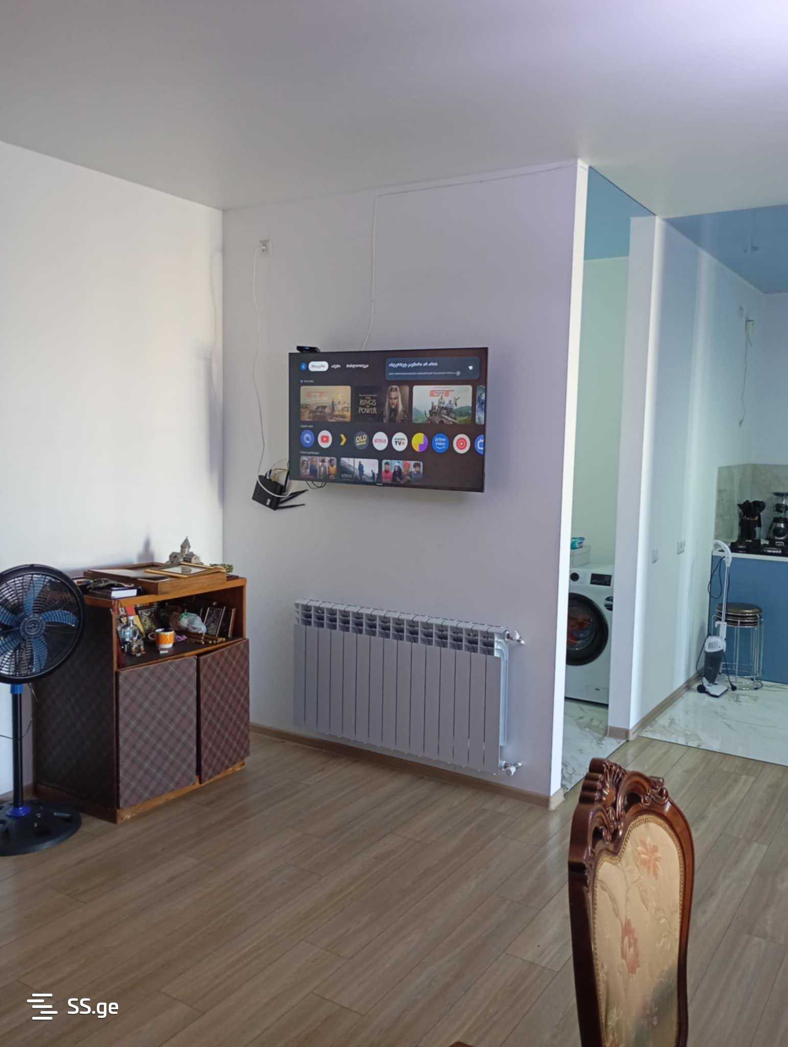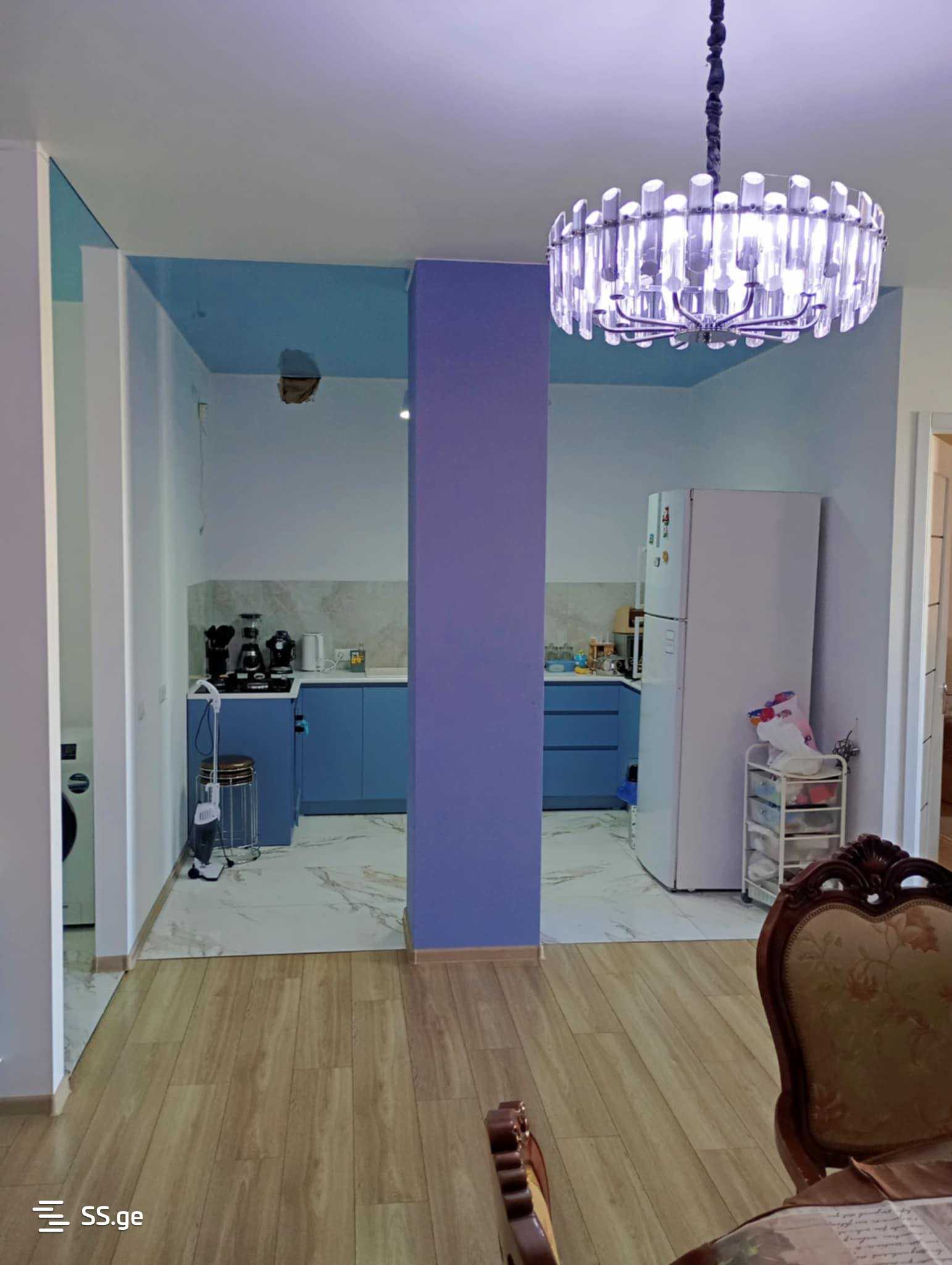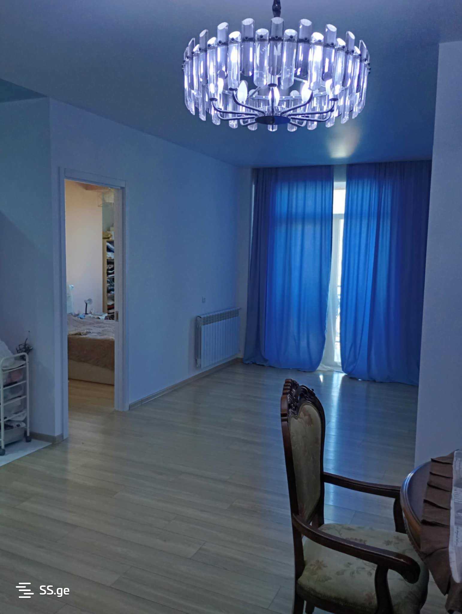 For sale: a 94 square meter apartment in a newly built apartment building on Shartava Street in new Rustavi, next to the main road. It has 2 separate bedrooms, furnished and equipped with appliances, with central heating. On the 5th floor. For 98,000 dollars.