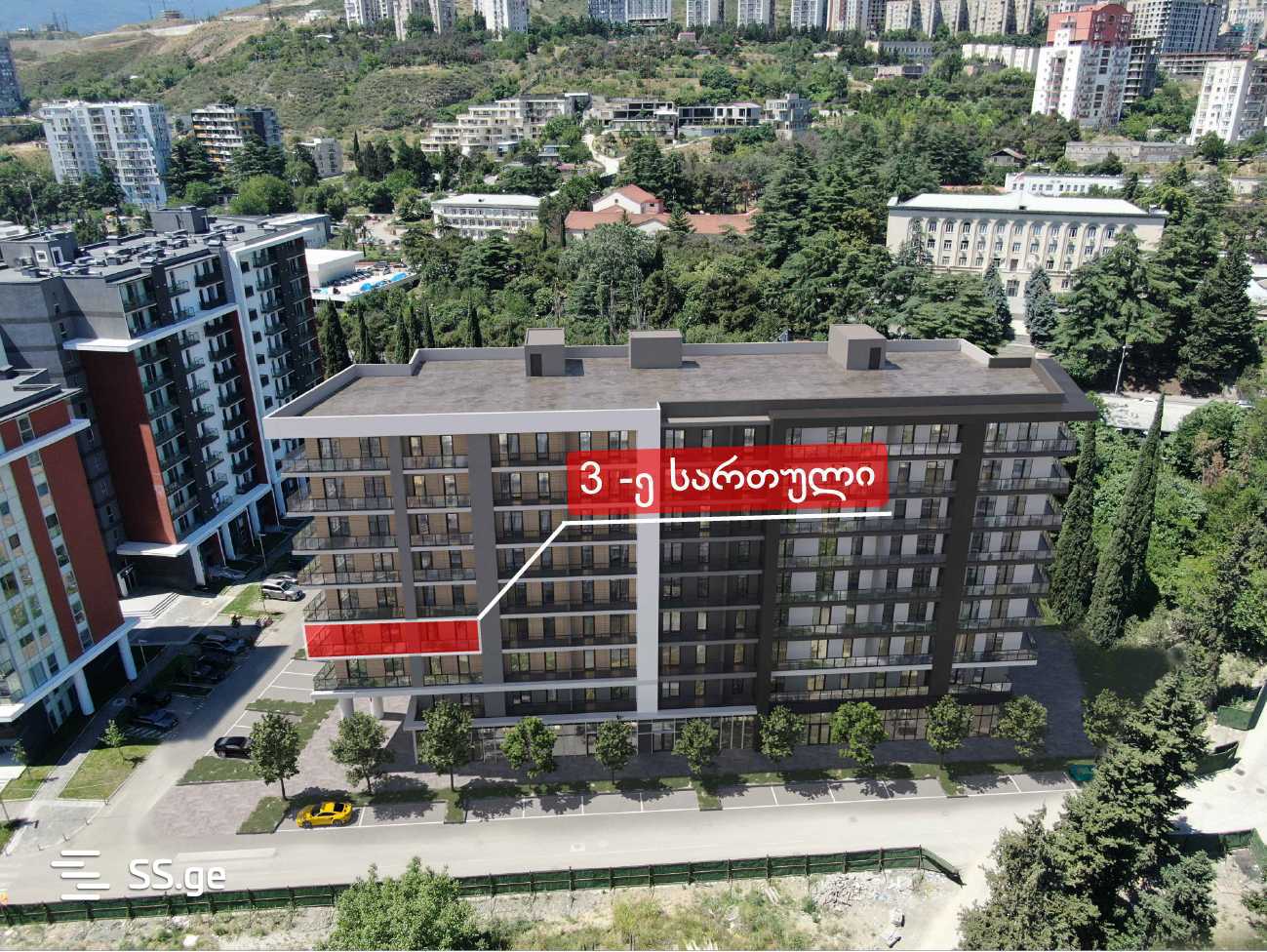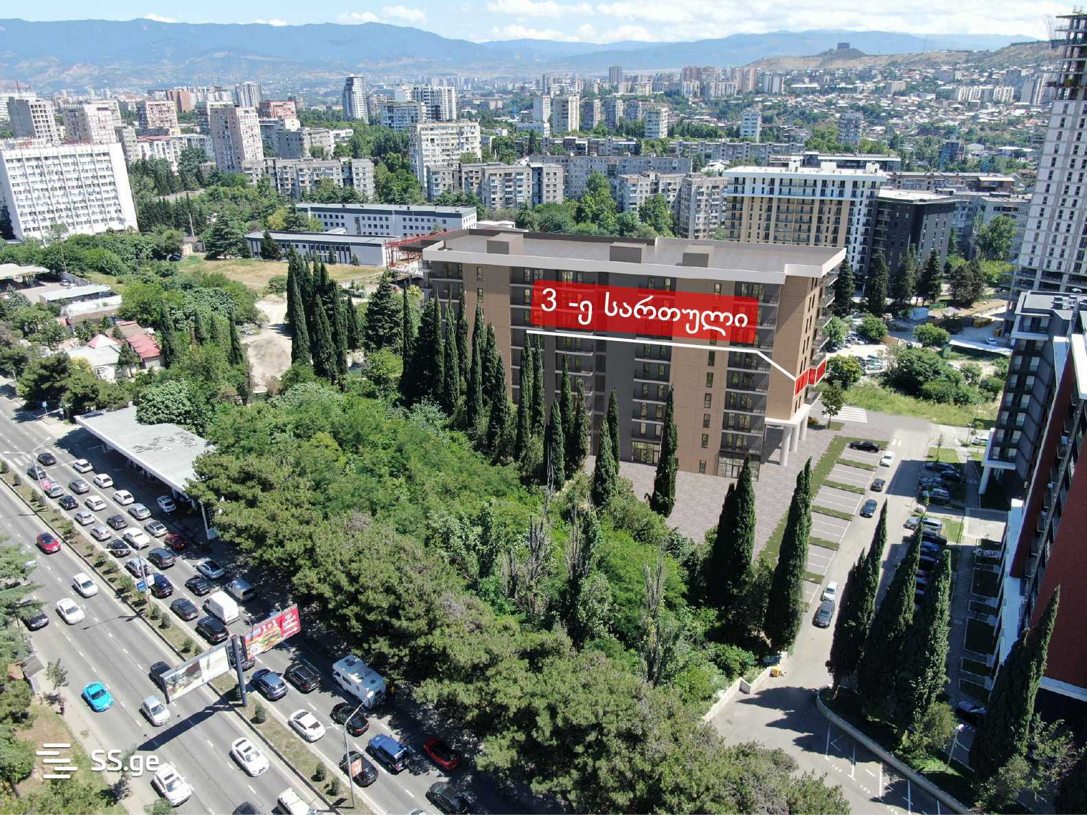 A 3-bedroom apartment in a new development is for sale, with 140.87 sq.m. of space, two bathrooms, a living room, and a separate kitchen, a large balcony that almost surrounds the entire apartment, on the 3rd floor, in the central part of Tbilisi, between Marshal Gelovani Avenue and Bakradze Street, in the new m² residential area, which is located 900 meters from the Vepkhistkaosani monument. Construction of the project will be completed in 2026. The apartment will be handed over with white frame condition. (Project renovation and partition relocation is possible, 3 floors have already been built)