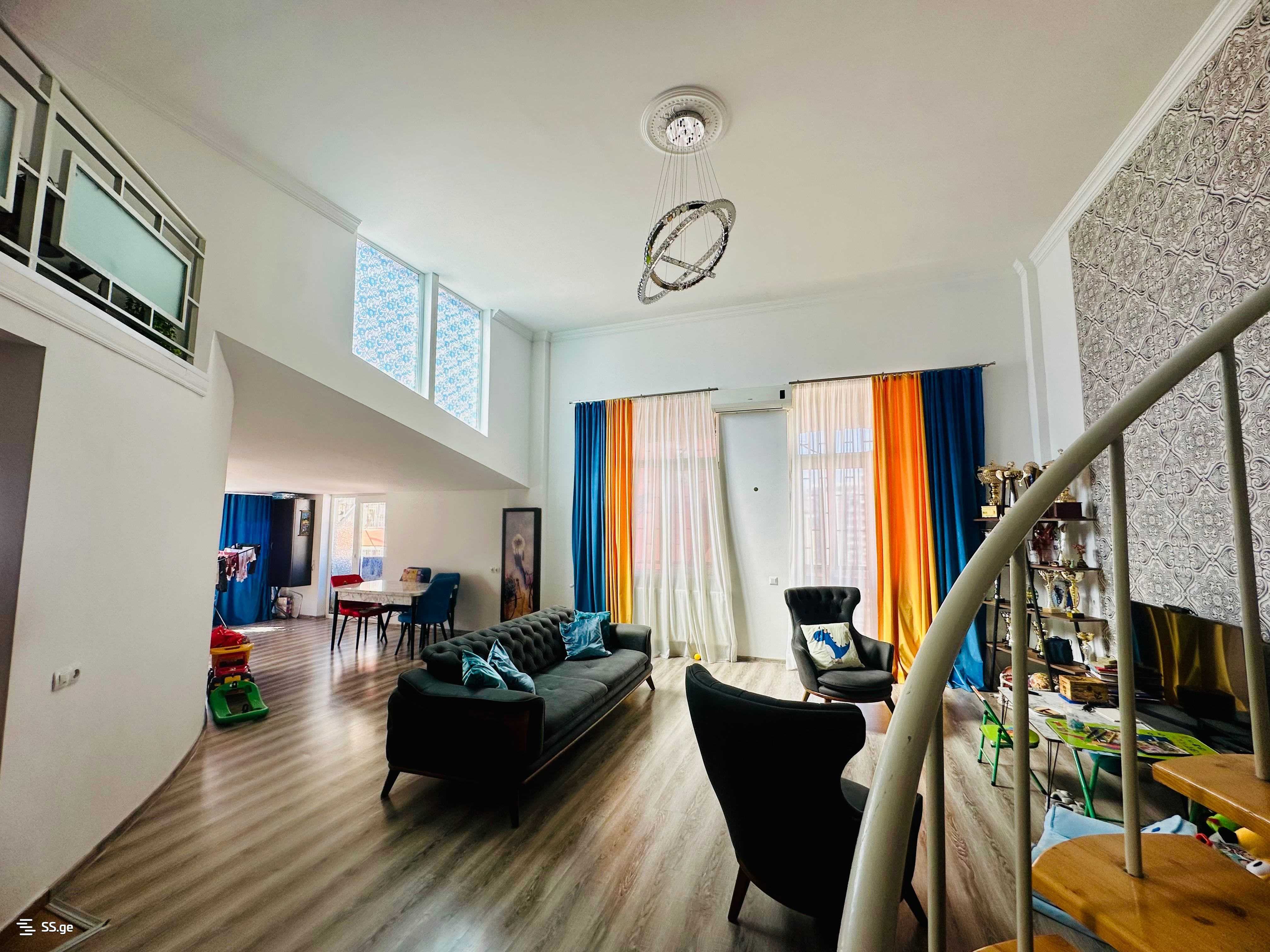 For sale is a non-standard attic type apartment with a mezzanine. Close to King David and the park. The plumbing is newly replaced (Grohe). Part of the furniture remains in the apartment.