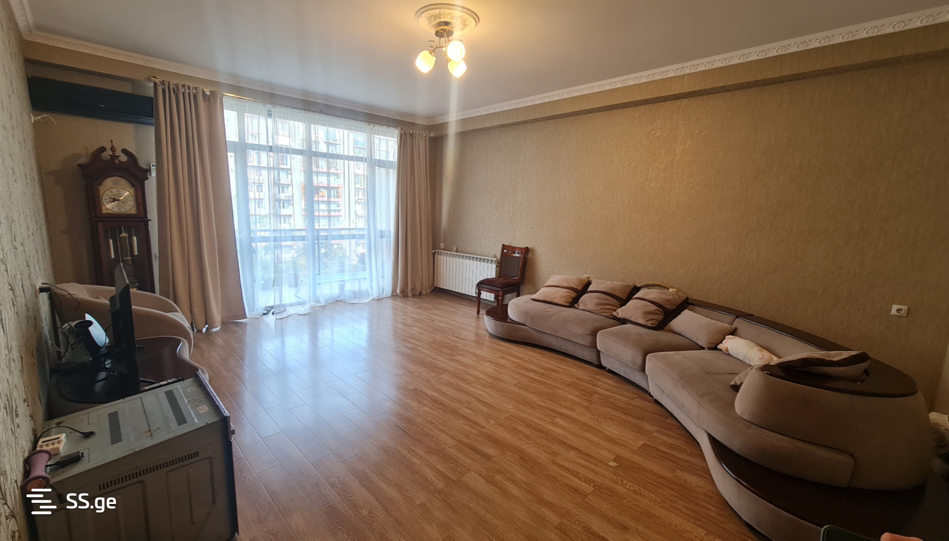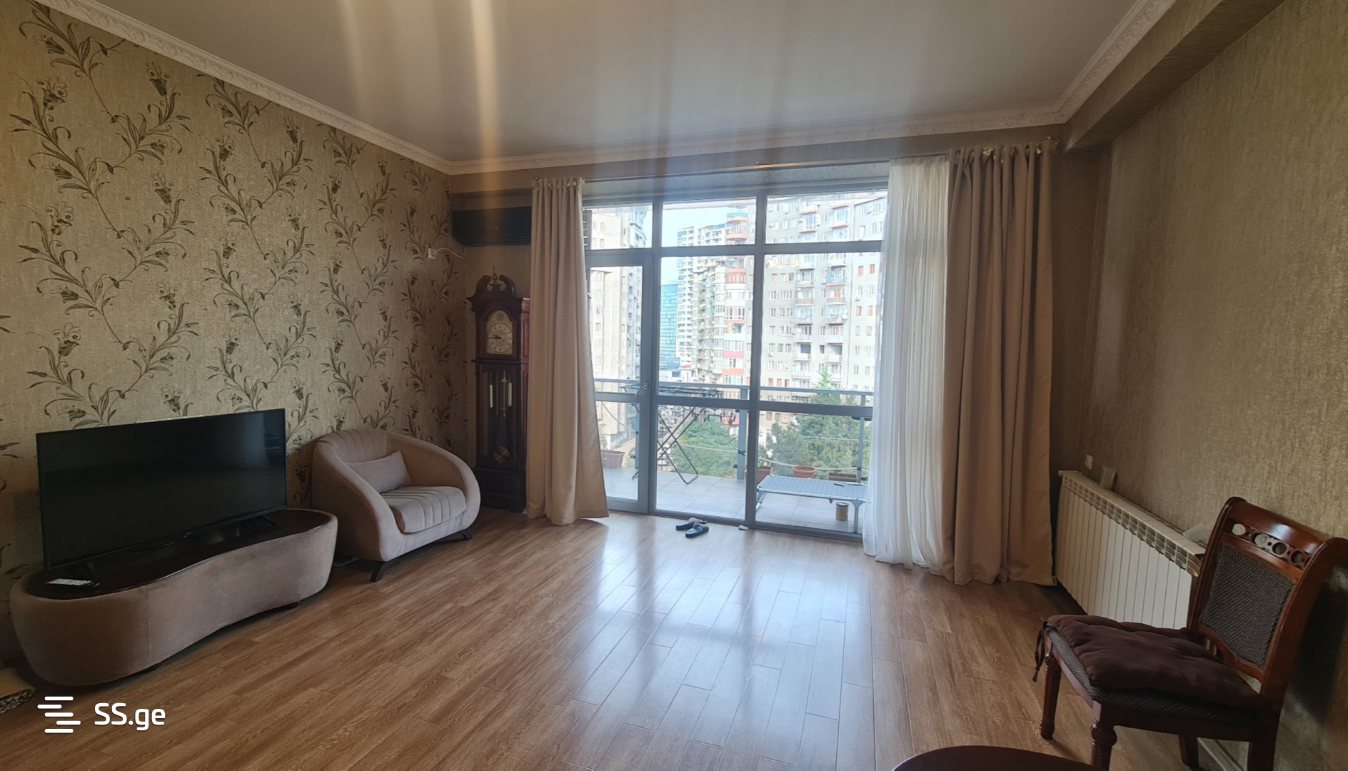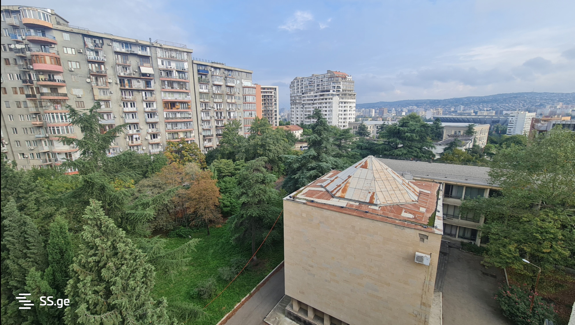 For sale 138 sq.m. bright, renovated, spacious apartment in the center of Saburtalo, near the Sports Palace. It has an isolated kitchen, a large living room, three bedrooms, one bathroom and two balconies. All rooms have large panoramic windows and one of the balconies has a beautiful view on Mtatsminda.