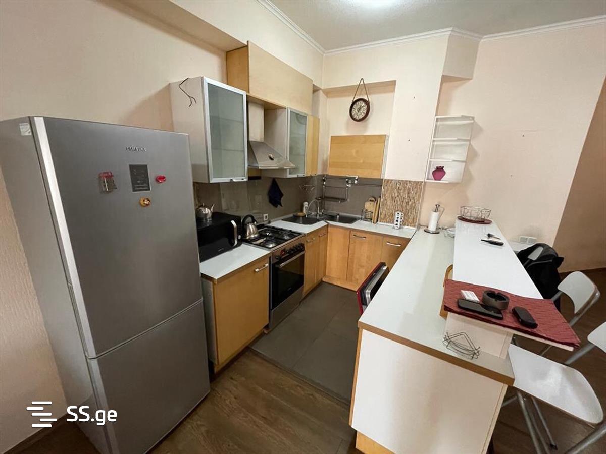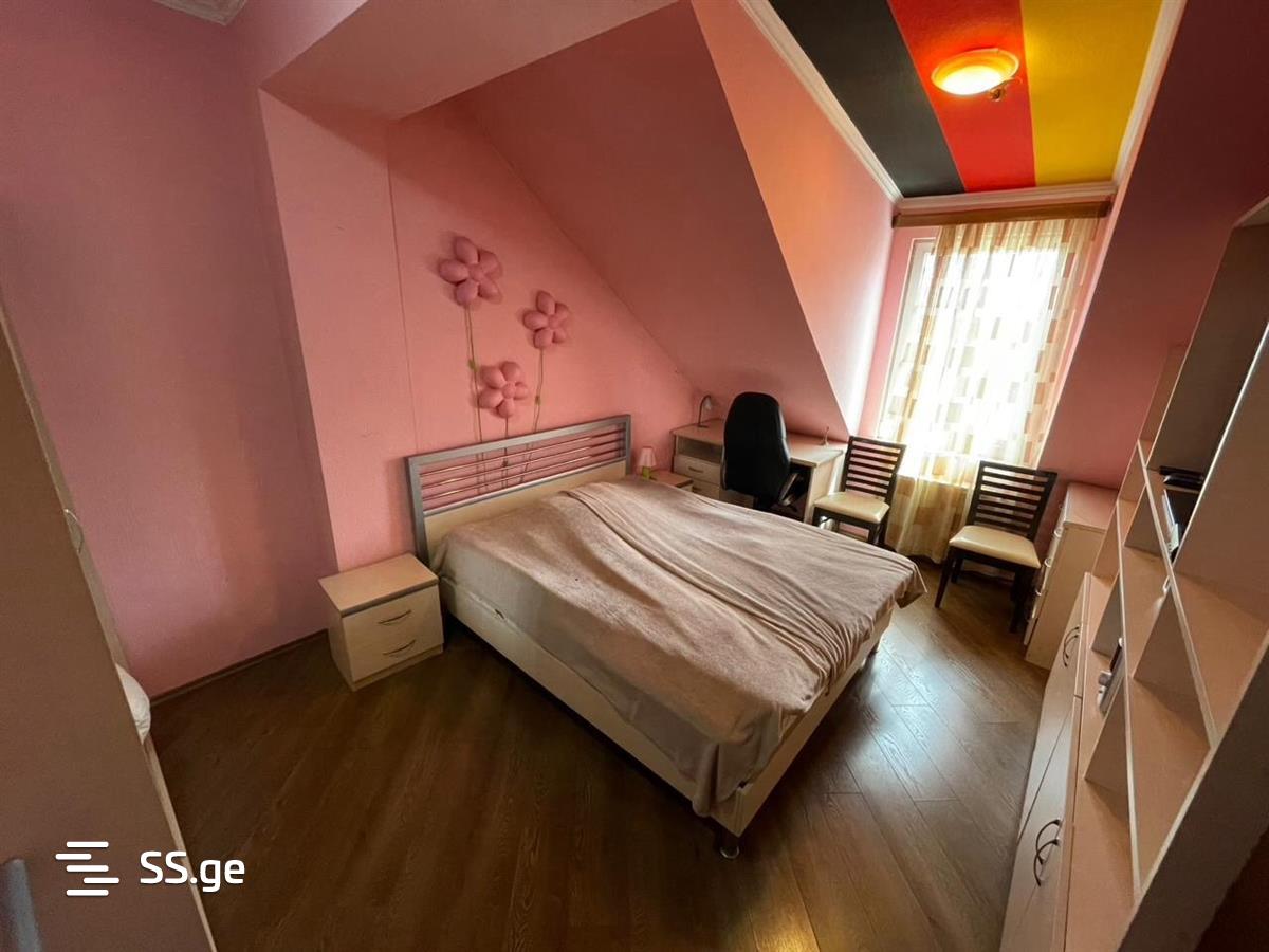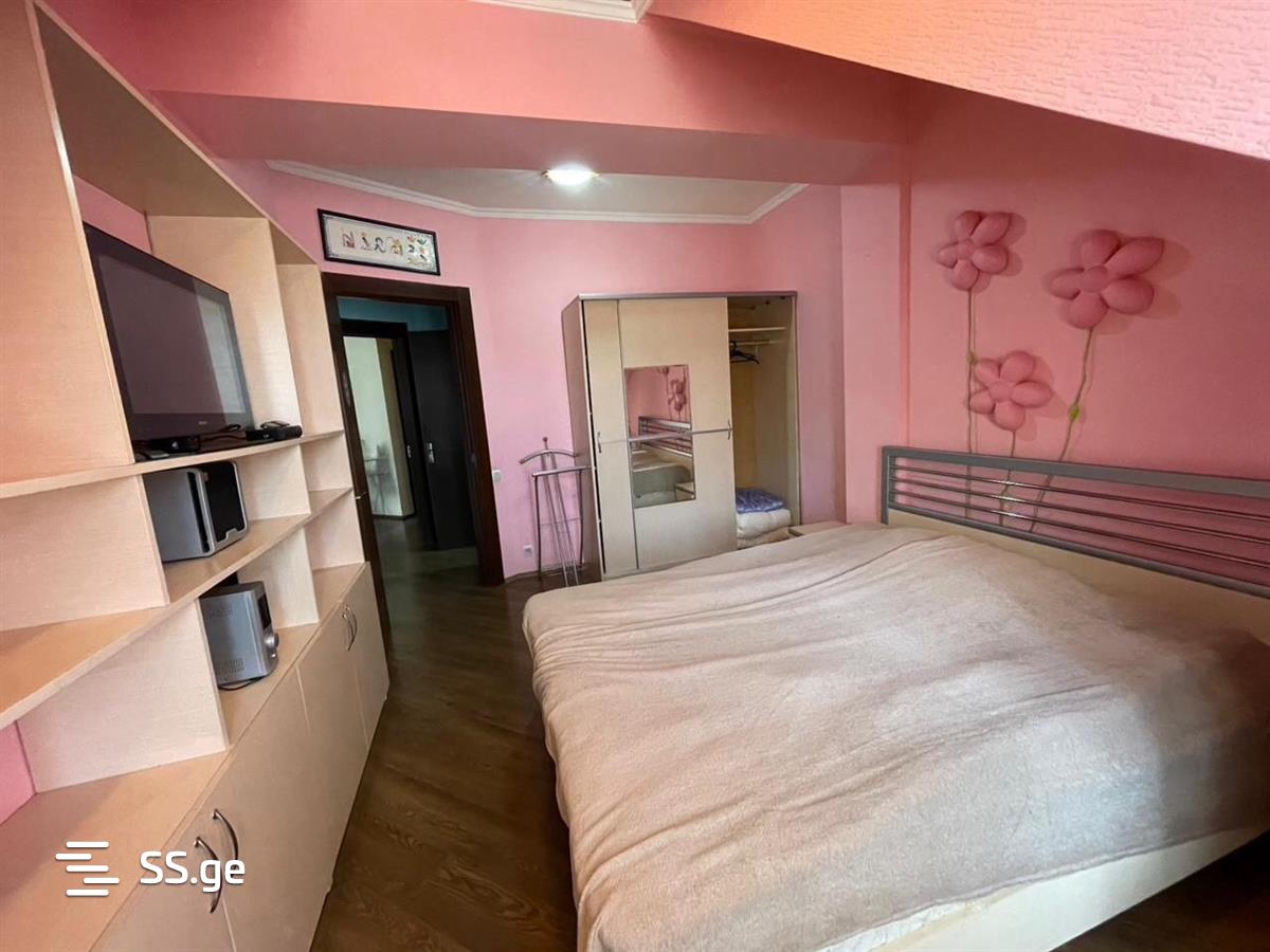4-room apartment for sale in Saburtalo, on Berbuki street, there is a large living room of studio type, 3 bedrooms, 2 bathrooms, wardrobe room, auxiliary storage rooms.