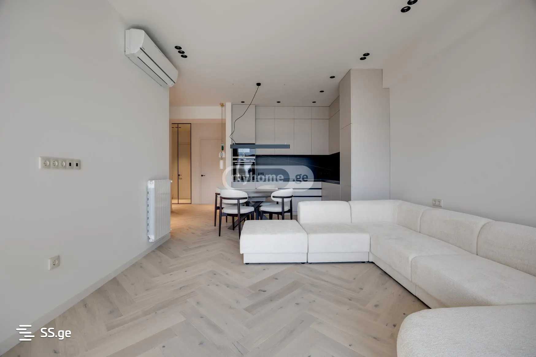 For sale is a newly renovated, unoccupied apartment in the new premium class residential complex of Domus (Domus Ipodromi 3) on Tamarashvili Street. The living apartment is located on the 19th floor of a 24-story building. The apartment has views to the north and south. It includes a living room, three bedrooms, an entrance, two bathrooms, and two balconies. The total area of the apartment is 122 square meters. The apartment has been renovated to the highest standards, finished with German oak parquet, cabinets made of high-quality Spanish and Italian materials, furniture imported from France and Spain, and high-quality built-in appliances (2024 model) imported from Germany. The building is equipped with elevators from the Finnish company "Kone". The apartment features aluminum doors and windows from the Belgian company "Reynaers"; low-emissivity glass from the French company "Saint-Gobain", and balcony rolling shutters from the Belgian company "Renson". The complex has two squares with a total area of 11,000 square meters, the territory is landscaped and has security, an ecological environment, a combined basketball and mini-football field, a bicycle path, a wellness spa center - swimming pool and fitness gym (Prime Fit).