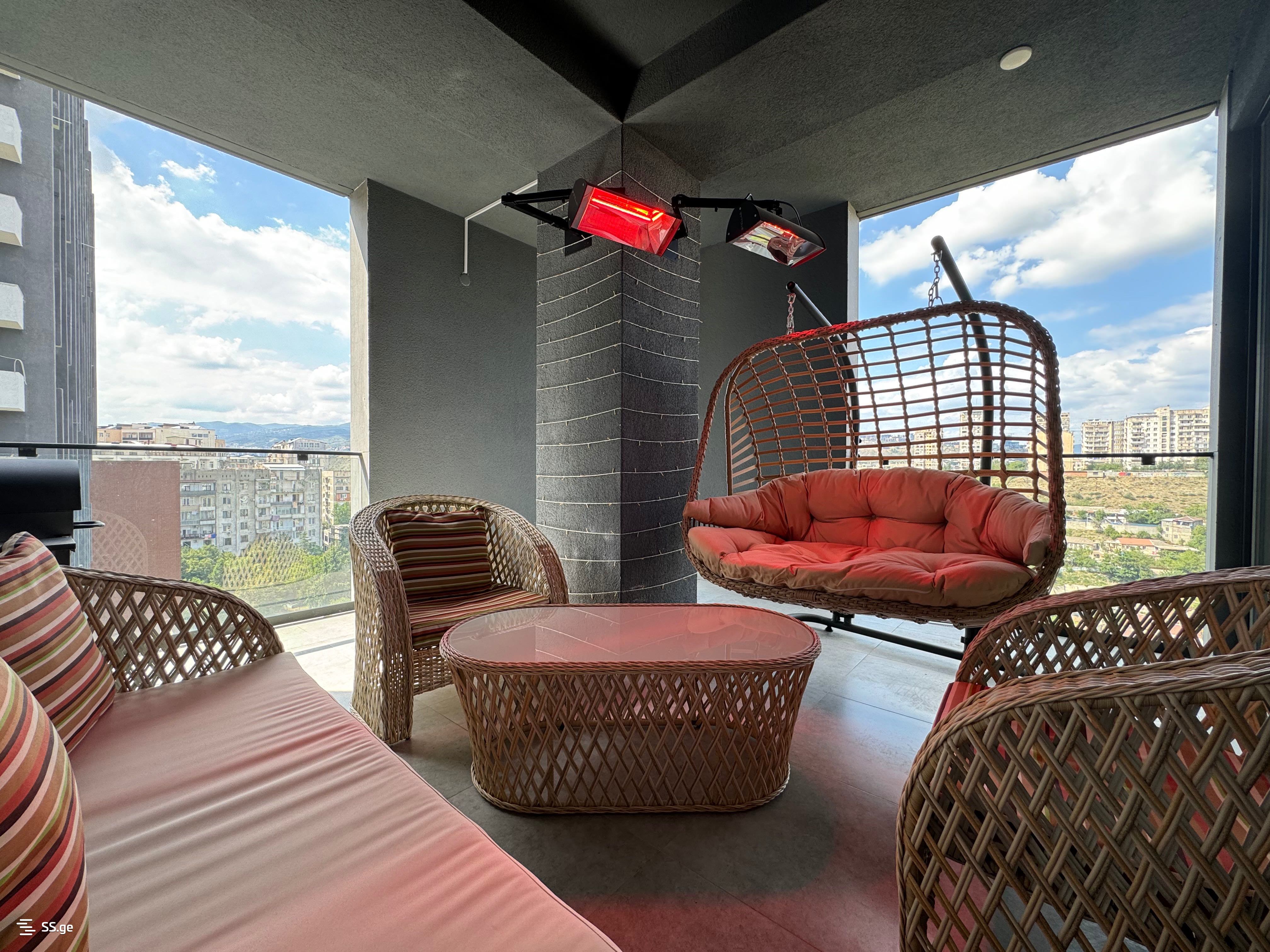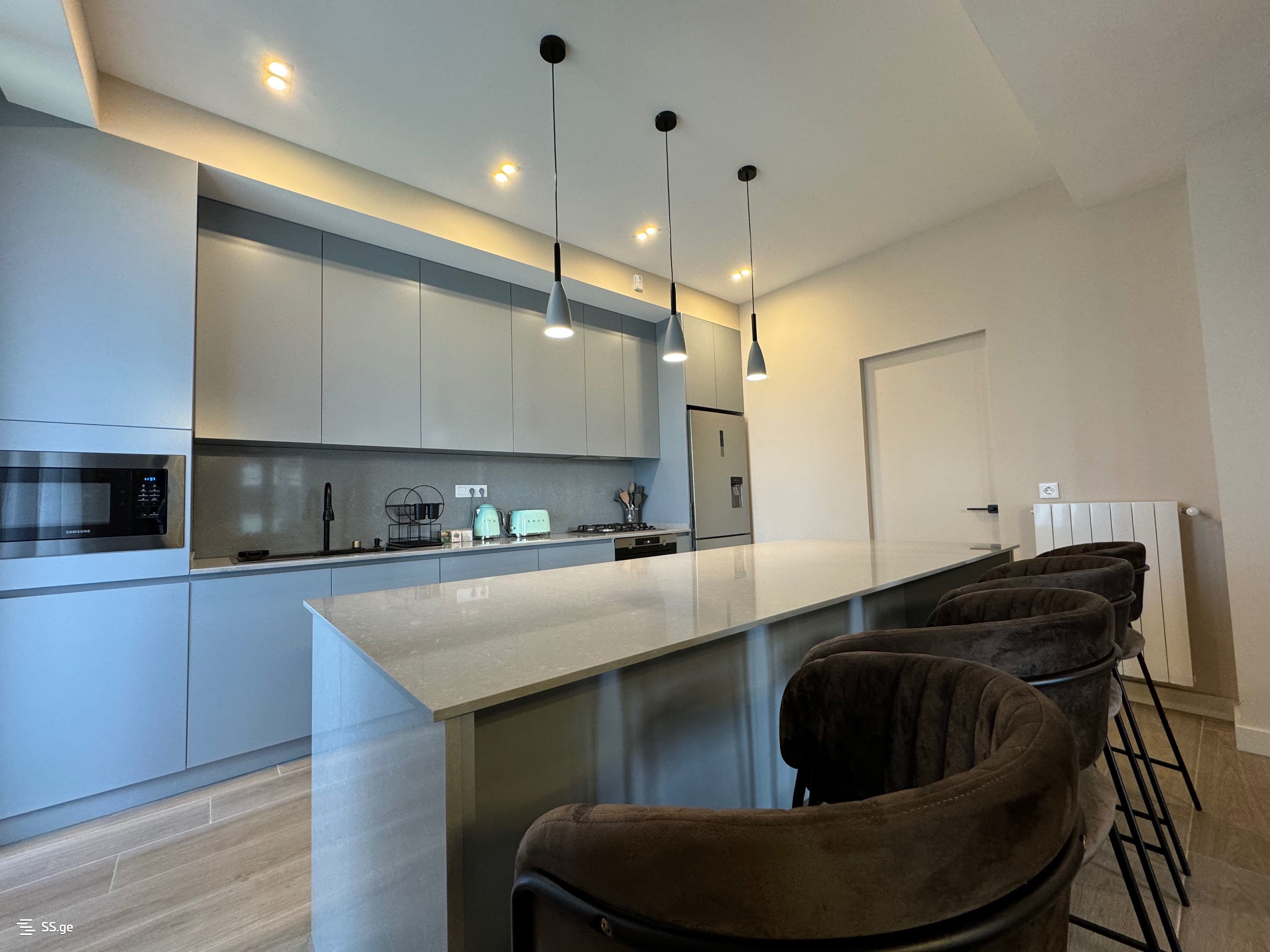 For sale! Newly renovated 4-room apartment on the 11th floor (penthouse) in the prestigious residential complex "Park Home Vake". The total area of the apartment is 195 m2; which includes 3 large bedrooms, (one of which is a master bedroom with a wardrobe and bathroom), a separate kitchen with a sliding glass partition, 1 large living room, 3 bathrooms, 2 large balconies, and a 35 m2 veranda equipped with outdoor heaters from the Stellar brand. The apartment comes with high-quality appliances and built-in furniture, and a Toshiba brand air conditioner is installed in the living room and bedroom; a Samsung refrigerator, a Samsung microwave, an Electrolux wash & dry washing machine, an Electrolux dishwasher, an Electrolux stove, and an AEG oven. For additional questions, please contact the phone number indicated in the ad via WhatsApp.